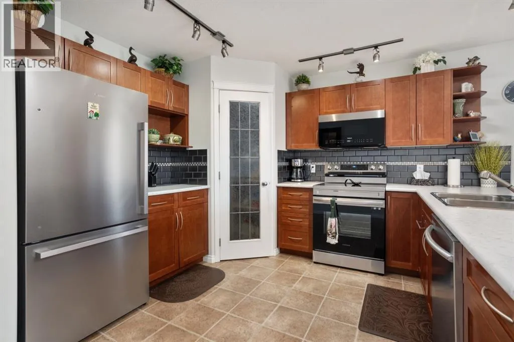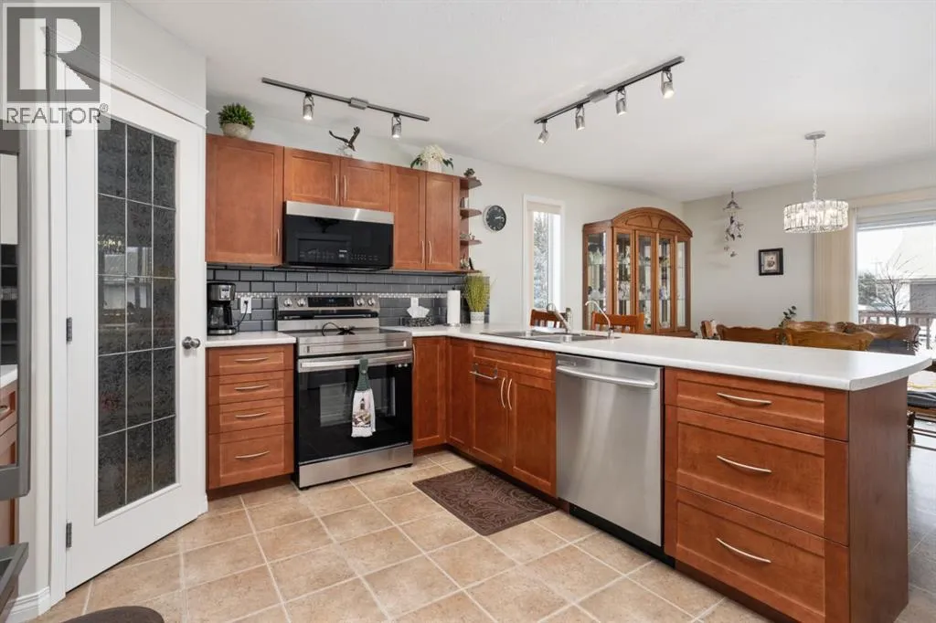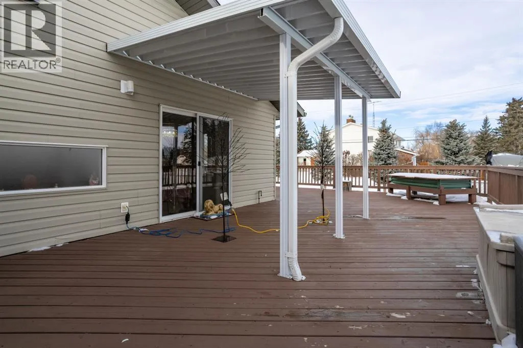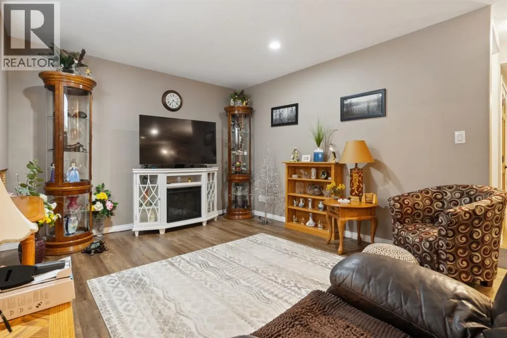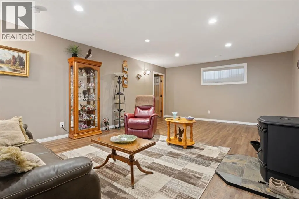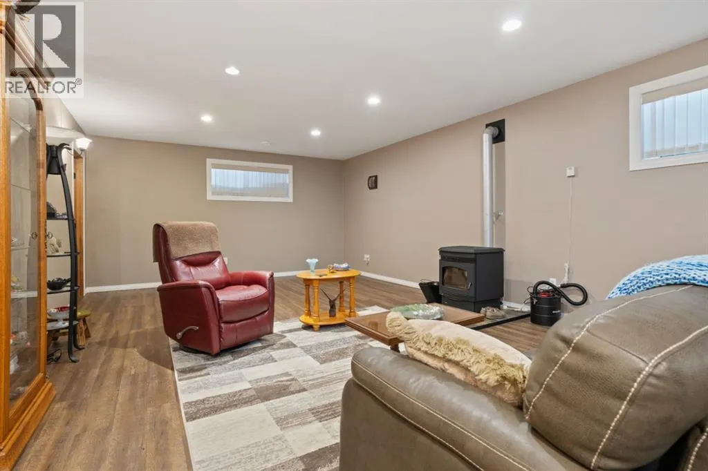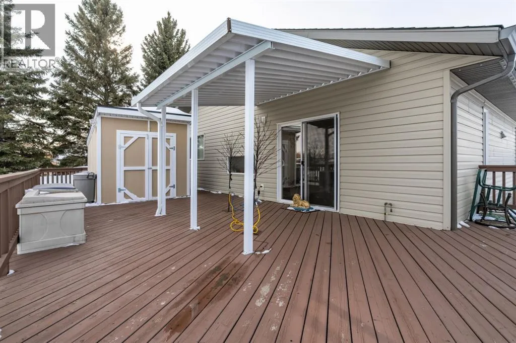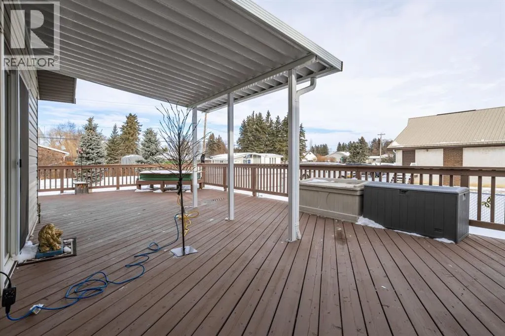Welcome to this exceptionally well cared for 1,360 sq ft bungalow built in 2007, ideally situated on a quiet street in Daysland on a large corner lot with an east facing backyard. This move-in ready home shows true pride of ownership with extensive 2024 updates including a new furnace, new water softener, new microwave and stove, new kitchen counter and sink, new blinds throughout, updated light fixtures, new toilets, new shed, new fence and gate, and freshly poured concrete and asphalt along the back and sides. Inside, the bright and functional layout features a spacious primary bedroom with walk-in closet and 4-piece ensuite, convenient main floor laundry, a cozy gas fireplace, and thoughtful upgrades including a reverse osmosis water system and permanent exterior trim lighting. The fully finished basement offers a large open family room with newer vinyl plank flooring, two additional bedrooms, and a versatile storage or workout room. Outside, the fully fenced yard is designed for real life with two separate RV parking areas and multiple gated access points for easy access to trailers or recreational toys, plus a large wrap-around deck complete with a metal pergola for added shade that's perfect for relaxing or entertaining. Located close to the school and hospital, this property offers the perfect combination of quiet small-town living, space, and practical upgrades that provide comfort and peace of mind for years to come. (id:27476)