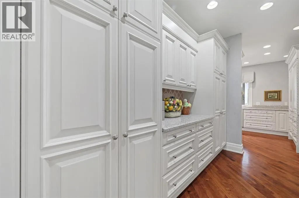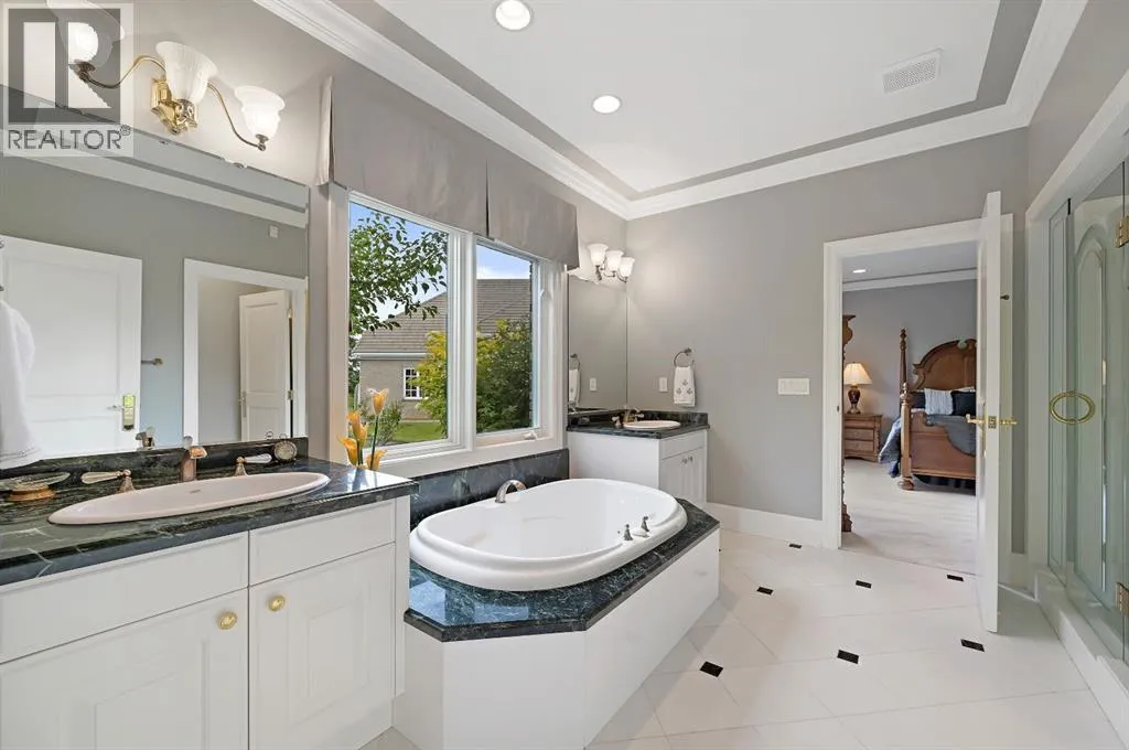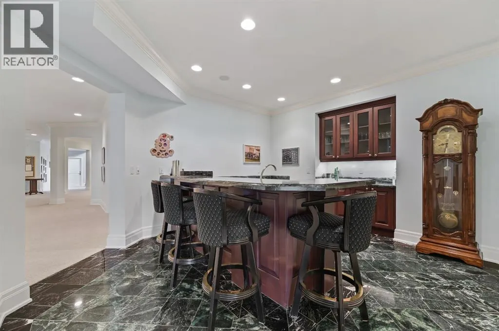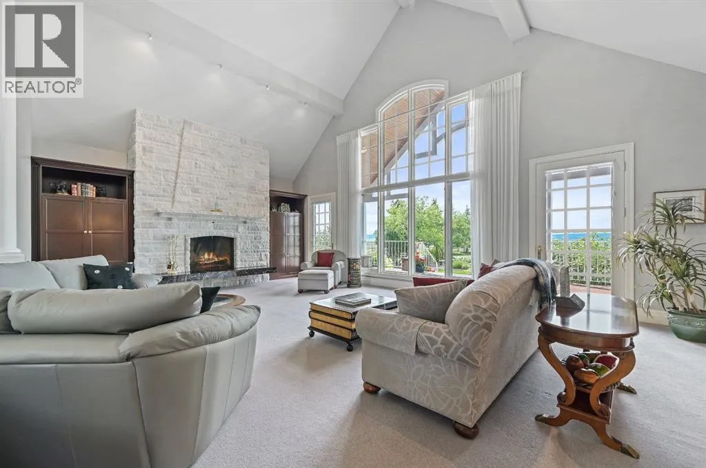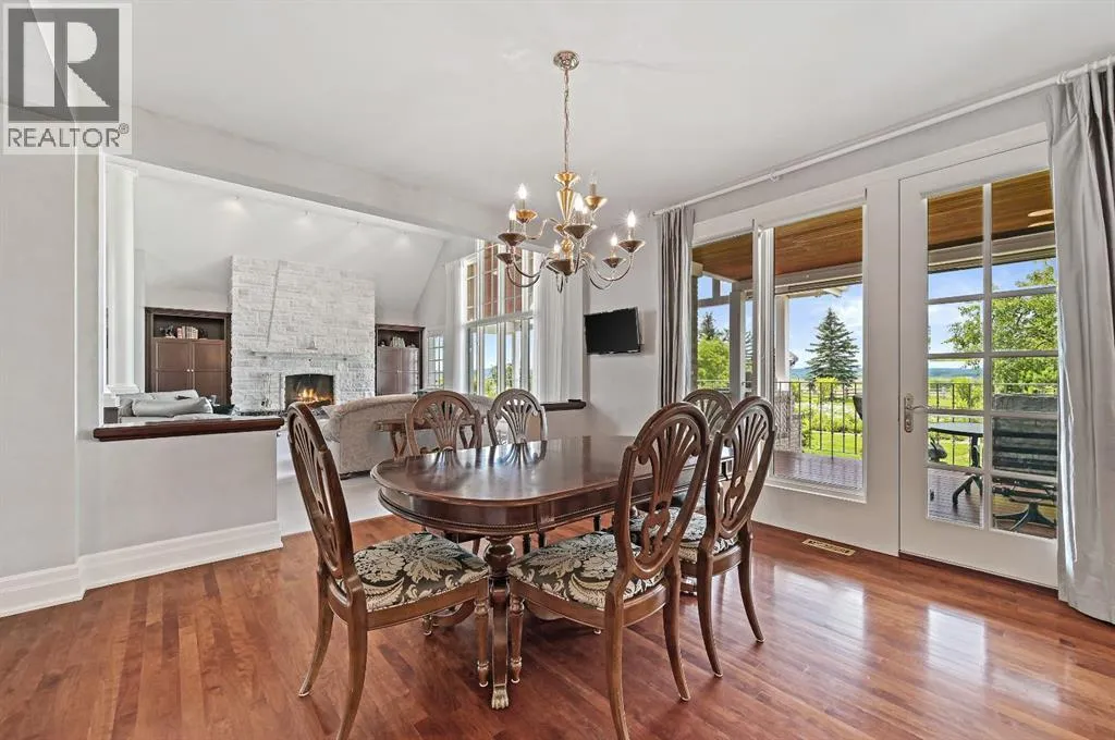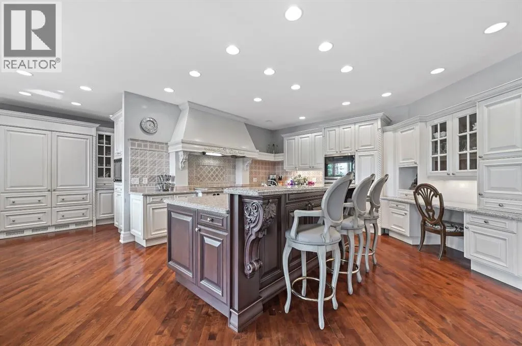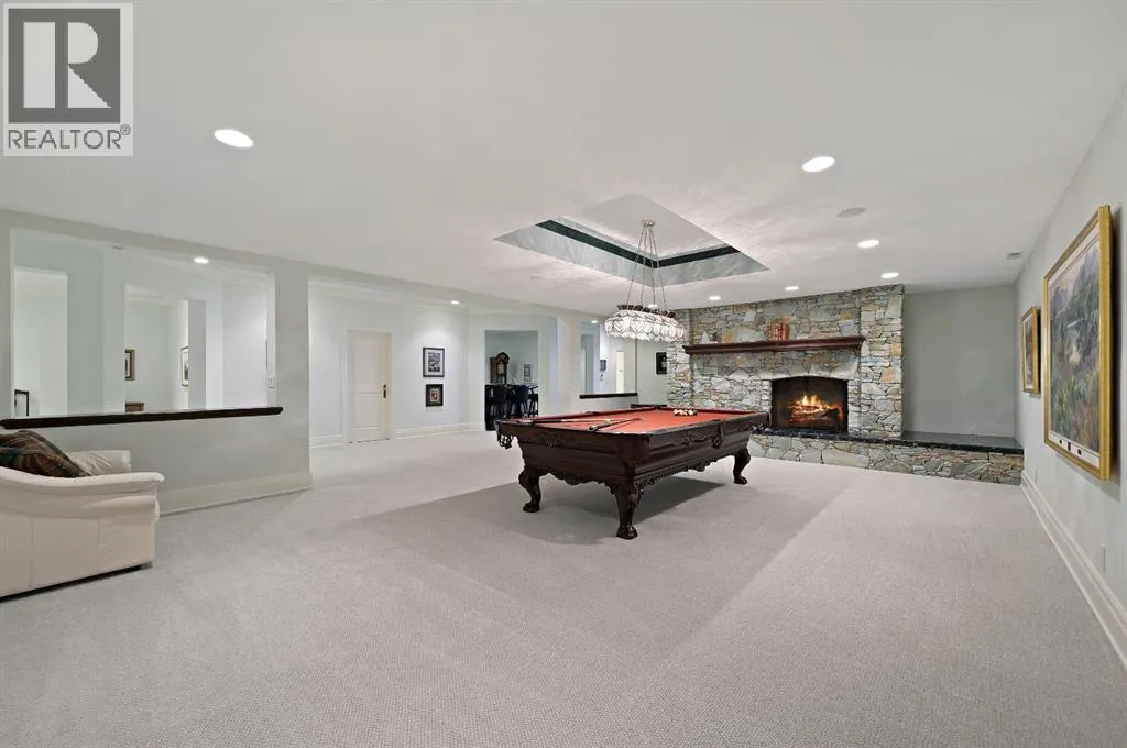 Set on 4.94 acres in the scenic beauty of Rural Foothills County, this impeccably maintained bungalow offers over 9,500 square feet of living spaceâproviding the peace and privacy of a country estate just a short drive from Calgaryâs downtown core. From the moment you arrive, the stately brick exterior, durable clay tile roof, and manicured landscaping hint at the exceptional quality within. A serene pond with a cascading waterfall sets a tranquil tone, while a beautifully landscaped courtyard adds to the propertyâs charm. Inside, a grand marble-floored entryway opens into the expansive living room, where a wood-burning fireplace and large west-facing windows frame spectacular mountain views. Rich hardwood floors flow throughout the main level, complementing the timeless design. The chefâs kitchen, crafted by Empire Kitchen and Bath, features Gaggenau and Sub-Zero appliances, custom cabinetry, and generous prep space. A den and an office with custom built-ins offer quiet retreats, while the massive primary suite boasts a walk-in closet and a spa-inspired ensuite with a soaker tub. Two additional bedrooms and a well-appointed mud/laundry room off the heated triple-car garage complete the main level. Outdoor living is elevated with a massive west-facing deck, complete with a built-in BBQ that steps down into a beautifully landscaped garden with stone walkway. The lower level includes a fully built-out legal nanny suite with kitchen, living room, and bedroom, thoughtfully tucked away for privacy. Additional spaces include a games room, billiards room, recreation area, exercise space, full wet bar, a fourth bedroom, and two more wood-burning fireplaces. An extraordinary 2,300 square feet RV garage/workshop offers endless possibilities for collectors, hobbyists, or large-scale projects. Blending elegance, functionality, and an enviable location, this estate is just minutes from Calgaryâs city limits, Strathcona-Tweedsmuir School, the Calgary Polo Club, and Spruce Meadows âdelivering a rare combination of luxury, privacy, and convenience. (id:27476)