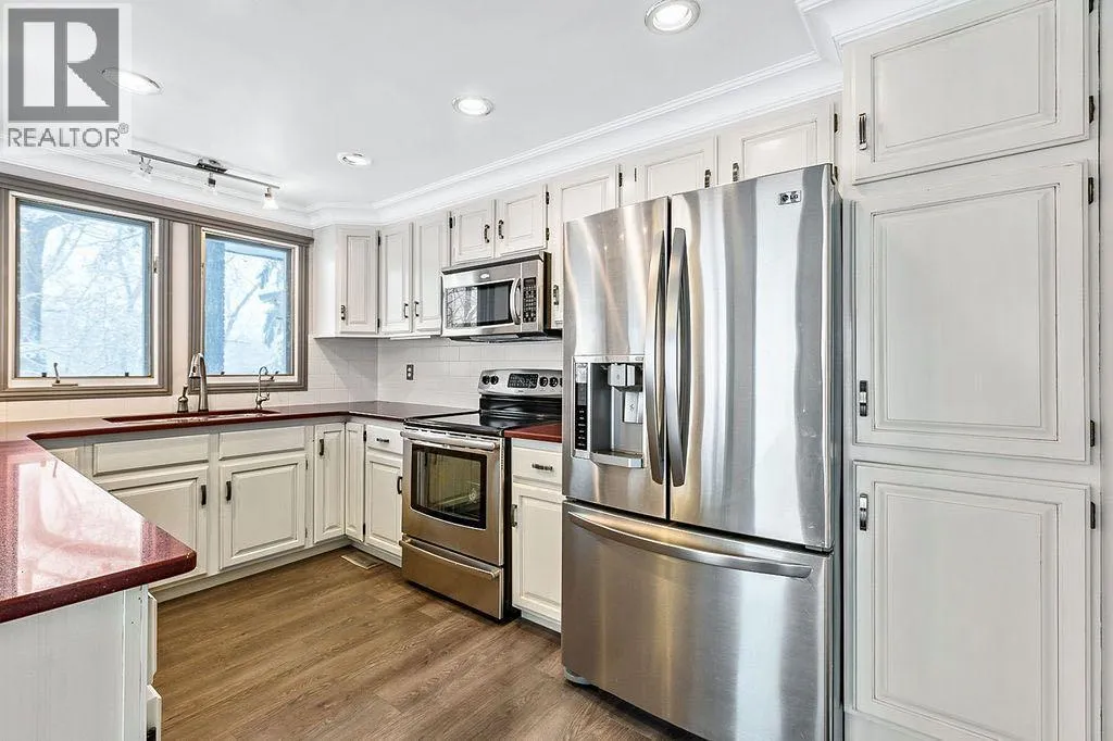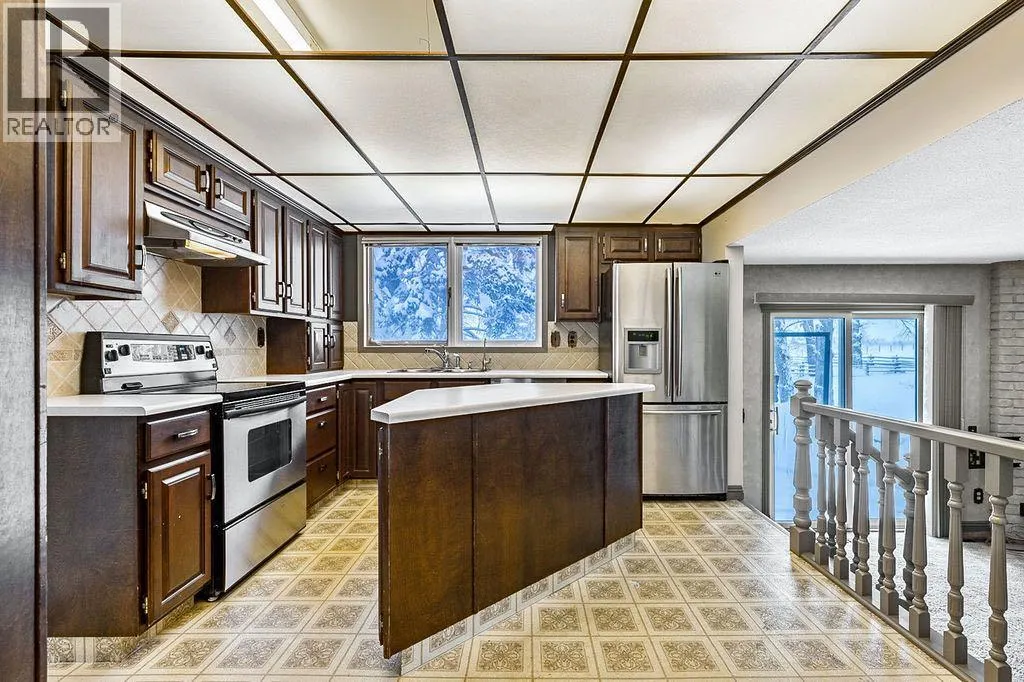 This large family home is located on a private 19.88 acre parcel of land and has so many features and options for the buyer who craves space. it has been home to the seller and both sets of in-laws at one time. Perfect for the blended family with parents and children who live together. There are 3 kitchens, three separate living areas and separate entrances for all. If you are one big family the house turns into the ideal home with room for all. Sunroom off huge primary bedroom suite offers the ideal parents get away from a busy household. Large upstairs office is air conditioned to make the work day easier. Lived in and loved by this family for over 47 years it provides everything needed to make acreage life the best! Beautiful yard with mature trees, dug out , heated shop and quonset. All set up for horses with a 5 stall heated barn complete with water and lots of storage for tack and feed. Huge hay shed and shelter for the horses. Automatic waterer. Great pastures. Roof was replaced in 2005 with 30 year shingles, Barn roof was also replaced with same roofing 2005. Ideally situated close to emergency responders, Heritage Pointe stores, professional services and restaurant. Golf courses nearby. With 19.88 acres surrounded by small parcels there are many future possibilities for this prime acreage. (id:27476)