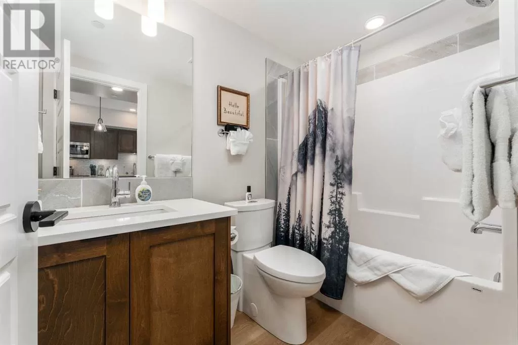 Welcome to an exceptional investment opportunity at Sparrowhawk Lodge! This stunning second floor, short-term rental in a brand-new condominium is fully turn-key, offering luxury at every corner with high-end finishes and meticulous attention to detail. This unit boasts breathtaking, private views of the mountains and trees, from a private deck complete with a BBQ, perfect for enjoying the serene surroundings. Ready for its next discerning owner, this property provides both comfort and convenience in a resort-style short term rental community. Sparrowhawk Lodge offers an array of upscale amenities, including heated underground parking, dedicated ski and bike storage, a year-round heated outdoor swimming pool and hot tub, two communal fire pits, a state-of-the-art fitness center, a charming coffee shop, and an on-site liquor storeâall just steps from your front door. For those who love the great outdoors, you're only 5 minutes from Canmore and 25 minutes from the world-renowned town of Banff. If you're an avid skier, here's your one stop shop to earn extra income, and have a place to stay during your trips to the mountains! This luxury property is a proven success on the short-term rental market, consistently performing with exceptional bookings. If youâre looking for a solid return on investment, this is your opportunity to own in one of Alberta's most desirable locations. *PLEASE NOTE- LIST PRICE DOES NOT INCLUDE GST* Due diligence is required regarding GST (id:27476)