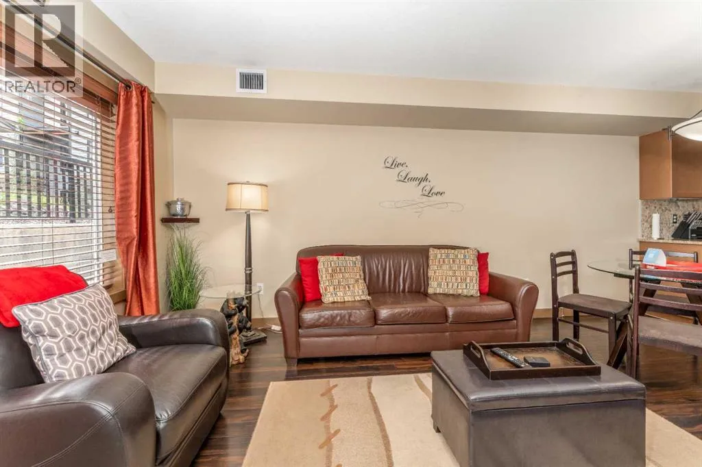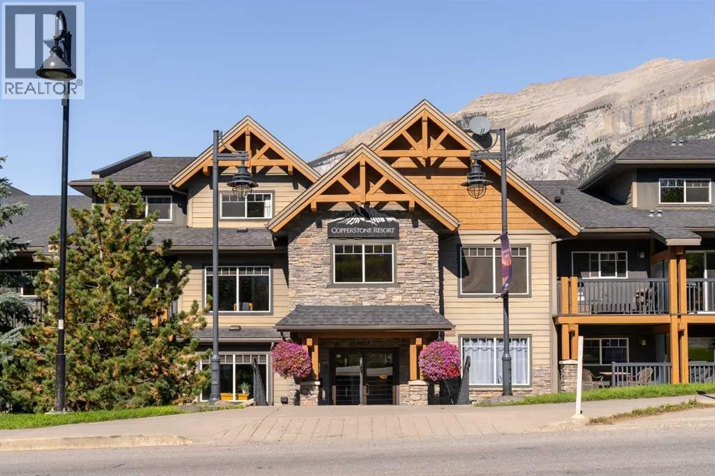 Discover one of the Rockiesâ best-kept secrets at Copperstone Resort. This spacious 1 bedroom, 1 bathroom suite is set over a single level and designed for both comfort and style. The main living area features a fully equipped kitchen with island and a cozy living room centered around a stone fireplace. The large bedroom offers plenty of space, while a dedicated desk nook makes remote work easy. In-suite laundry and a secure ownerâs closet add extra convenience.With zoning that permits short-term rentals, you have the flexibility to self-manage or engage a professional management company. Offered fully turnkey, the suite includes all furnishings, housewares, electronics, and linens. Resort amenities include an outdoor hot tub, BBQ grills, firepit, fitness area, heated underground parking, and private storage cage. Surrounded by endless adventure, youâll enjoy world-class hiking, biking, fishing, and four nearby ski resorts spanning Banff National Park and Kananaskis Country, all just minutes away. Best of all, Copperstone Resort is not subject to the Foreign Buyers Ban, making this an attractive investment for both Canadian and international buyers. The list price includes GST. Consult an Accountant to discuss deferral options. (id:27476)