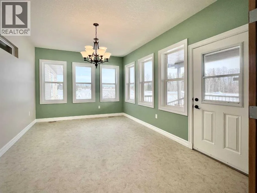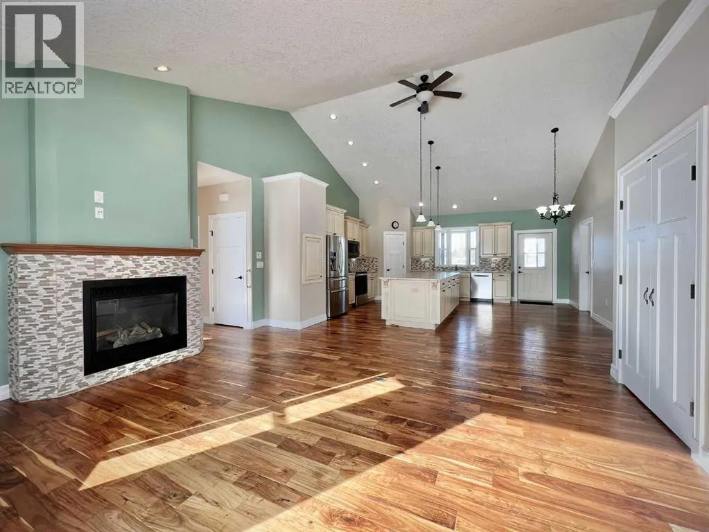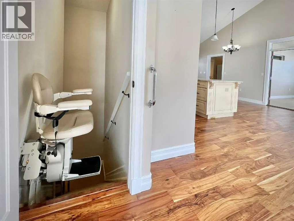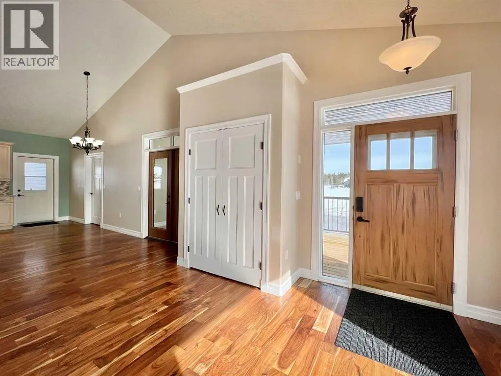 Space, comfort, and thoughtful design come together beautifully in this exceptional acreage property in Creeks Crossing, Debolt. Set on 1.73 acres and located just 35 minutes from Grande Prairie city limits and 30 minutes from Valleyview, this custom bungalow offers an impressive 4,600 square feet of total living space, including a fully finished basement, making it an ideal home for those seeking both room to grow and the peace of country living.Crafted with care and long-term comfort in mind, this home was designed with accessibility throughout. Extra-wide doorways, low thresholds, accessible bathrooms, a stair lift, and a wheelchair lift in the garage ensure ease of movement, while main floor laundry adds everyday convenience. The home shows beautifully and feels like new, with quality finishes and meticulous attention to detail evident in every space.The main level features three exceptionally large bedrooms, including a stunning primary suite approaching 300 square feet, along with 2.5 bathrooms. The ensuite offers a relaxing walk-in jet tub, while the main bath features a spacious five-foot shower. The heart of the home is the expansive living area where warm hardwood flooring, a cozy gas fireplace, and soaring 14-foot vaulted ceilings create an inviting atmosphere. The kitchen is equally impressive with abundant workspace, a walk-in pantry, and even a dumbwaiter for added convenience. Just beyond, the elegant formal dining room is accessed through beautiful wood French doors and surrounded by wrap-around windows that frame peaceful views of your acreage.The welcoming front entry opens to a covered front deck, perfect for enjoying quiet mornings, while a second covered deck off the kitchen overlooks the backyard and provides an ideal space for outdoor gatherings.Practical features continue outside with an oversized heated double garage equipped with a radiant heater. One bay stretches over 40 feet long, offering incredible flexibility for additional vehicl es, recreational toys, or a hobby workshop. A detached single-bay garage and chain-link fenced area provide extra storage and secure space when needed.The fully finished basement expands the home even further with two enormous bedrooms, a spacious full bathroom, a large recreation area, and two additional finished flex rooms perfect for offices, craft or quilting spaces, a home gym, or even an arcade room. Modern comforts like tankless hot water and central air conditioning complete the package, ensuring efficiency and comfort year-round.With its exceptional size, thoughtful accessibility, and peaceful acreage setting, this home is perfectly suited for families at any stage of life and offers the flexibility for comfortable multi-generational living. (id:27476)