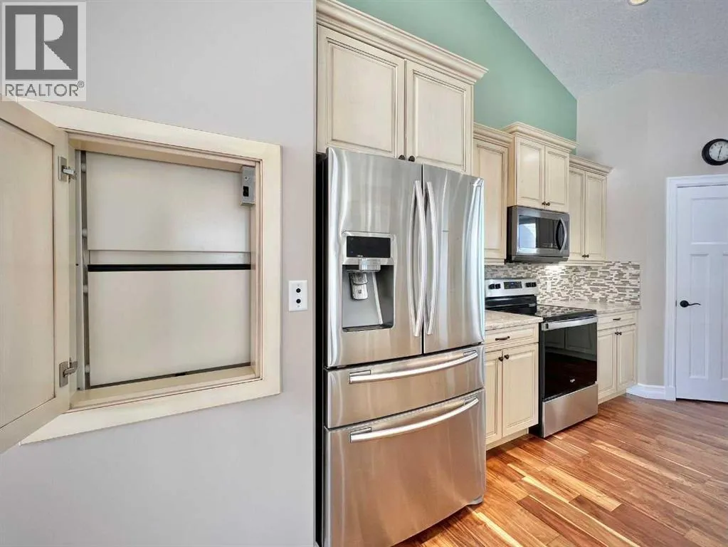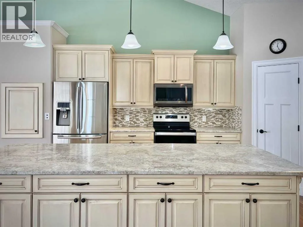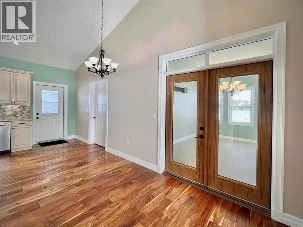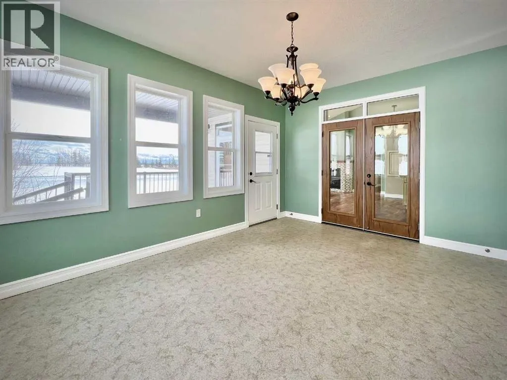 Space, comfort, and thoughtful design come together beautifully in this exceptional acreage property in Creeks Crossing, Debolt. Set on 1.73 acres and located just 35 minutes from Grande Prairie city limits and 30 minutes from Valleyview, this custom bungalow offers an impressive 4,600 square feet of total living space, including a fully finished basement, making it an ideal home for those seeking both room to grow and the peace of country living.Crafted with care and long-term comfort in mind, this home was designed with accessibility throughout. Extra-wide doorways, low thresholds, accessible bathrooms, a stair lift, and a wheelchair lift in the garage ensure ease of movement, while main floor laundry adds everyday convenience. The home shows beautifully and feels like new, with quality finishes and meticulous attention to detail evident in every space.The main level features three exceptionally large bedrooms, including a stunning primary suite approaching 300 square feet, along with 2.5 bathrooms. The ensuite offers a relaxing walk-in jet tub, while the main bath features a spacious five-foot shower. The heart of the home is the expansive living area where warm hardwood flooring, a cozy gas fireplace, and soaring 14-foot vaulted ceilings create an inviting atmosphere. The kitchen is equally impressive with abundant workspace, a walk-in pantry, and even a dumbwaiter for added convenience. Just beyond, the elegant formal dining room is accessed through beautiful wood French doors and surrounded by wrap-around windows that frame peaceful views of your acreage.The welcoming front entry opens to a covered front deck, perfect for enjoying quiet mornings, while a second covered deck off the kitchen overlooks the backyard and provides an ideal space for outdoor gatherings.Practical features continue outside with an oversized heated double garage equipped with a radiant heater. One bay stretches over 40 feet long, offering incredible flexibility for additional vehicl es, recreational toys, or a hobby workshop. A detached single-bay garage and chain-link fenced area provide extra storage and secure space when needed.The fully finished basement expands the home even further with two enormous bedrooms, a spacious full bathroom, a large recreation area, and two additional finished flex rooms perfect for offices, craft or quilting spaces, a home gym, or even an arcade room. Modern comforts like tankless hot water and central air conditioning complete the package, ensuring efficiency and comfort year-round.With its exceptional size, thoughtful accessibility, and peaceful acreage setting, this home is perfectly suited for families at any stage of life and offers the flexibility for comfortable multi-generational living. (id:27476)
