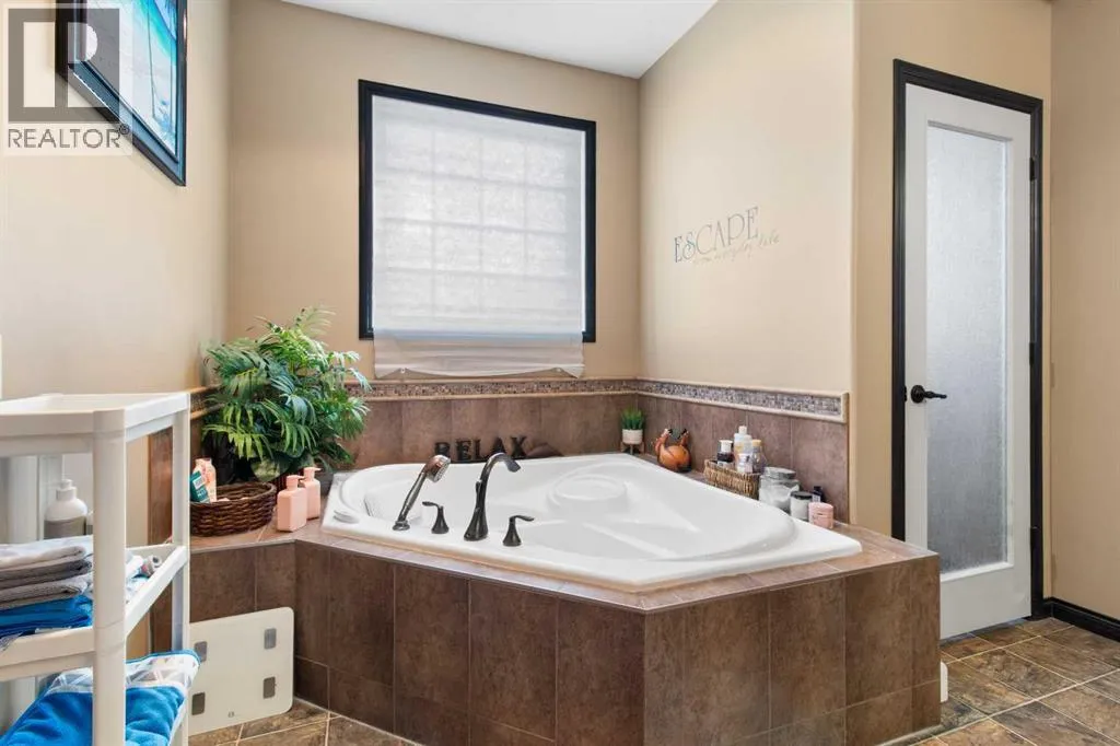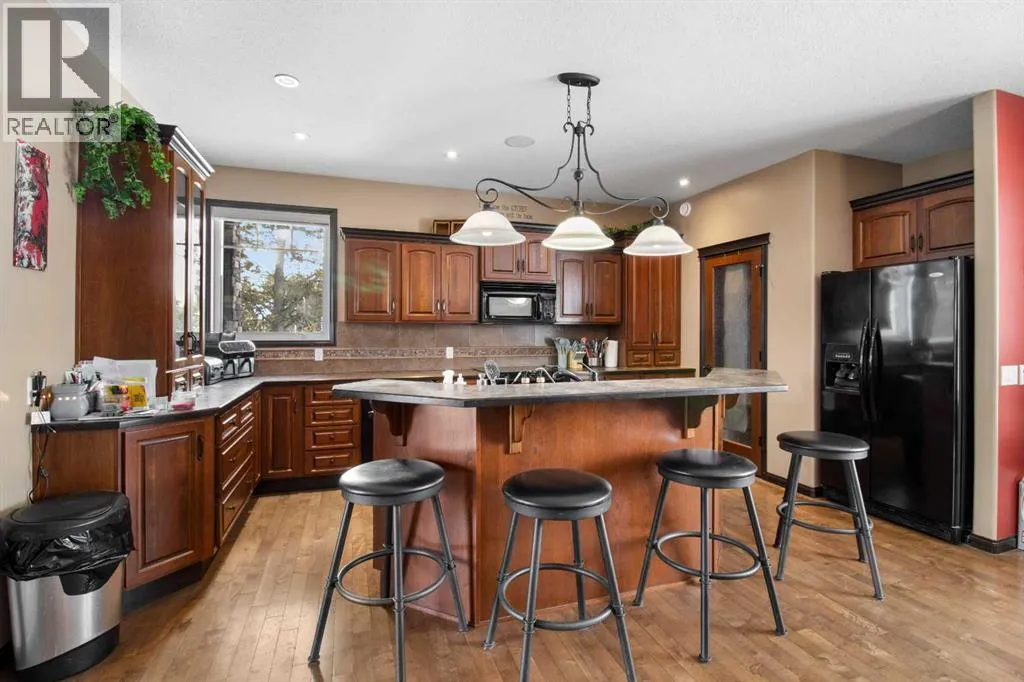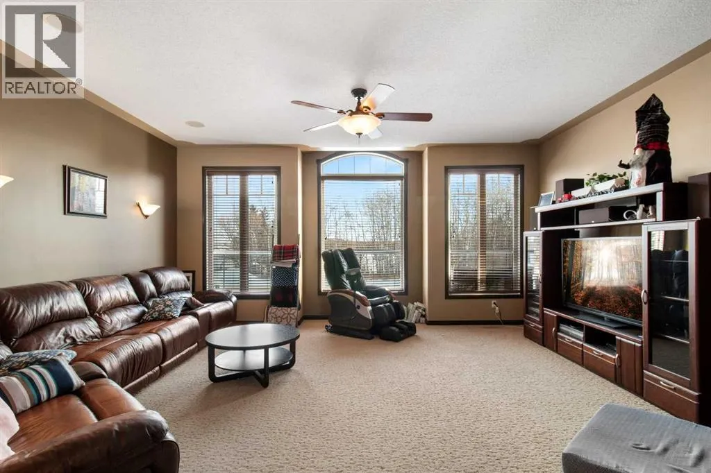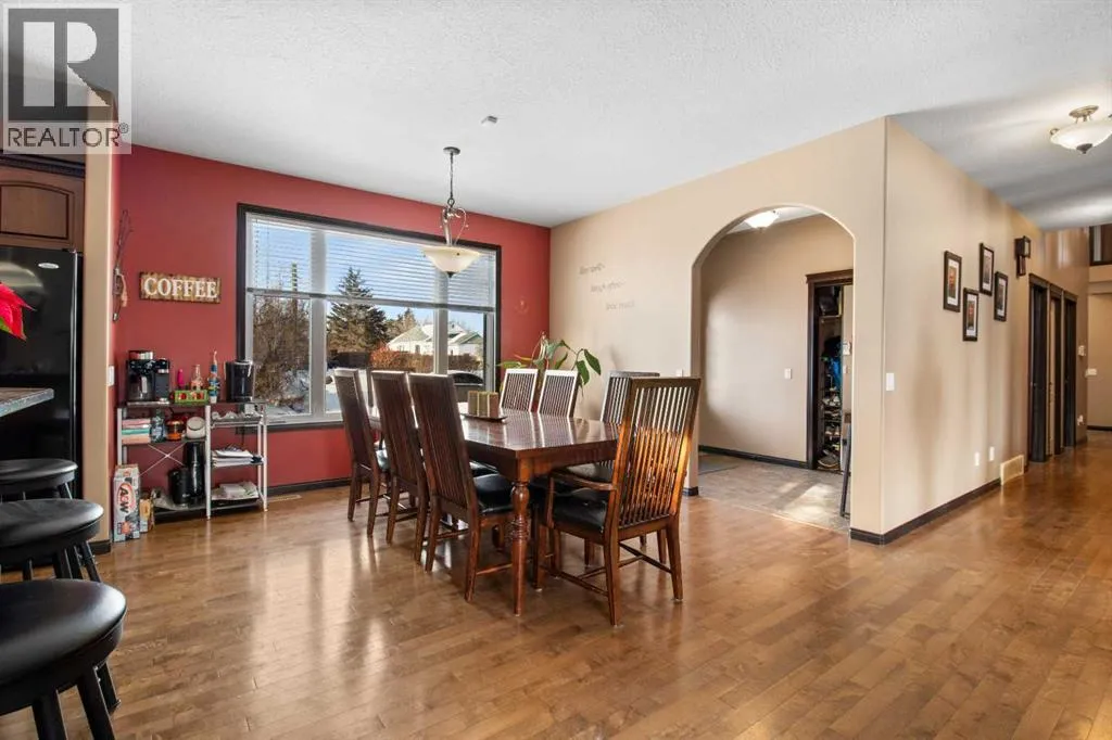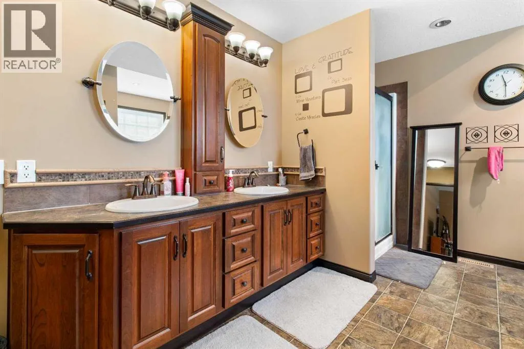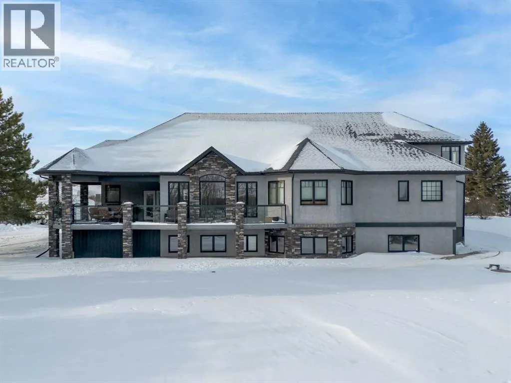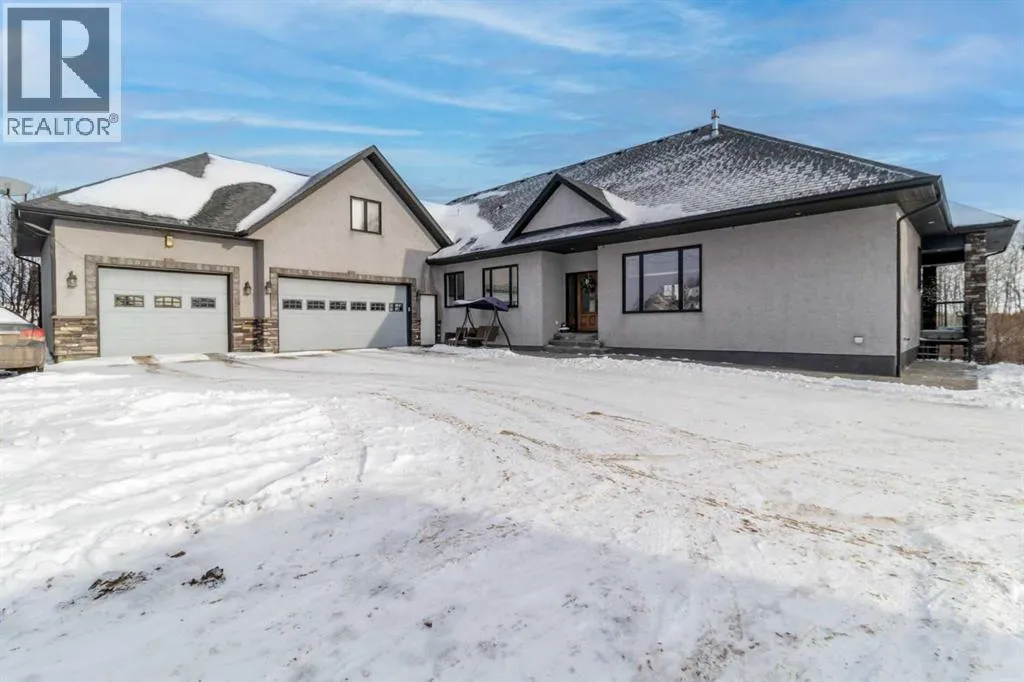 Welcome to this beautiful custom built home on just over half an acre of property. Coming in through the foyer brings you to a large kitchen and dining room area with corner pantry, center island with sinks and plenty of storage underneath, plenty of countertop and loads of cabinets. Strolling down the hall we will find a sunken living room with a double sided gas fireplace and large windows to capture the sunlight in the mornings. A little farther brings us to a large primary bedroom with an ensuite like no other. Double vanity sinks, shower, a large relaxing tub and a huge walk in closet. Another bedroom, a 2 piece bathroom and full laundry room complete the main floor. As well as the Entrance to the 1500 + sq ft heated garage that has room for 4 vehicles, toys, tools and storage, as well as a sitting area to gather with the neighbors. Upstairs takes us to another bedroom / office, with a walk in closet, a four piece bathroom and a family room. The partially finished basement with underfloor heat has been framed and wired for future finishing of bedrooms and family room but used mainly for storage at the moment. The 18x20 covered deck off the kitchen, with storage underneath, has been home to many calm nights of socializing with friends and family while listening to the birds and watching the wildlife walk through town. Very peaceful acreage type living but in town. This home is tied into water from the town, has its own septic tank and field, RV parking out back with the RV plug to power up your unit. For future building there is also power, water and another septic tank in place for a future shop building. Recent upgrades include a Hot water Tank 3 years ago, the furnace for the main floor was replaced 3 years ago but furnace for the upstairs is original. Come to Delburne and view this beautiful home that is a block from the golf course. (id:27476)