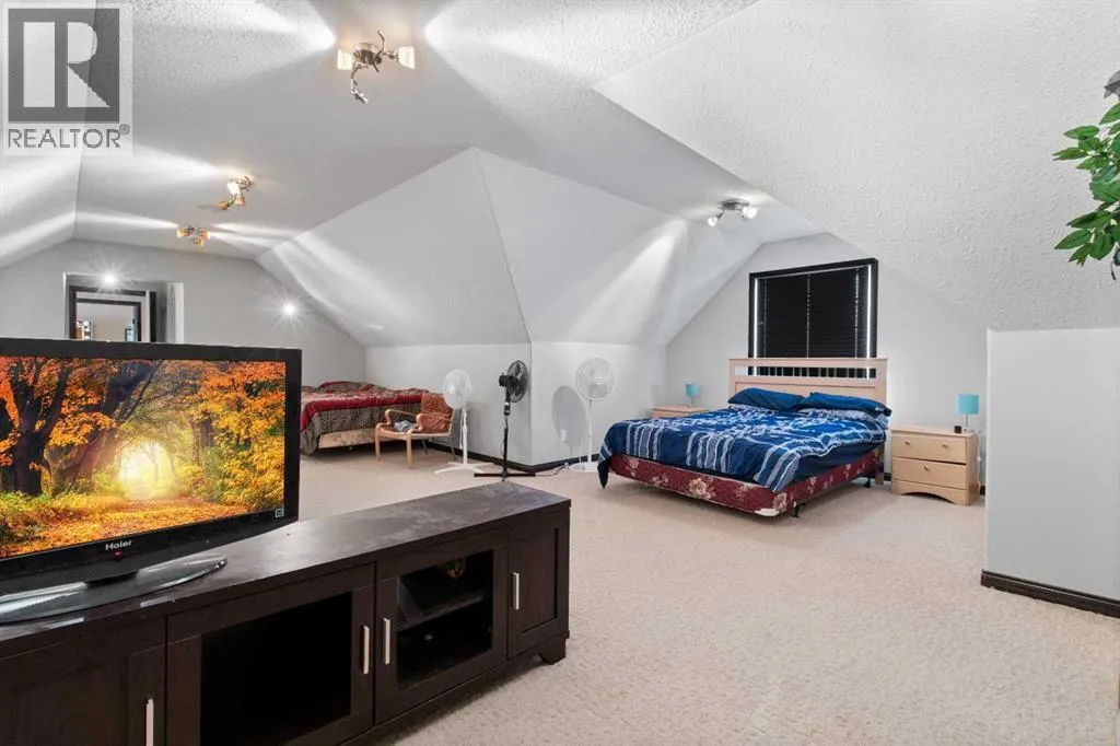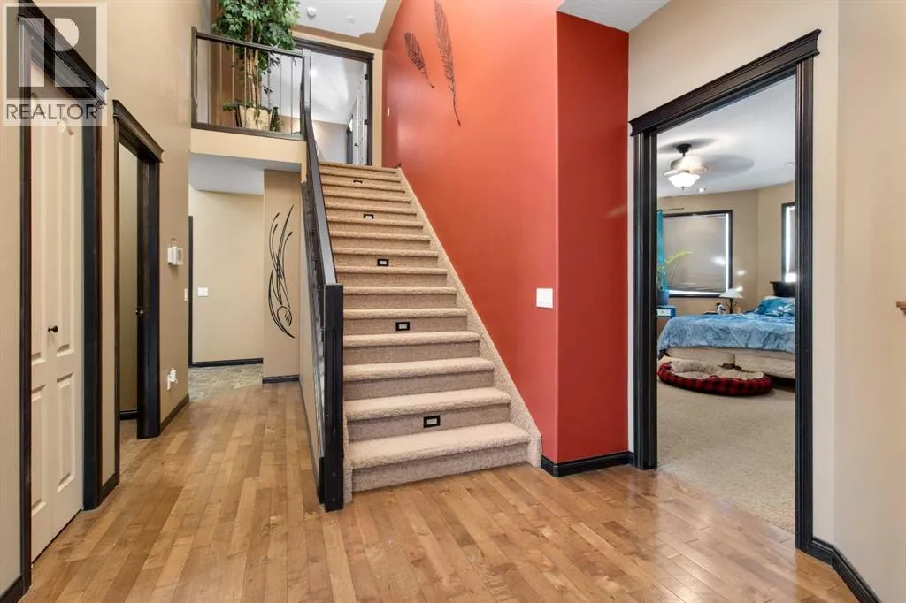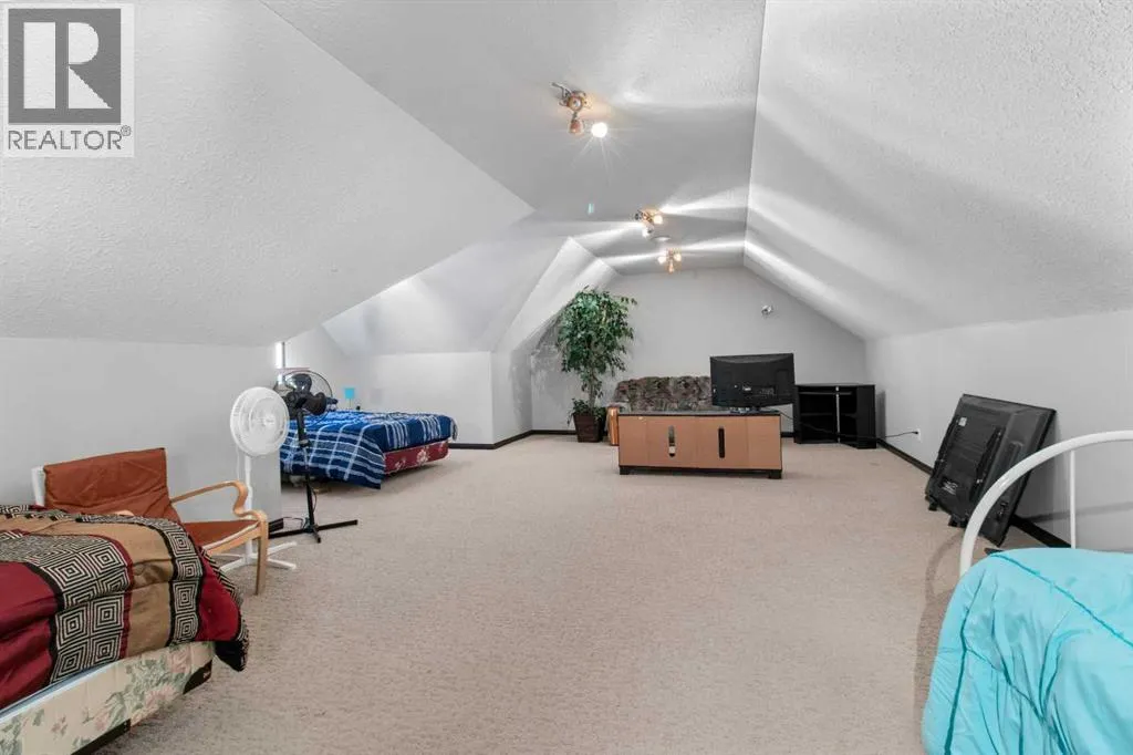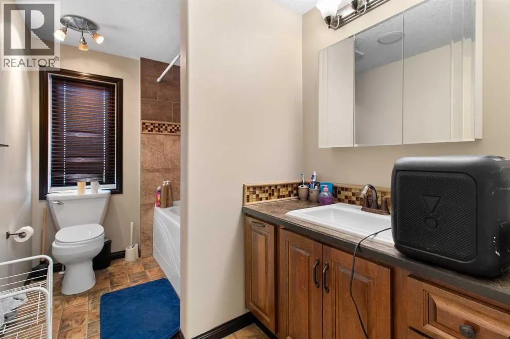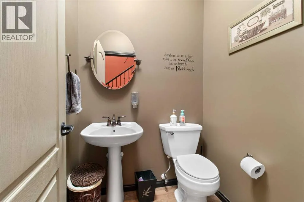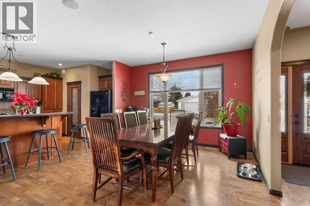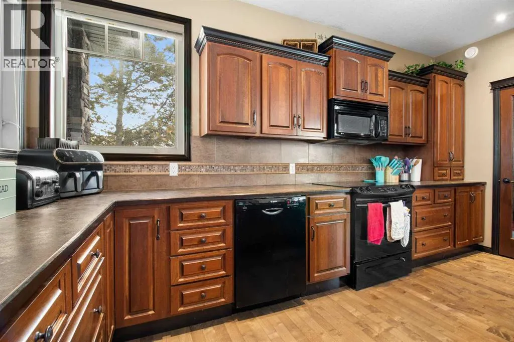 Welcome to this beautiful custom built home on just over half an acre of property. Coming in through the foyer brings you to a large kitchen and dining room area with corner pantry, center island with sinks and plenty of storage underneath, plenty of countertop and loads of cabinets. Strolling down the hall we will find a sunken living room with a double sided gas fireplace and large windows to capture the sunlight in the mornings. A little farther brings us to a large primary bedroom with an ensuite like no other. Double vanity sinks, shower, a large relaxing tub and a huge walk in closet. Another bedroom, a 2 piece bathroom and full laundry room complete the main floor. As well as the Entrance to the 1500 + sq ft heated garage that has room for 4 vehicles, toys, tools and storage, as well as a sitting area to gather with the neighbors. Upstairs takes us to another bedroom / office, with a walk in closet, a four piece bathroom and a family room. The partially finished basement with underfloor heat has been framed and wired for future finishing of bedrooms and family room but used mainly for storage at the moment. The 18x20 covered deck off the kitchen, with storage underneath, has been home to many calm nights of socializing with friends and family while listening to the birds and watching the wildlife walk through town. Very peaceful acreage type living but in town. This home is tied into water from the town, has its own septic tank and field, RV parking out back with the RV plug to power up your unit. For future building there is also power, water and another septic tank in place for a future shop building. Recent upgrades include a Hot water Tank 3 years ago, the furnace for the main floor was replaced 3 years ago but furnace for the upstairs is original. Come to Delburne and view this beautiful home that is a block from the golf course. (id:27476)