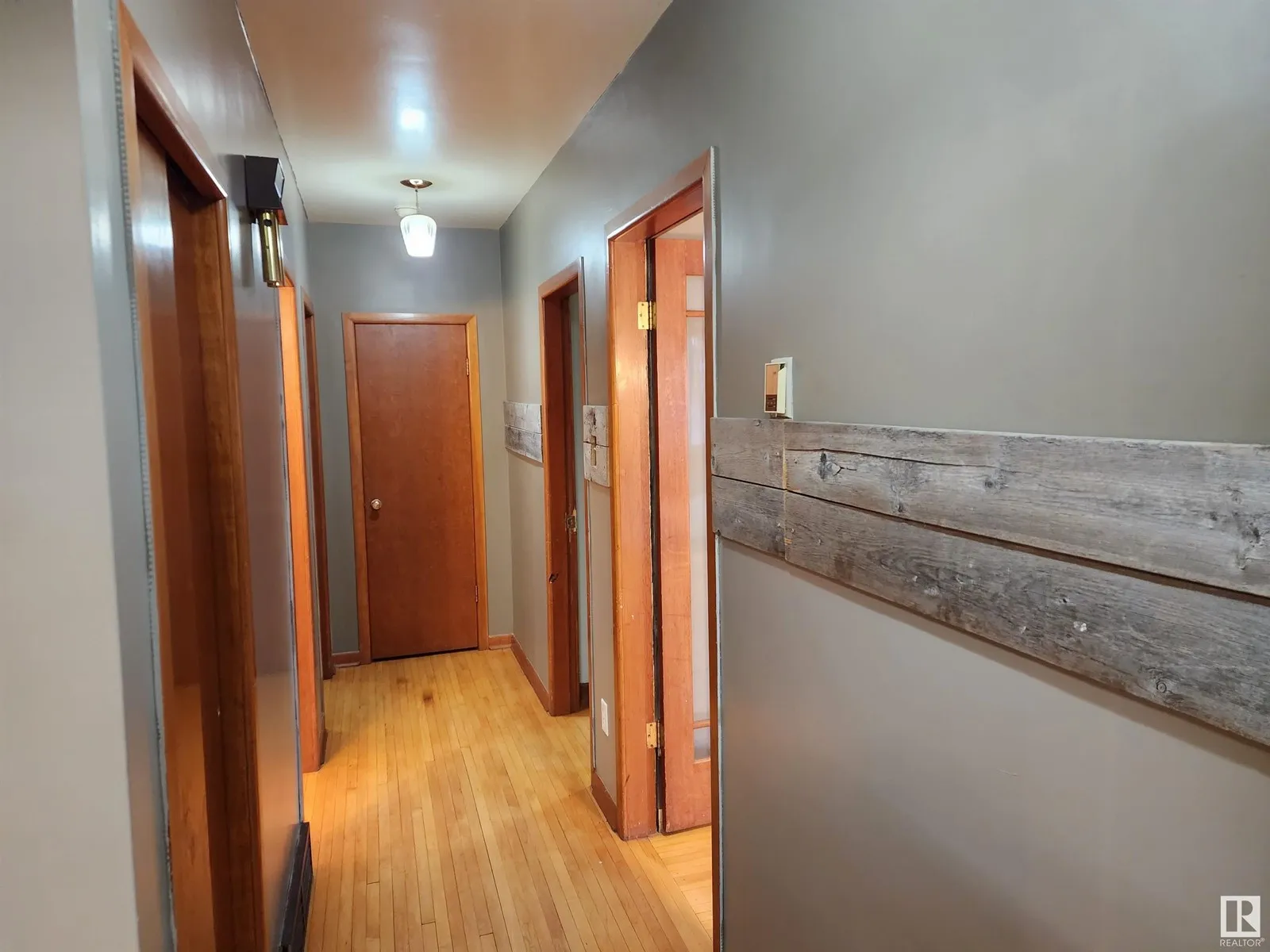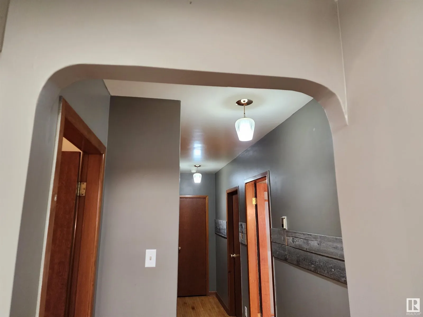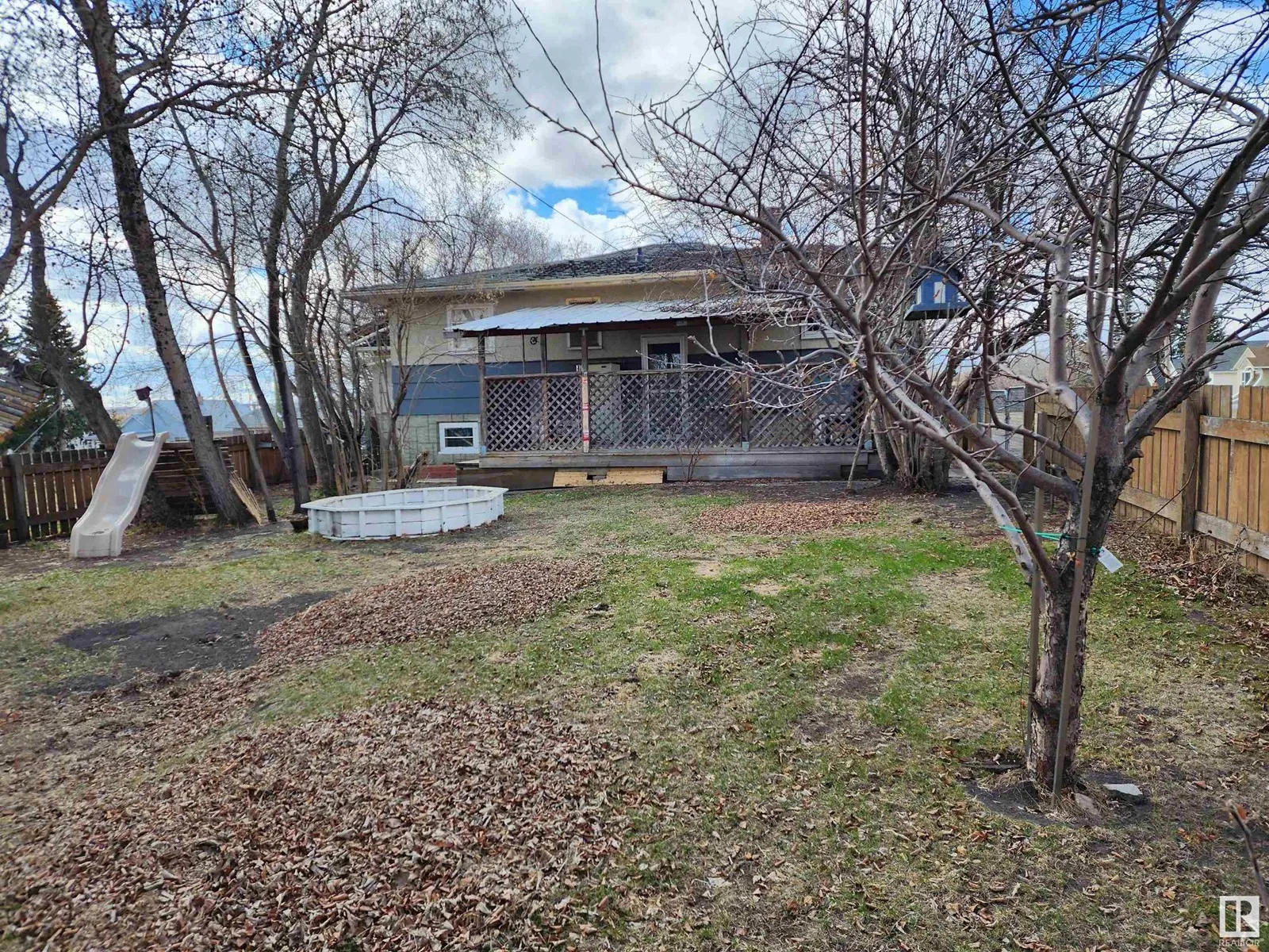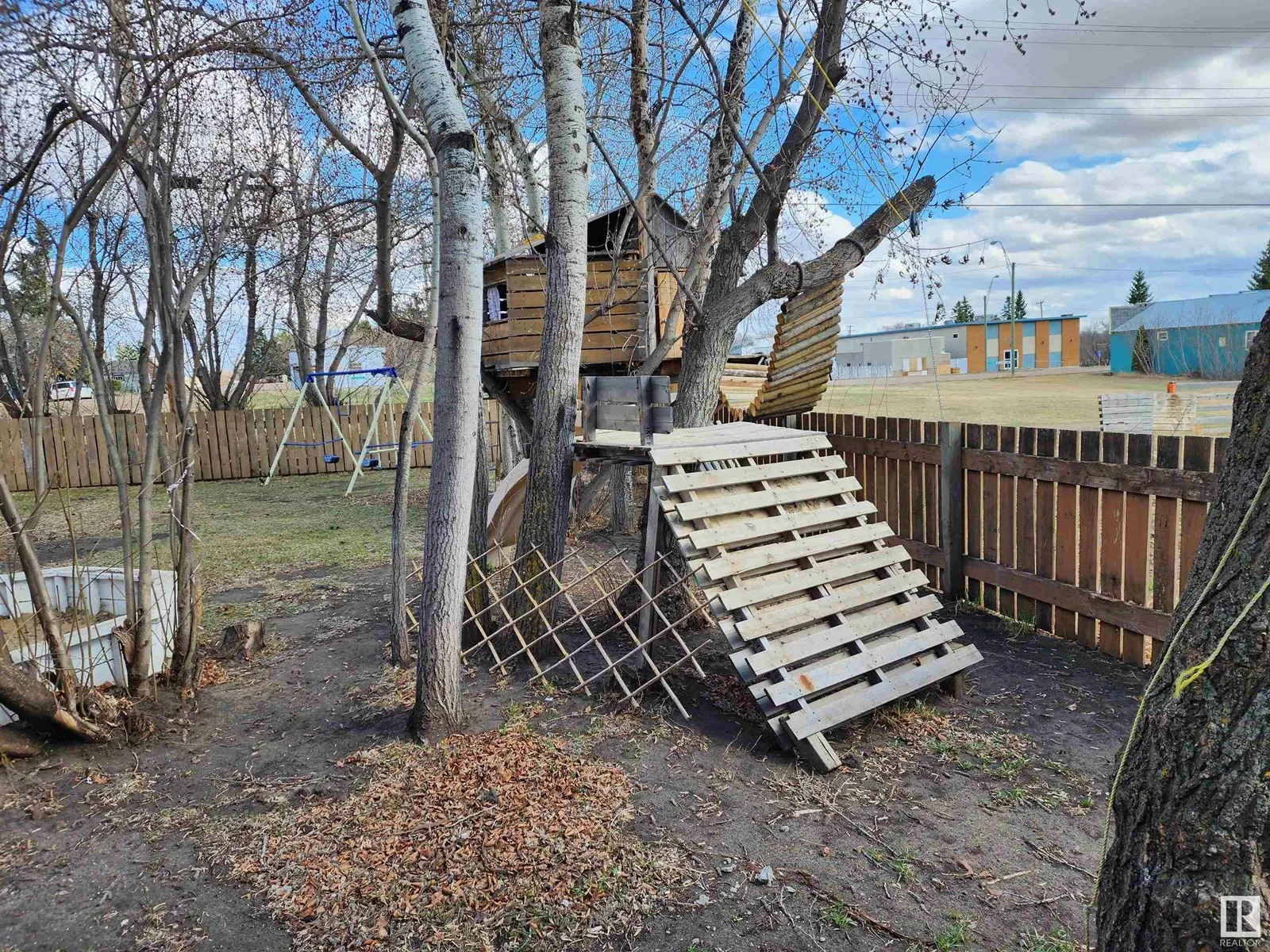 Charming CHARACTER HOME in the quiet community of Derwent located in scenic East Central Alberta between Two Hills, Elk Point and Vermilion. This property features a 1956, 880 sq.ft. raised bungalow, 2 bedrooms, 1 large bathroom, kitchen with ample cabinetry, dinette, living room with hardwood and partially finished basement with family room, utility, laundry, storage, cold room and roughed-in plumbing for a 2nd bathroom. You'll love the elegant 'cove' ceilings, sconce lighting, barnwood wall, arched doorways, glass block side light on the front entrance, newer interior paint & much more. Includes 2 covered decks for BBQ's and entertaining, attached single garage, 3 fenced lots measuring 120'x 122' and a 4th separate lot which offers many options including a commercial business, RV parking or a large garden area. Derwent offers a great sense of community and is on city water. Very beautiful area with rolling hills, agricultural land and lakes. Affordable Property! (id:27476)