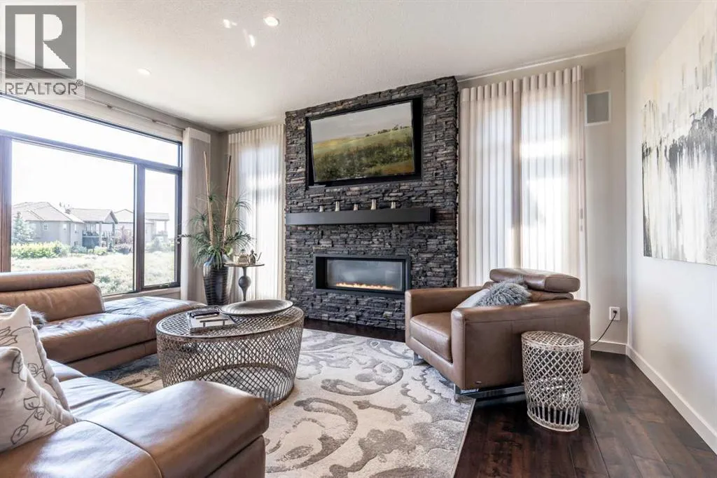 Welcome to a stunning executive residence that perfectly blends luxury, comfort, and location. Situated on a premium lot with breathtaking golf course views, this 4 bedroom, 2 Storey home offers 2924 SqFt above grade plus a fully developed walk-out basement, creating an impressive total living space of 4230 SqFt. From the moment you step inside, you'll notice the refined finishes and attention to detail including rich maple cabinetry, granite countertops, and a thoughtfully designed floor plan that balances elegance with everyday function. The main level showcases a chefâs kitchen with a large island, premium appliances and a butlers pantry. The kitchen opens seamlessly to the living and dining areas where oversized windows frame the breathtaking backdrop. Off the grand front entrance is a large office with custom built-in cabinetry and a matching executive desk. A functional mudroom, well-equipped laundry room with sink and folding counter, and a spacious half bath complete the main floor. The upper level offers three generously sized bedrooms, including a luxurious primary suite with dual walk-in closets and a spa-inspired ensuite featuring double sinks, a freestanding soaker tub, and walk-in shower. The walk-out basement adds exceptional versatility with a fourth bedroom, a large family room, a dedicated games area, and a private fitness room. Additional highlights include a massive triple-car garage, impeccable curb appeal, and a location that puts the golf course right in your backyard. Whether youâre entertaining guests, enjoying quiet evenings, or simply taking in the views, this exceptional property delivers on every level. With its prime location, high end features, and sophisticated design, this is more than a home - itâs a lifestyle. (id:27476)