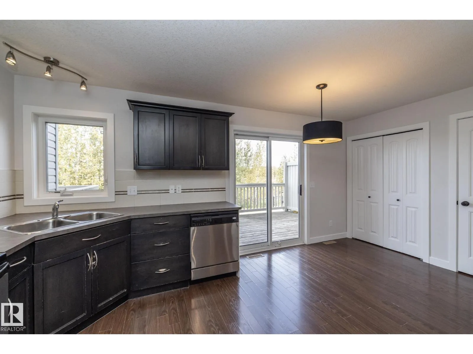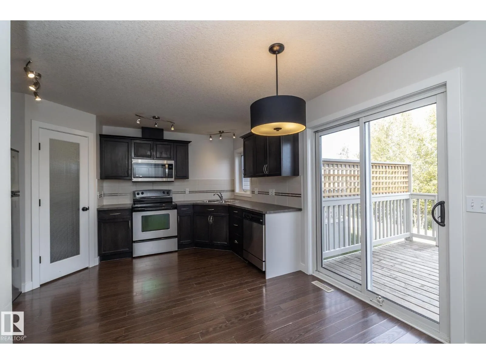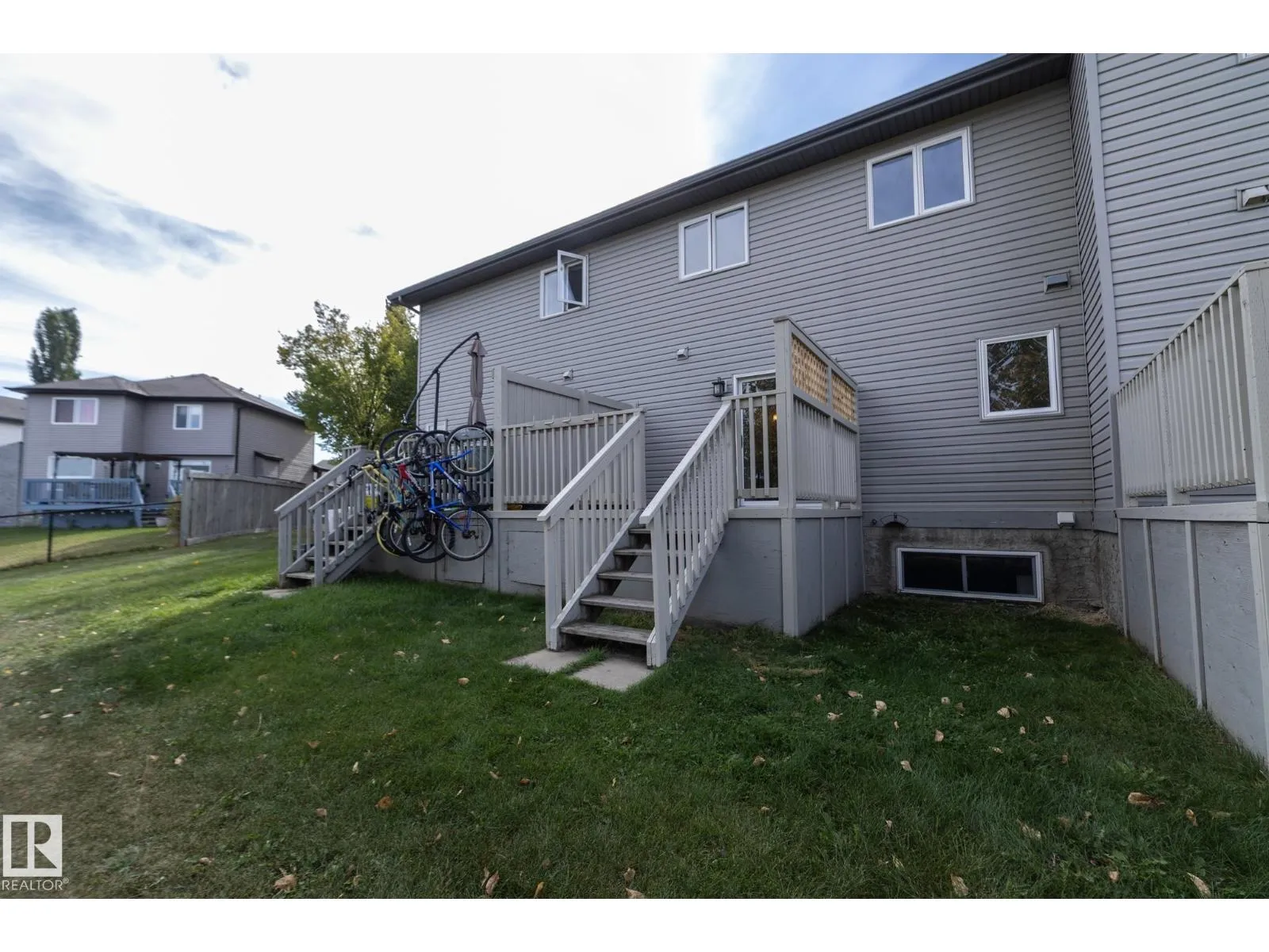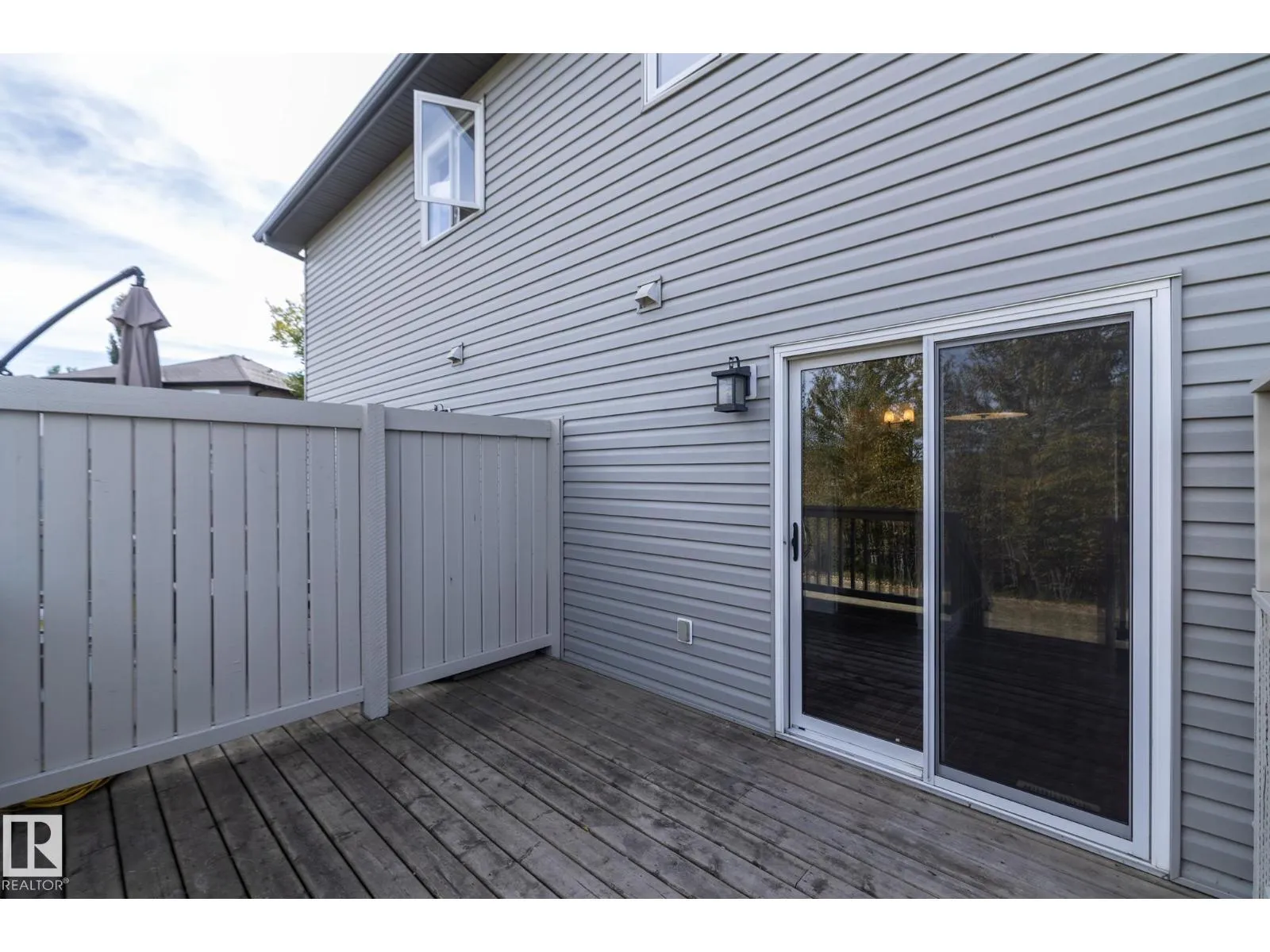 Backing the Ravine! This fully finished 2-storey offers nearly 1,800 sq. ft. of living space in a setting thatâs hard to beat. Step onto the deck & enjoy birdsong & rustling leaves as your daily backdrop. Inside, the main floor features an eat-in kitchen w/corner pantry, rich espresso cabinetry, & a bright living space w/south-facing windows that flood the home with natural light. Upstairs, the primary suite includes a walk-in closet, while two additional bedrooms & a full bath complete the level. The finished lower level adds a large family room w/a cozy gas fireplaceâperfect for winter evenings. Recent updates include fresh paint & new carpet throughout. With 2 energized parking stalls, ample visitor parking, & a quiet cul-de-sac location, this property combines comfort with practicality. Trails leading into Devonâs stunning river valley are just steps away, & commuting is simple with quick access to Leduc, EIA, Nisku, Acheson, & Edmonton. So what are you waiting for? Come take a peek and fall in love. (id:27476)
