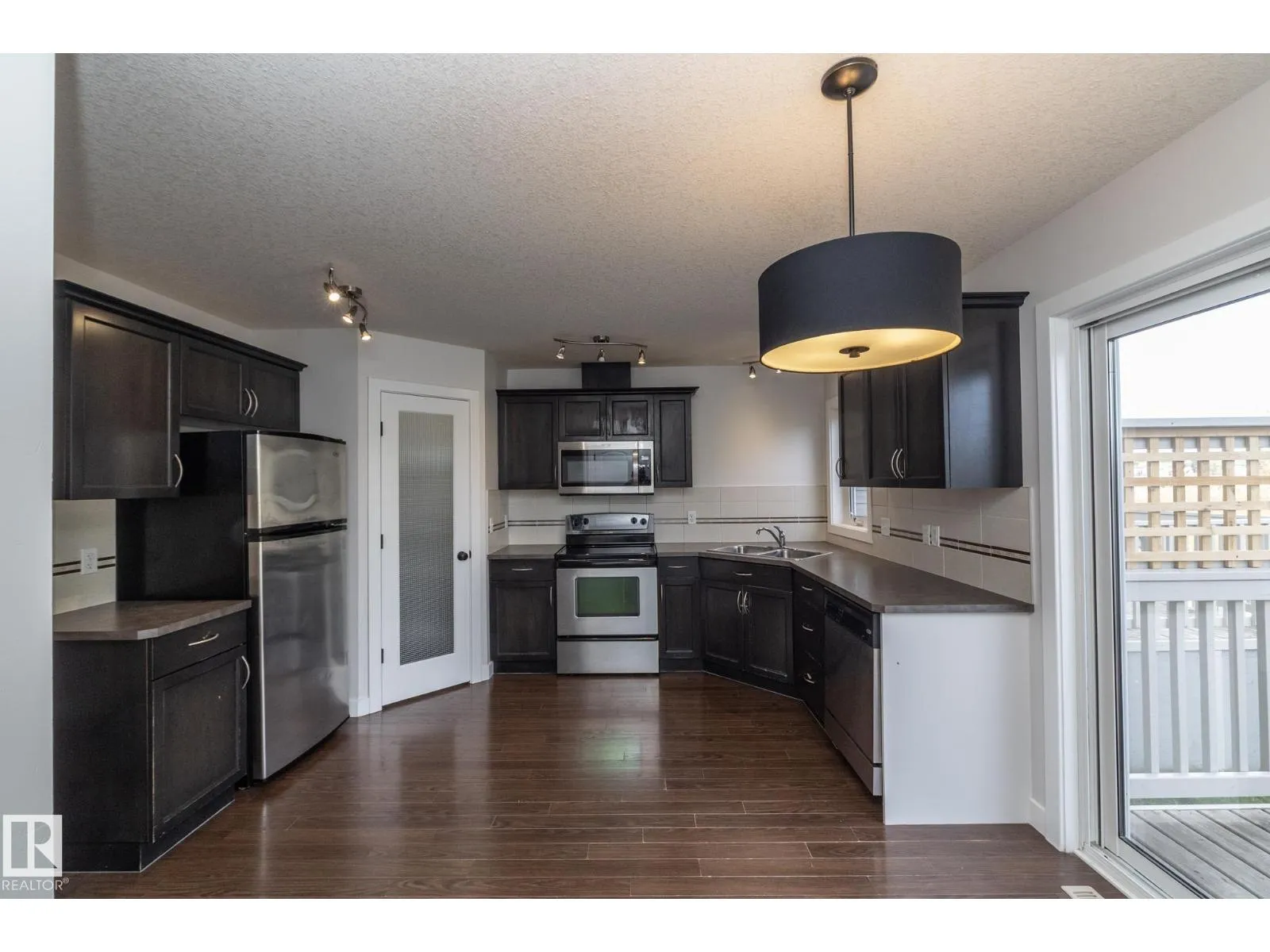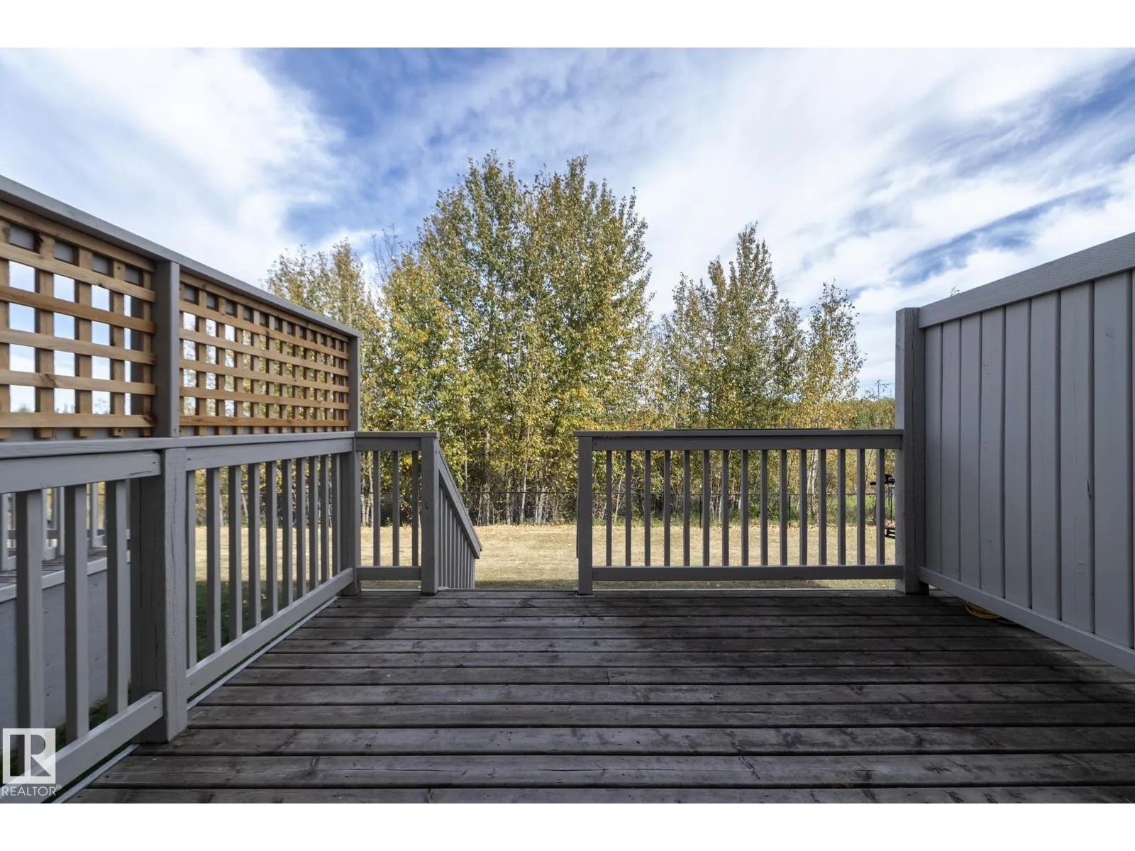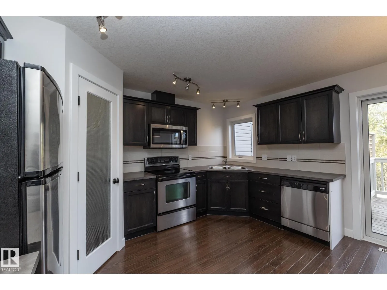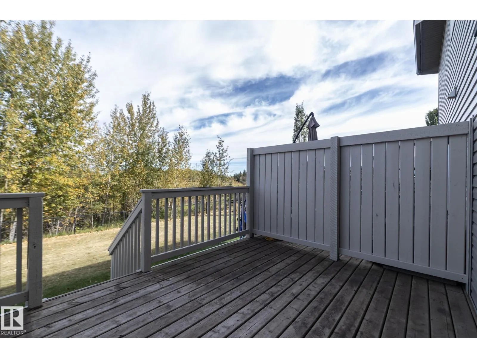 Backing the Ravine! This fully finished 2-storey offers nearly 1,800 sq. ft. of living space in a setting thatâs hard to beat. Step onto the deck & enjoy birdsong & rustling leaves as your daily backdrop. Inside, the main floor features an eat-in kitchen w/corner pantry, rich espresso cabinetry, & a bright living space w/south-facing windows that flood the home with natural light. Upstairs, the primary suite includes a walk-in closet, while two additional bedrooms & a full bath complete the level. The finished lower level adds a large family room w/a cozy gas fireplaceâperfect for winter evenings. Recent updates include fresh paint & new carpet throughout. With 2 energized parking stalls, ample visitor parking, & a quiet cul-de-sac location, this property combines comfort with practicality. Trails leading into Devonâs stunning river valley are just steps away, & commuting is simple with quick access to Leduc, EIA, Nisku, Acheson, & Edmonton. So what are you waiting for? Come take a peek and fall in love. (id:27476)
