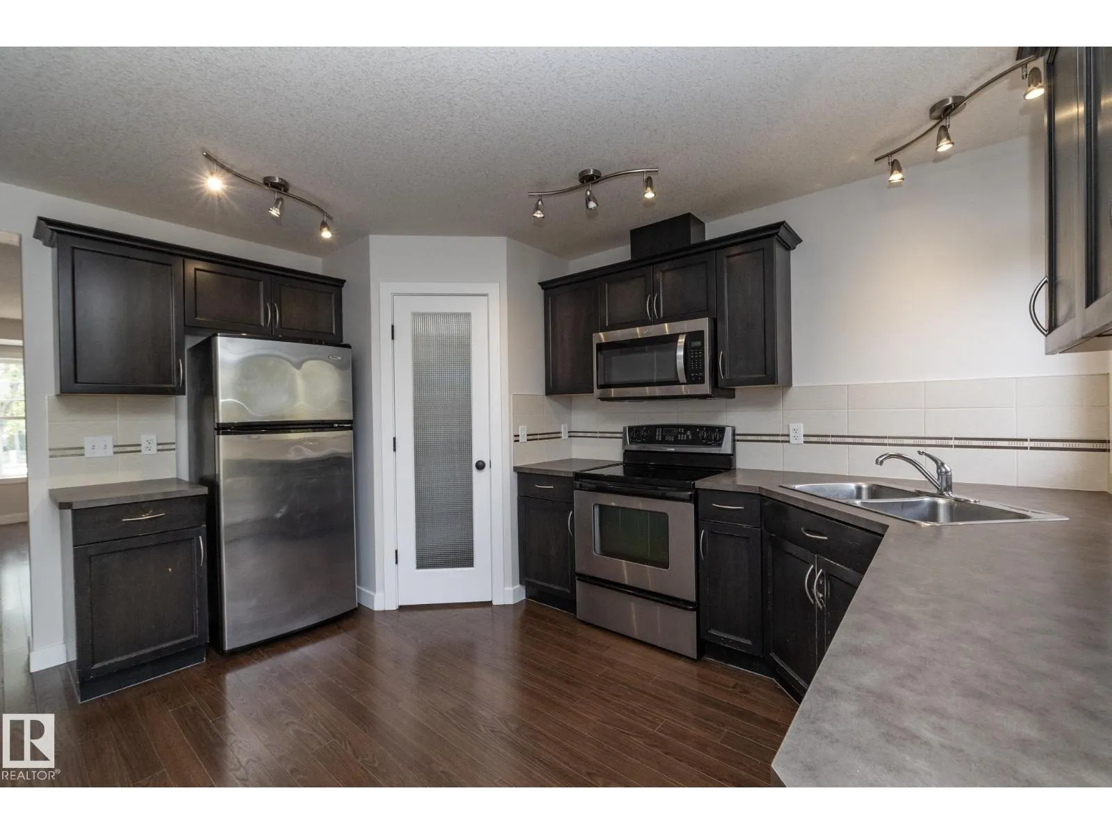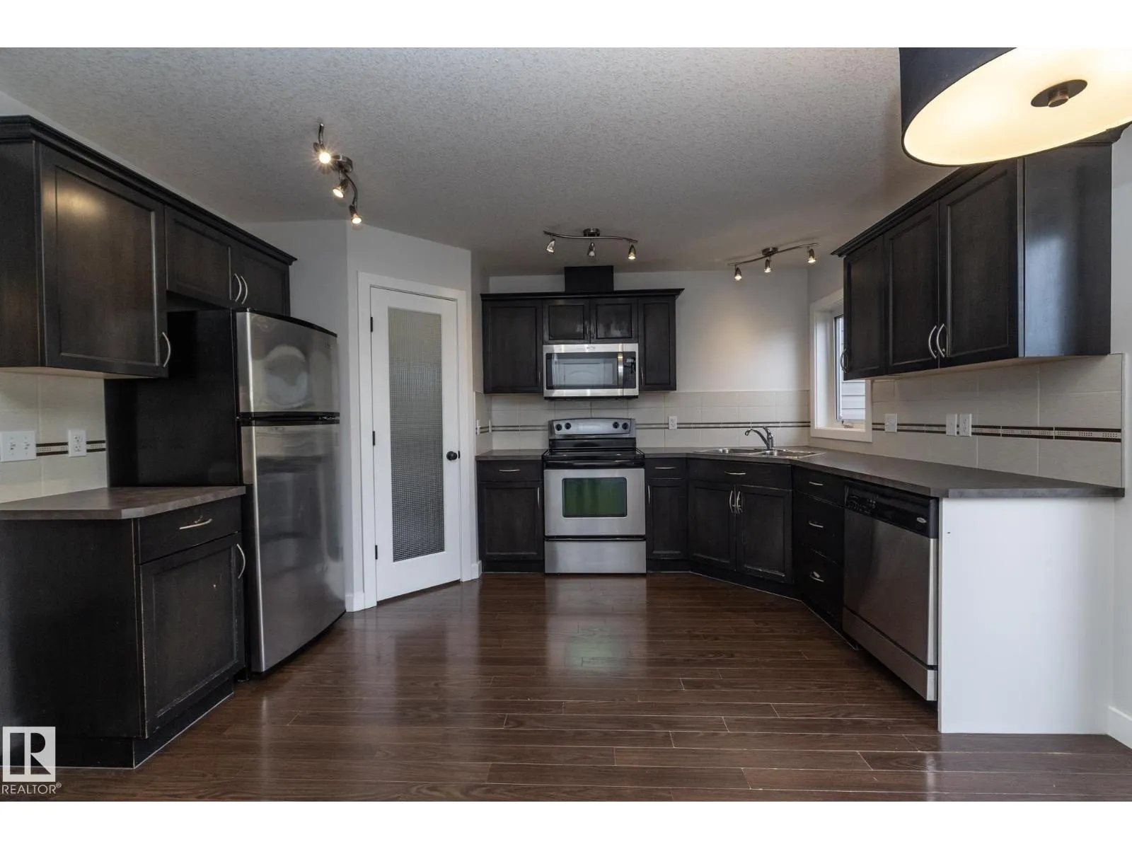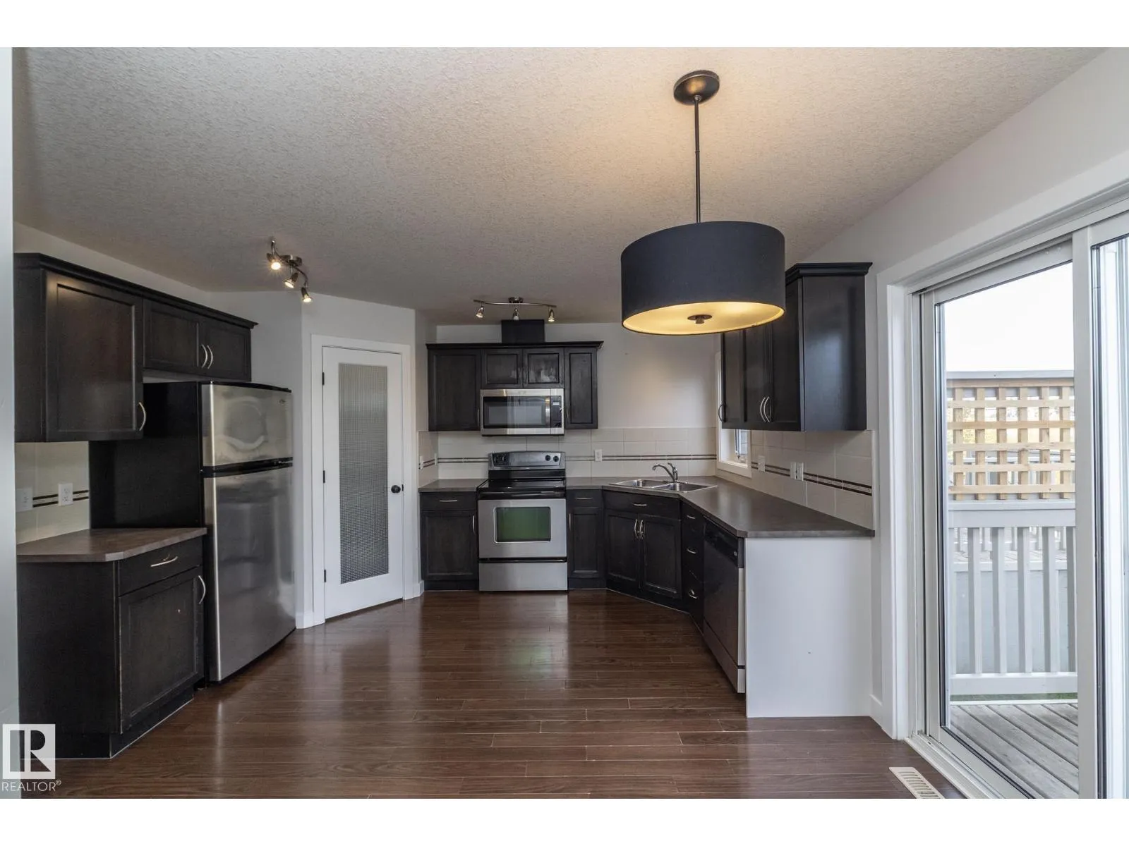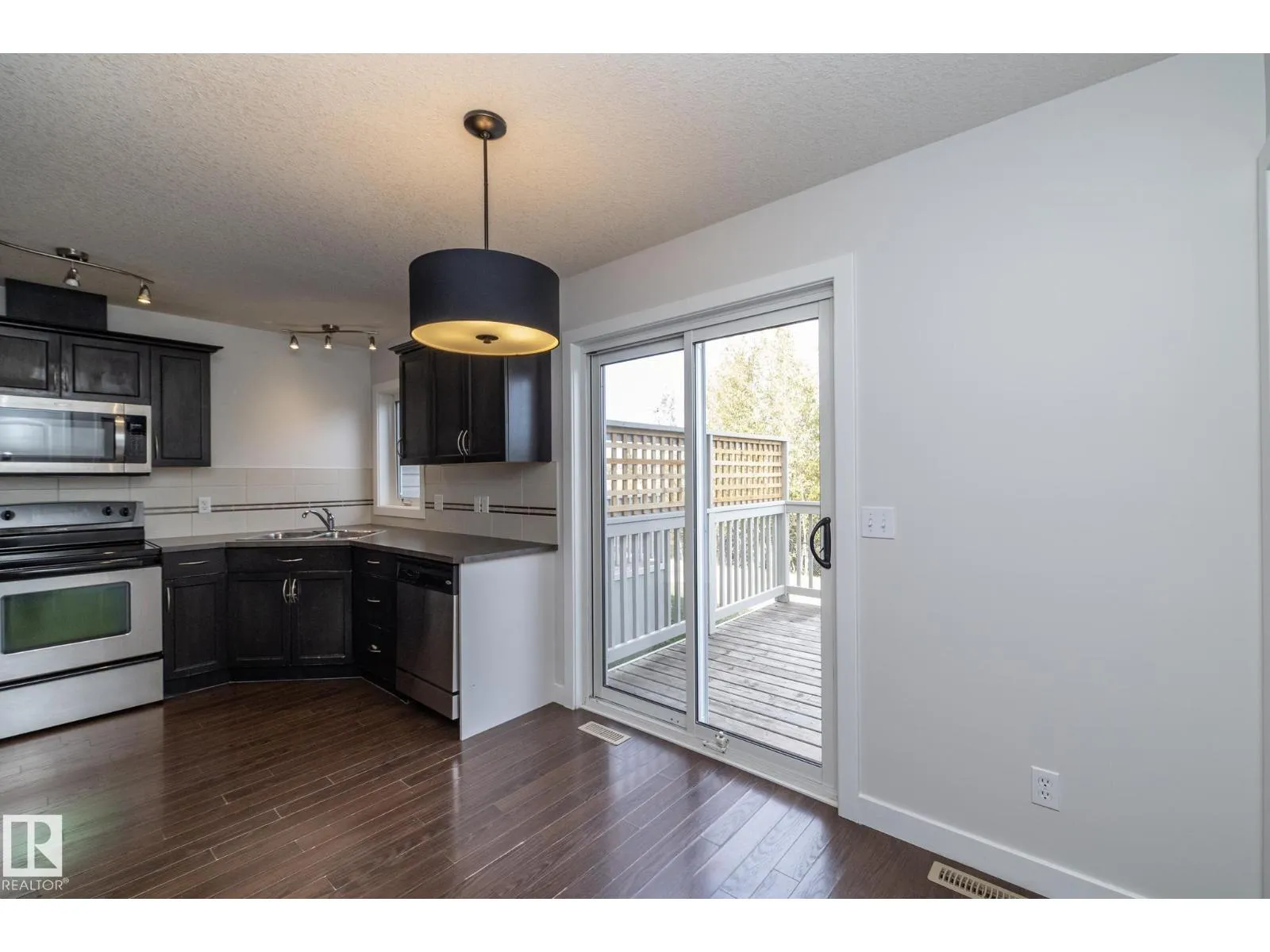 Backing the Ravine! This fully finished 2-storey offers nearly 1,800 sq. ft. of living space in a setting thatâs hard to beat. Step onto the deck & enjoy birdsong & rustling leaves as your daily backdrop. Inside, the main floor features an eat-in kitchen w/corner pantry, rich espresso cabinetry, & a bright living space w/south-facing windows that flood the home with natural light. Upstairs, the primary suite includes a walk-in closet, while two additional bedrooms & a full bath complete the level. The finished lower level adds a large family room w/a cozy gas fireplaceâperfect for winter evenings. Recent updates include fresh paint & new carpet throughout. With 2 energized parking stalls, ample visitor parking, & a quiet cul-de-sac location, this property combines comfort with practicality. Trails leading into Devonâs stunning river valley are just steps away, & commuting is simple with quick access to Leduc, EIA, Nisku, Acheson, & Edmonton. So what are you waiting for? Come take a peek and fall in love. (id:27476)