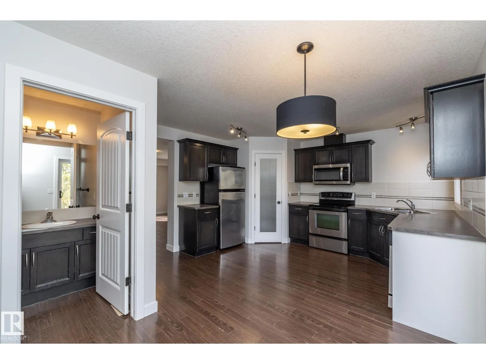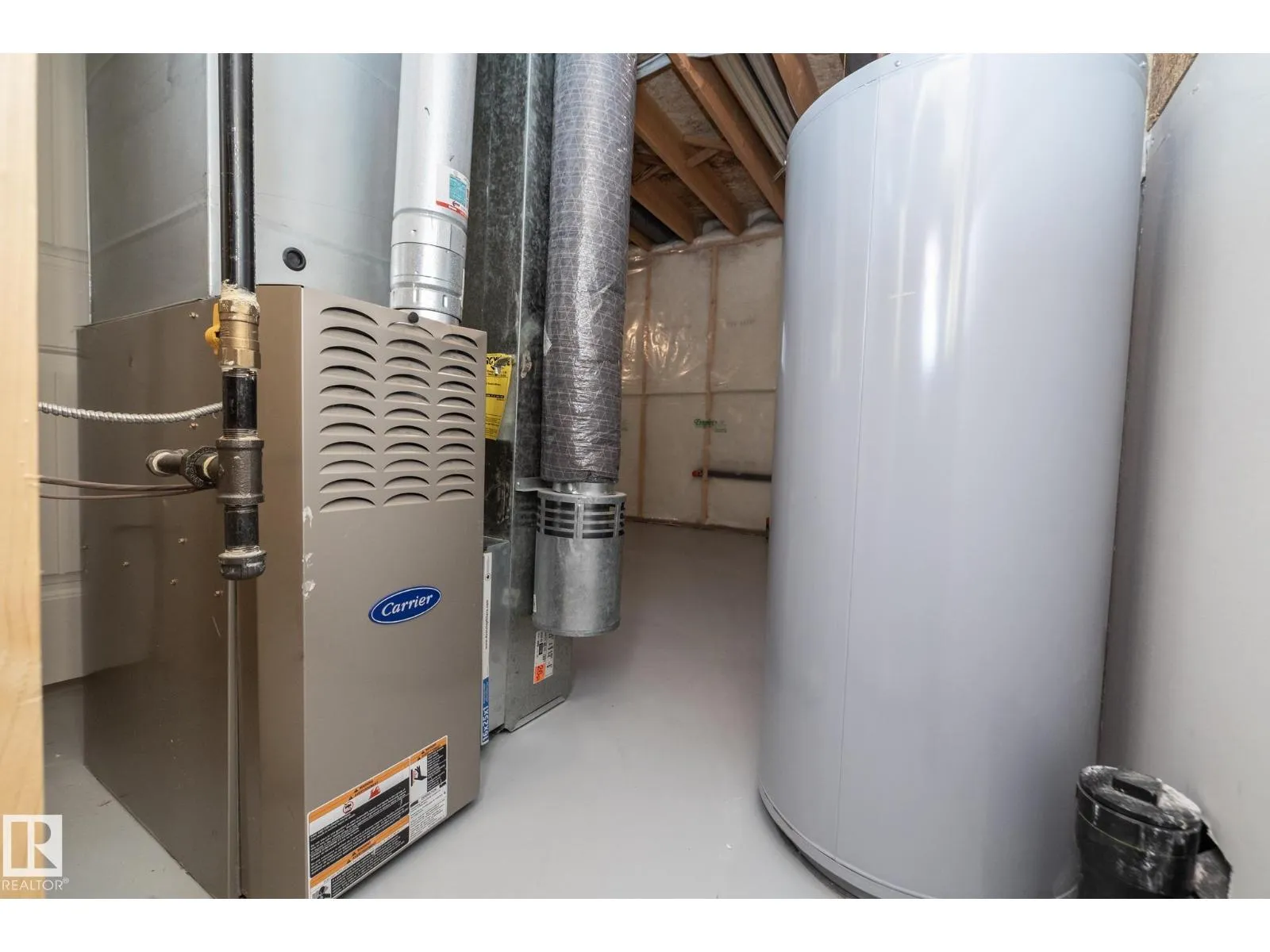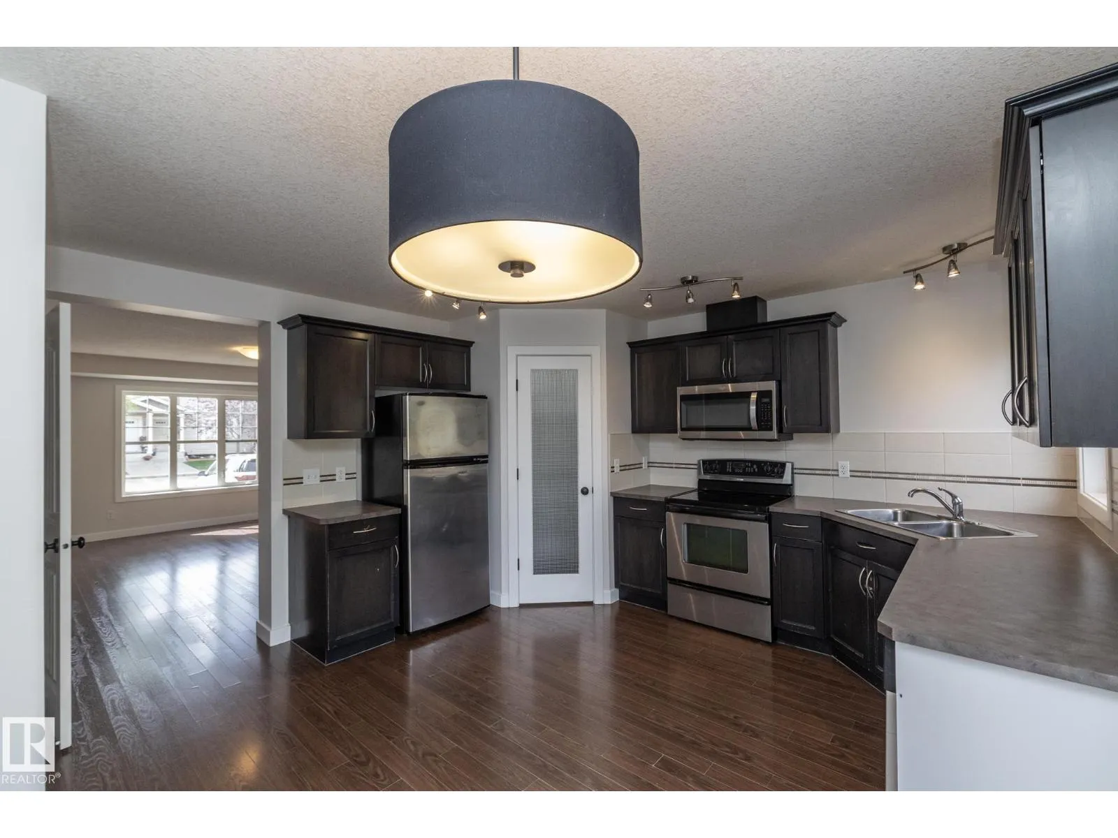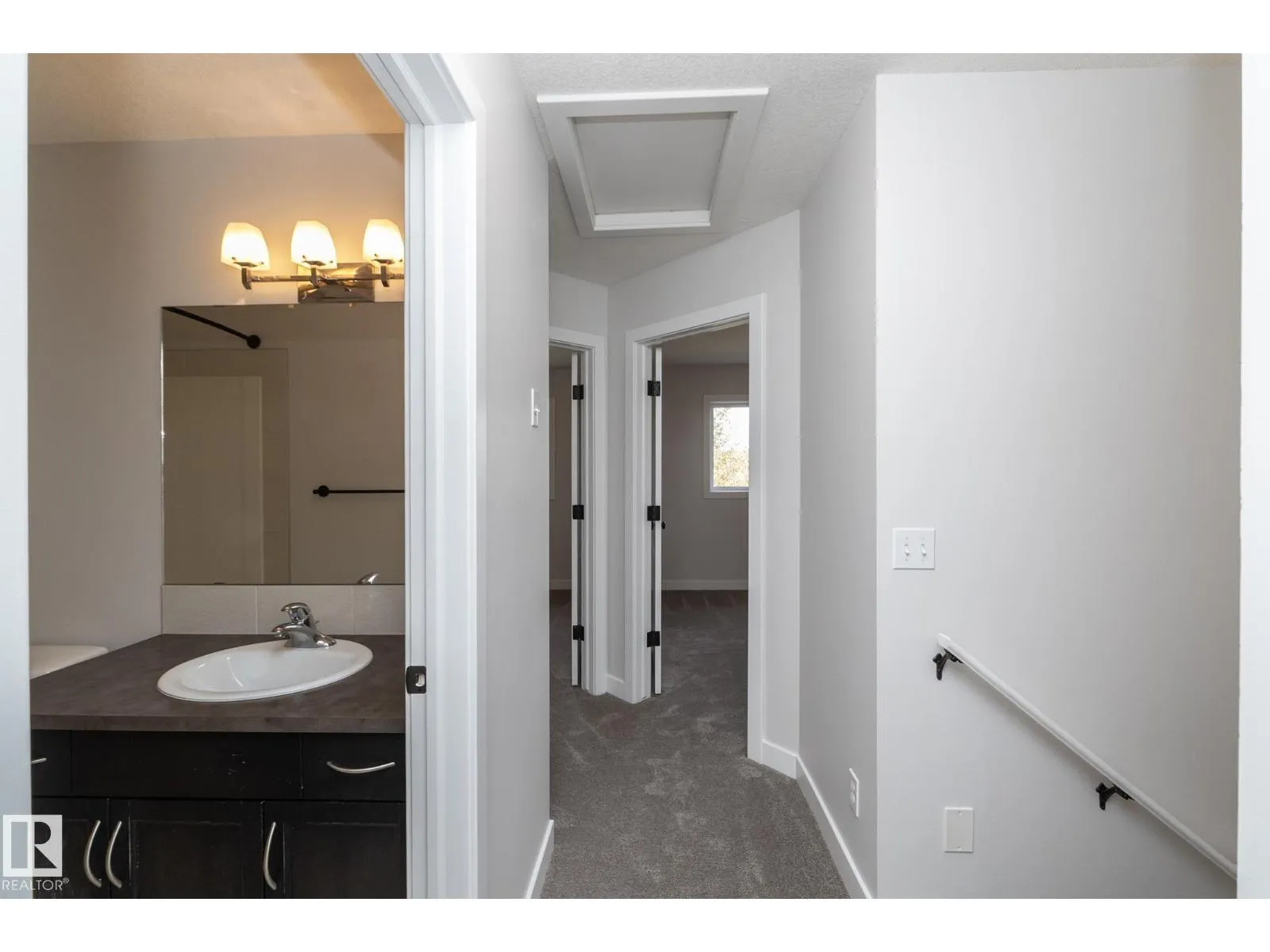 Backing the Ravine! This fully finished 2-storey offers nearly 1,800 sq. ft. of living space in a setting thatâs hard to beat. Step onto the deck & enjoy birdsong & rustling leaves as your daily backdrop. Inside, the main floor features an eat-in kitchen w/corner pantry, rich espresso cabinetry, & a bright living space w/south-facing windows that flood the home with natural light. Upstairs, the primary suite includes a walk-in closet, while two additional bedrooms & a full bath complete the level. The finished lower level adds a large family room w/a cozy gas fireplaceâperfect for winter evenings. Recent updates include fresh paint & new carpet throughout. With 2 energized parking stalls, ample visitor parking, & a quiet cul-de-sac location, this property combines comfort with practicality. Trails leading into Devonâs stunning river valley are just steps away, & commuting is simple with quick access to Leduc, EIA, Nisku, Acheson, & Edmonton. So what are you waiting for? Come take a peek and fall in love. (id:27476)