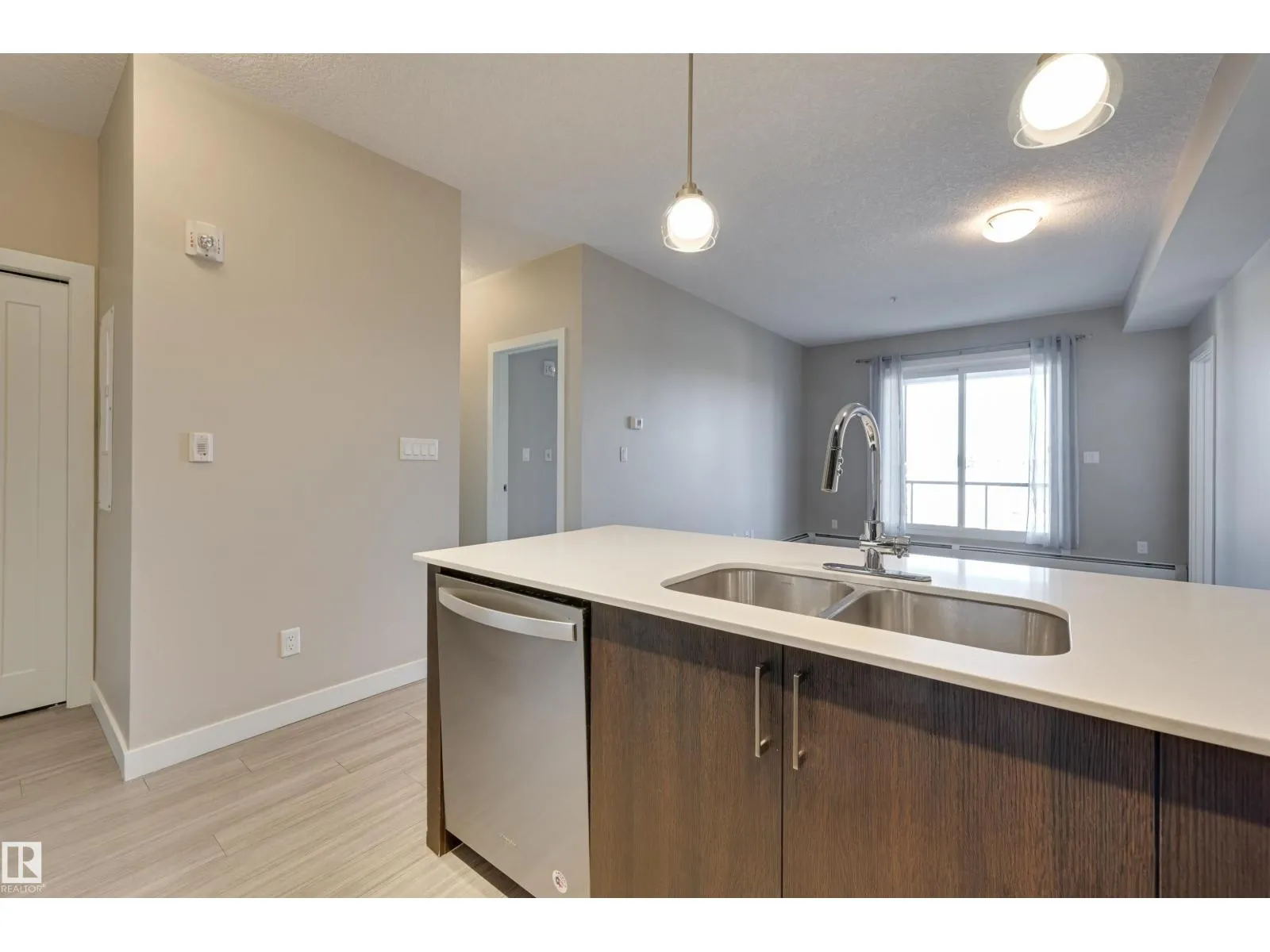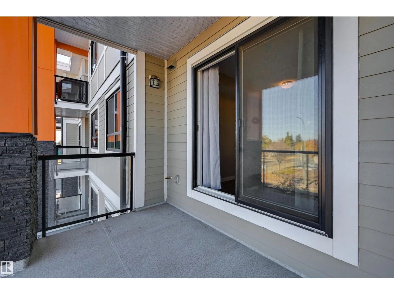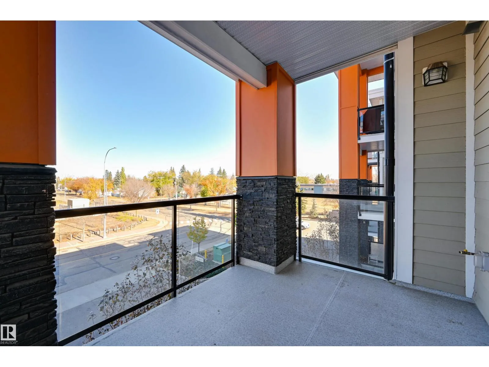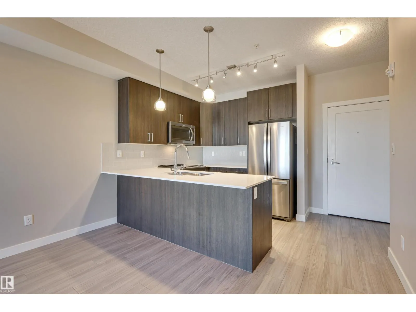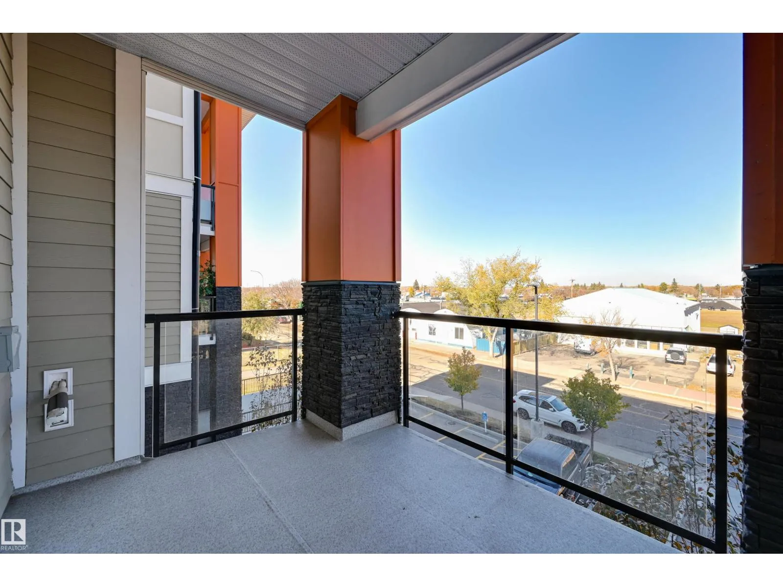 Welcome home to this spacious 708 sq.ft. modern 2 bedroom condo in THE RIDGE located in the heart of DEVON within walking distance to schools, parks, groceries, restaurants, outdoor pool, arena and river valley walking/biking trails. This unit has an open concept floor plan with 9' ceilings offering premium finishings throughout. The kitchen has an eating island, quartz countertops, espresso color cabinetry, with soft close and stainless steel appliances. The bedrooms are at opposite ends of the living area. The spacious north facing deck has a gas BBQ outlet. Vinyl plank flooring throughout except for tile in the bathroom. Roughed in for A/C. Included is the fridge, glass top stove, microwave hood fan, dishwasher, INSUITE WASHER AND DRYER and TITLED UNDERGROUND PARKING Unit 44 (Actual #12) with a storage cage. Shows very well! A great place to call home! (id:27476)