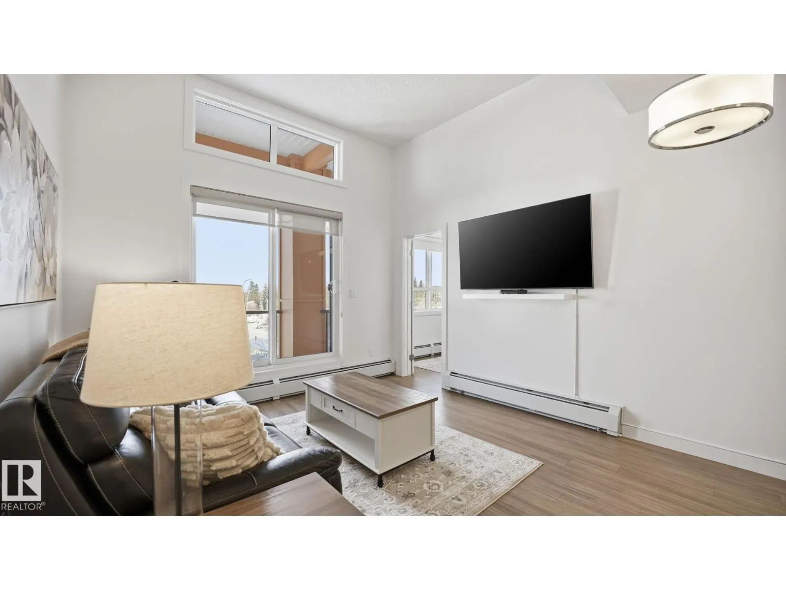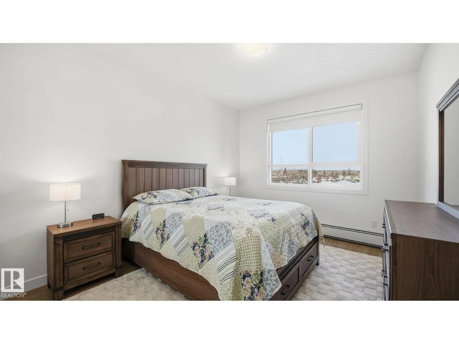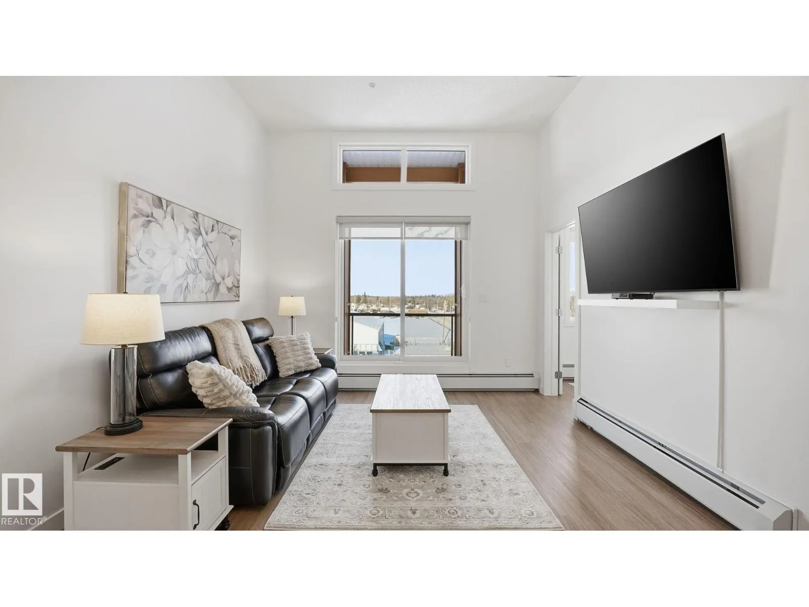 Welcome to The Ridge! Fantastic views in a highly central location this IMMACULATE, freshly painted TOP-FLOOR 2 bedroom/1 bathroom condo blends comfort w/modern elegance in the heart of Devonâsteps from schools, parks, shops, restaurants, outdoor pool, arena, & Devon's scenic river valley trail system. Light & bright, this unit offers an open-concept layout complete w/9' ceilings & 12' vaulted sections, vinyl plank flooring, quartz countertops, featuring a crisp light toned kitchen w/tile backsplash, all appliances & peninsula w/eating bar. 4 pce bathroom conveniently located directly off primary suite. In-suite laundry room w/stackable washer/dryer & plenty of extra storage space. Enjoy a spacious north-facing covered balcony w/N.Gas BBQ hookup. Unit is roughed-in for A/C, includes heat/water & comes w/TITLED underground parking stall #10 complete w/secure storage cage. Truly a RARE find! Don't miss your opportunity to view this beautiful home! (id:27476)