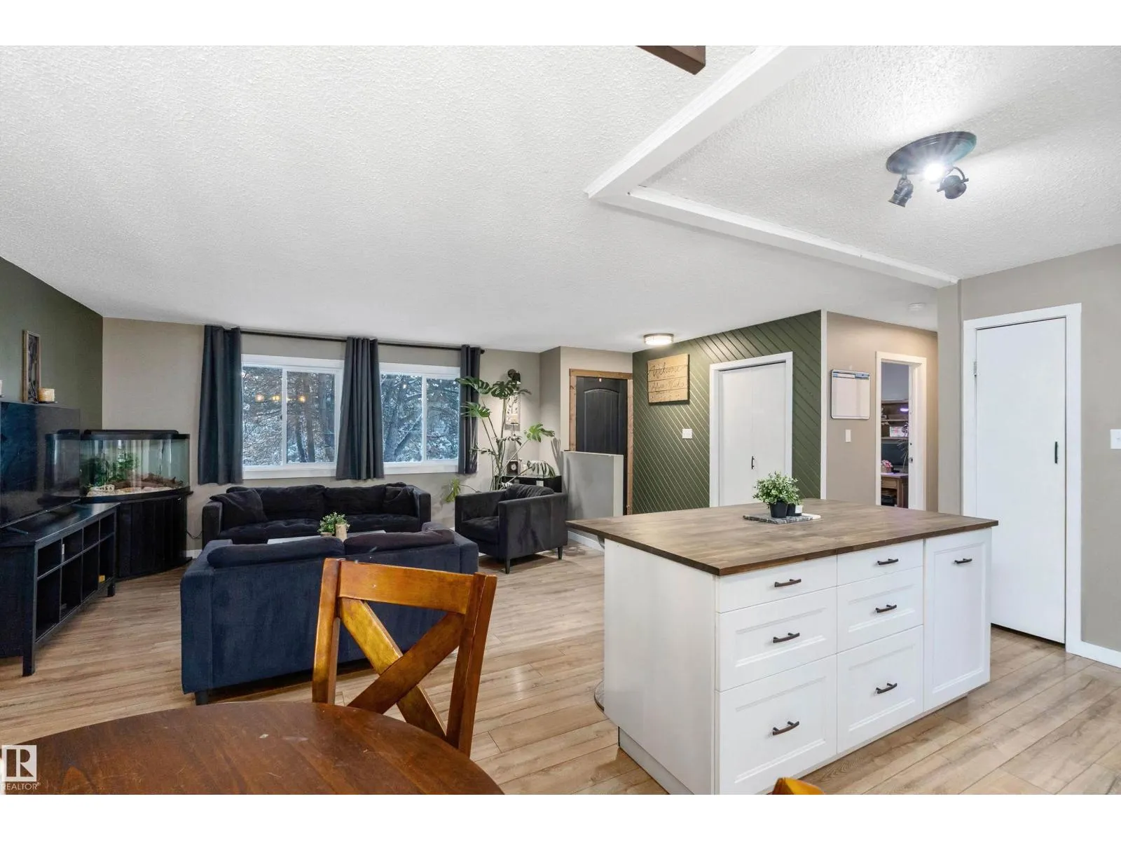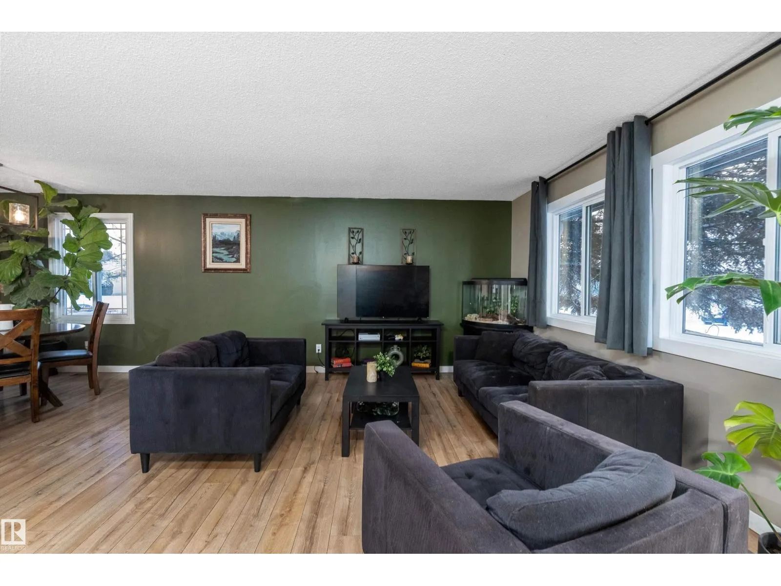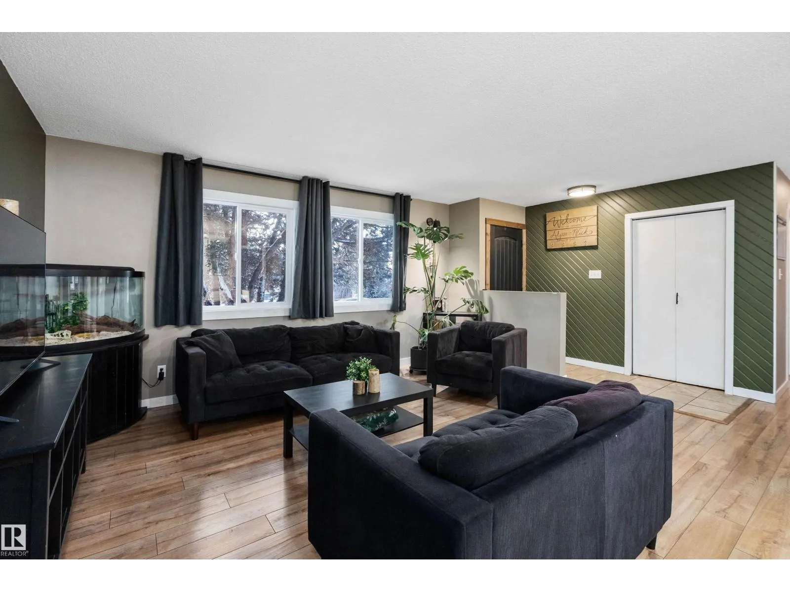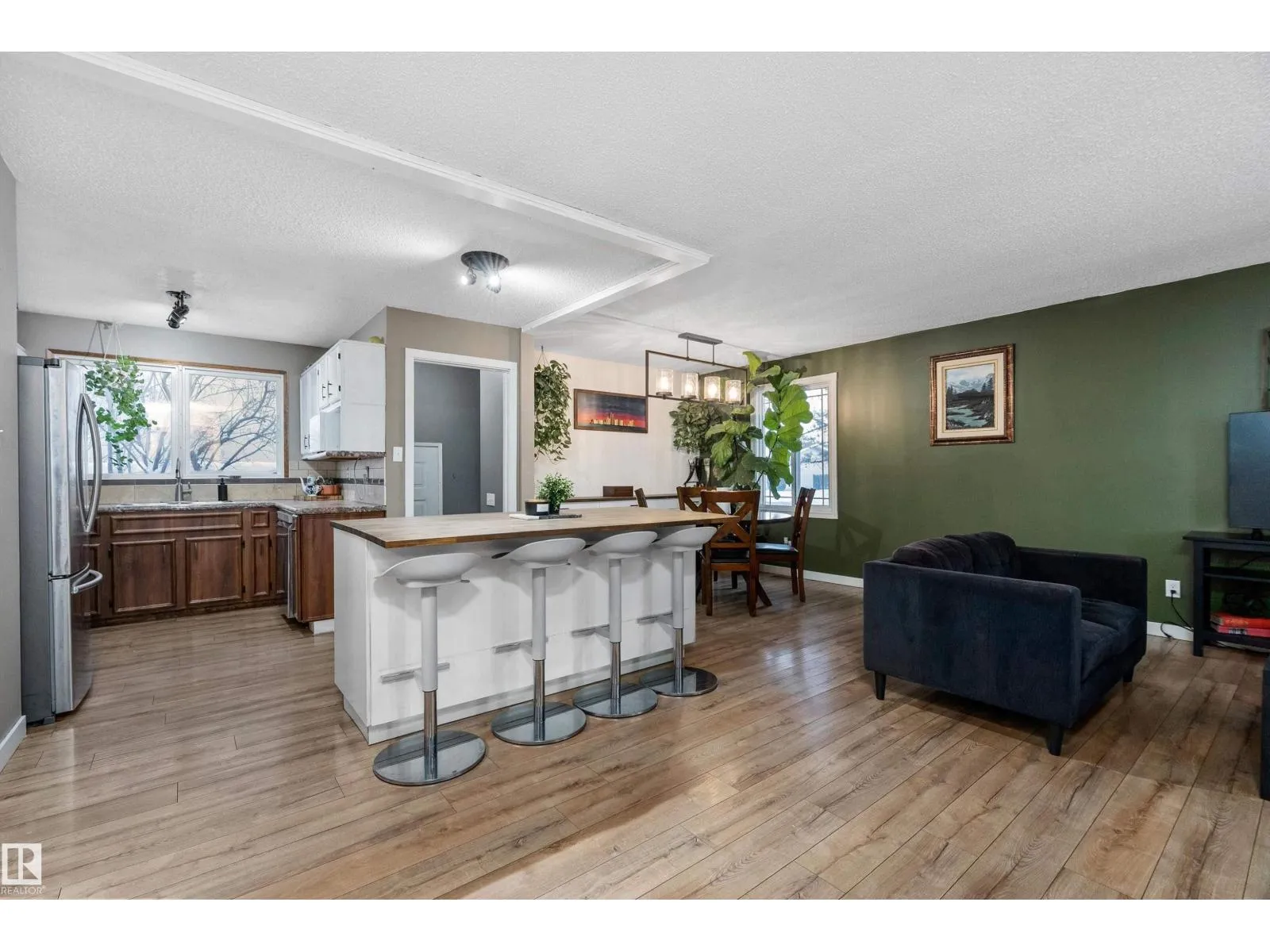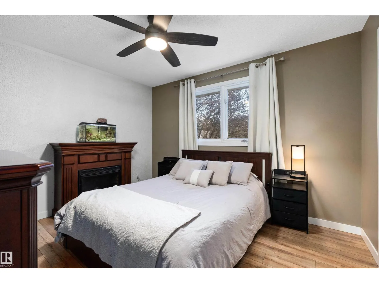 Nestled on a quiet, family-friendly street in the heart of Devon, this charming 1,078 sq. ft. bungalow is surrounded by tall, mature trees and sits proudly on a large corner lot. The open-concept main floor is bright and welcoming, featuring fresh paint, a stylish two-tone kitchen with stainless steel appliances, a large prep island, and a dining area with added storage and counter spaceâperfect for everyday living and entertaining. Three bedrooms are located upstairs, including a primary suite with a walk-in closet and direct access to the beautifully renovated 4-piece bath. The fully finished basement adds even more living space with a spacious rec room, fourth bedroom, and renovated 3-piece bathroom. Outside, enjoy a generous backyard with plenty of room for play sets and swings. An insulated, oversized double detached garage with new opener and tracks completes the package. Extras include new front windows, high-efficiency furnace, tankless hot water system, and new front vertical siding. (id:27476)