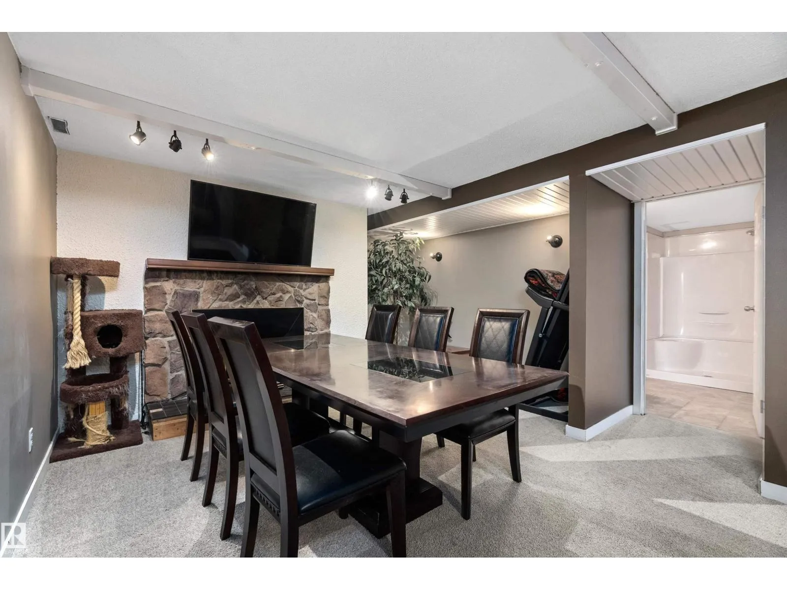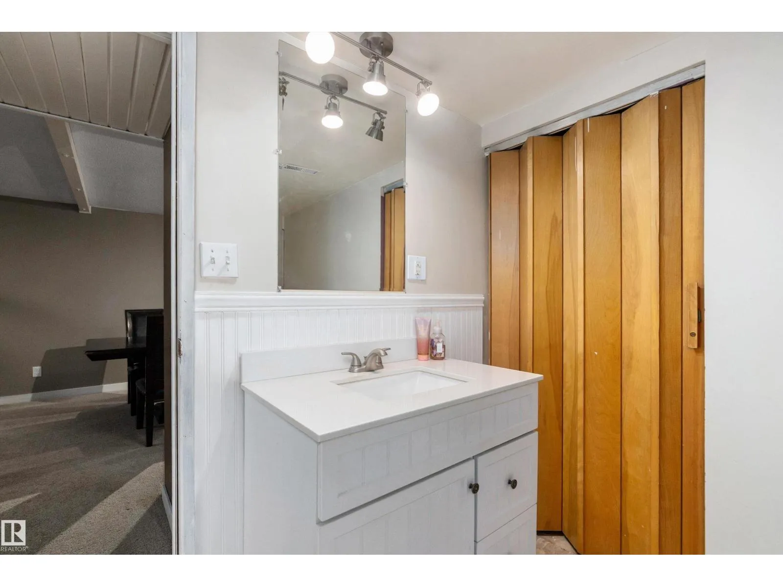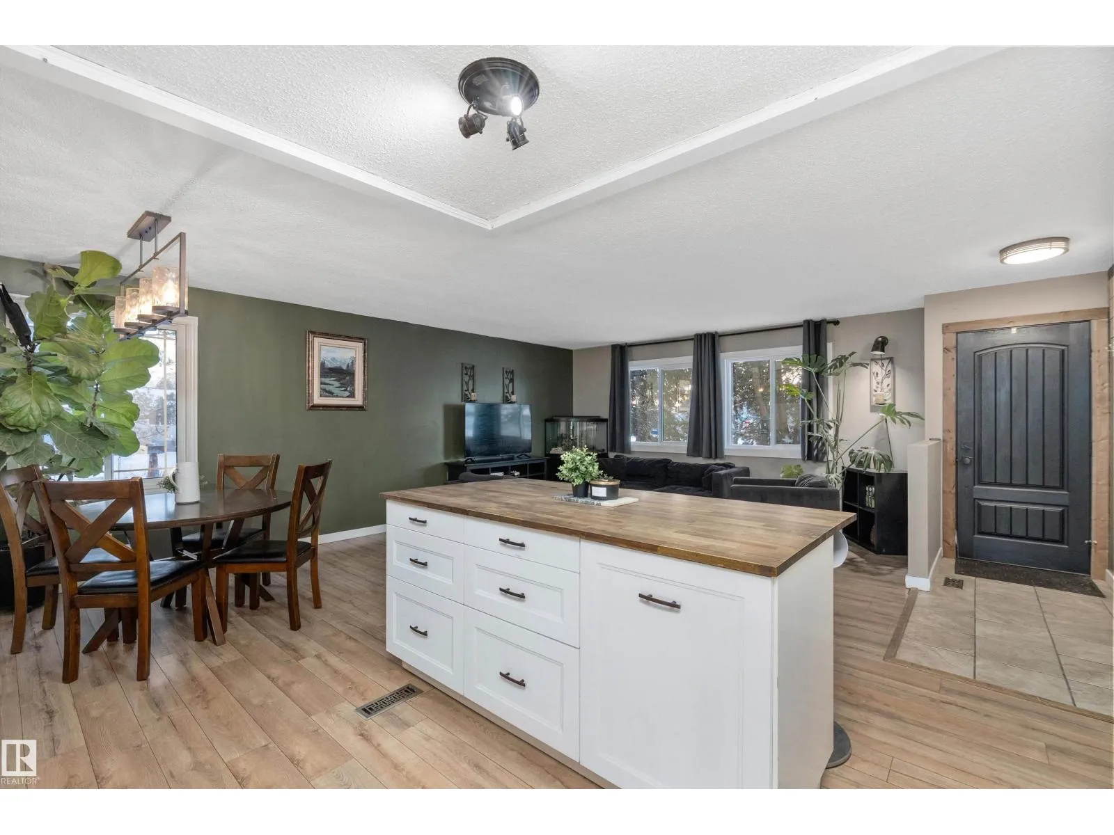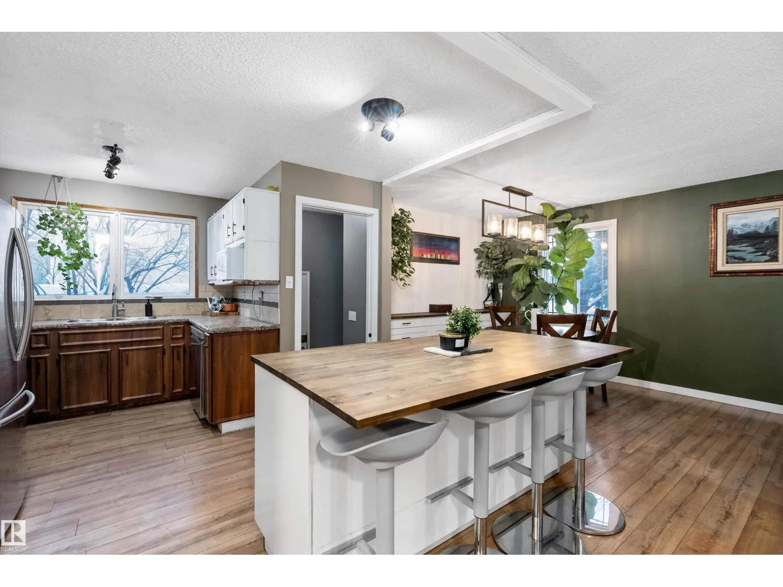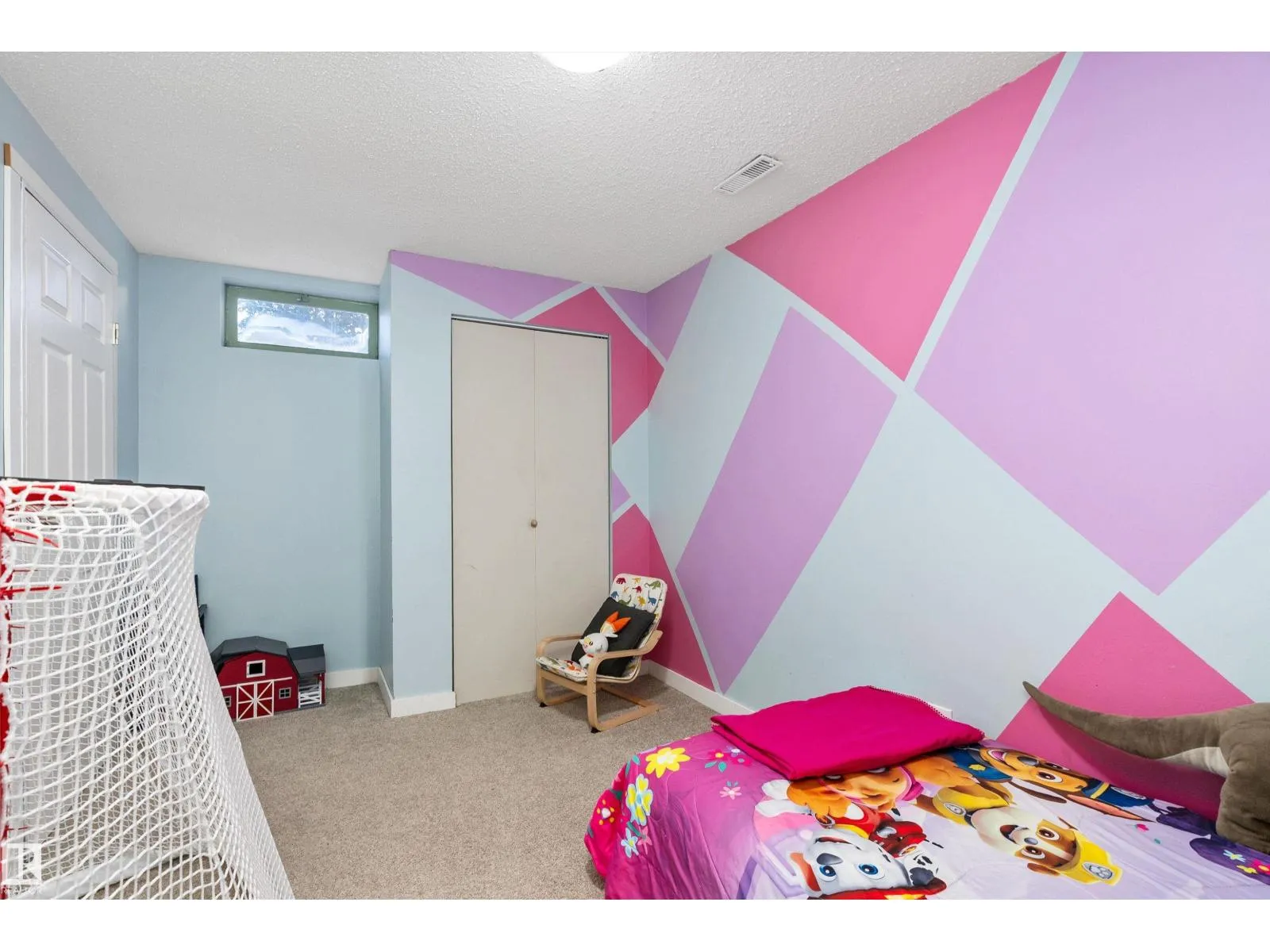 Nestled on a quiet, family-friendly street in the heart of Devon, this charming 1,078 sq. ft. bungalow is surrounded by tall, mature trees and sits proudly on a large corner lot. The open-concept main floor is bright and welcoming, featuring fresh paint, a stylish two-tone kitchen with stainless steel appliances, a large prep island, and a dining area with added storage and counter spaceâperfect for everyday living and entertaining. Three bedrooms are located upstairs, including a primary suite with a walk-in closet and direct access to the beautifully renovated 4-piece bath. The fully finished basement adds even more living space with a spacious rec room, fourth bedroom, and renovated 3-piece bathroom. Outside, enjoy a generous backyard with plenty of room for play sets and swings. An insulated, oversized double detached garage with new opener and tracks completes the package. Extras include new front windows, high-efficiency furnace, tankless hot water system, and new front vertical siding. (id:27476)