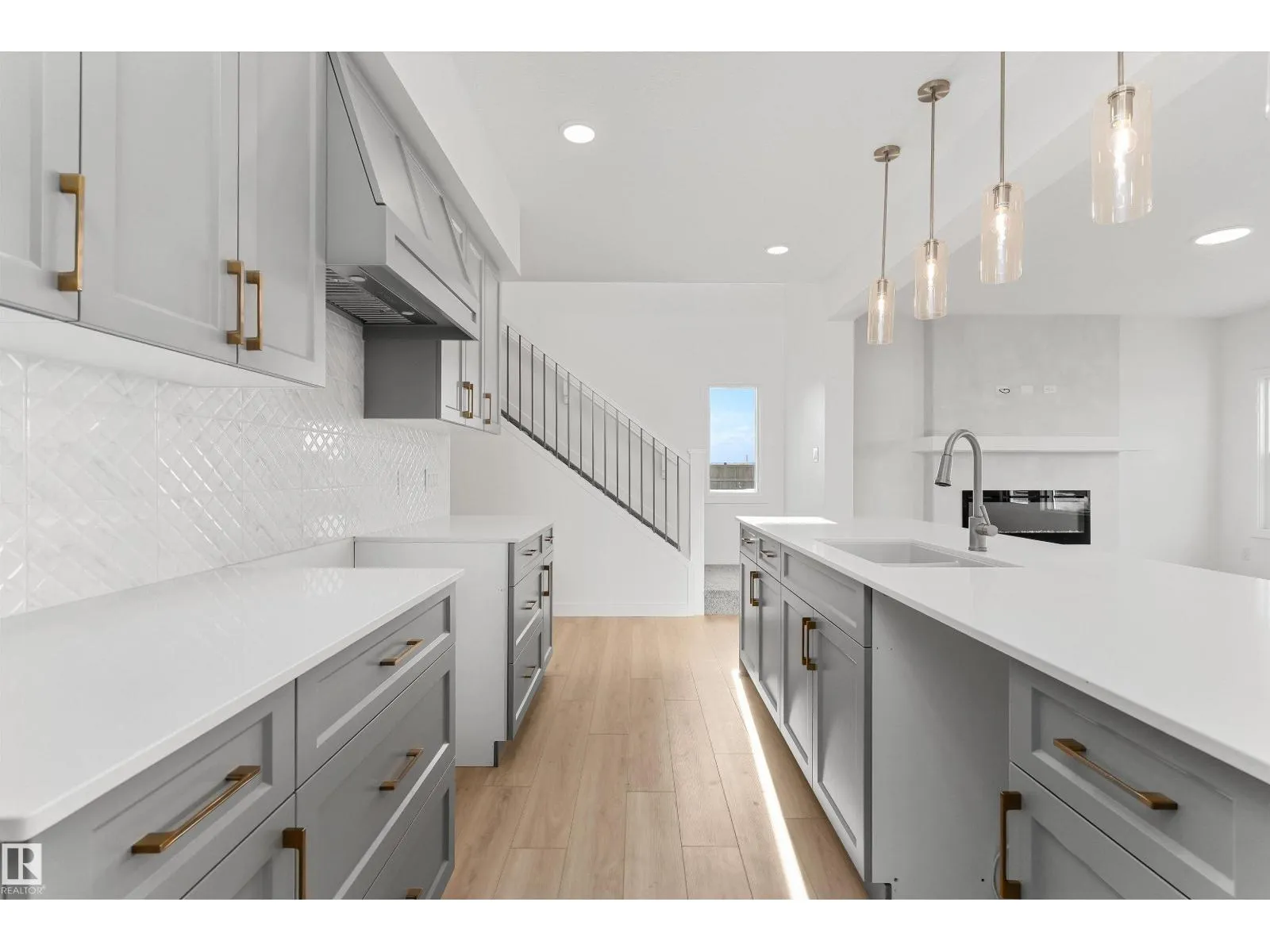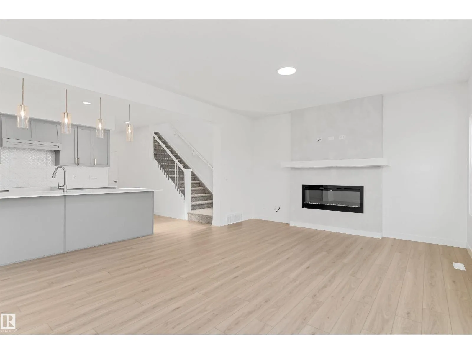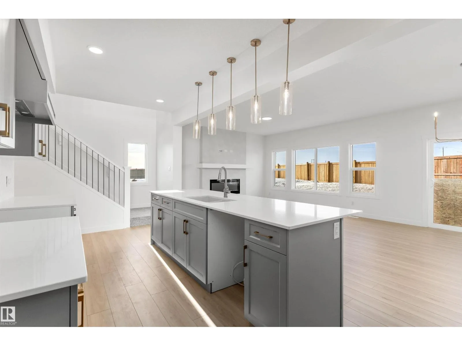 Built by Sterling Homes, the Charleston offers 2,289 sq. ft. of trendy, efficient living with 9â ceilings and Luxury Vinyl Plank flooring. The main floor is an entertainerâs dream, featuring a massive kitchen with a butlerâs pantry, bar sink, and champagne bronze accents. The open-concept living area is anchored by a custom plaster-finished fireplace with a wrap-around mantle, while large windows and sliding patio doors offer panoramic backyard views. The upper floor is designed for convenience, highlighted by a primary suite with a 5-piece fully tiled ensuite and a walk-in closet that connects directly to the laundry room. A central bonus room leads to two additional bedroomsâeach with its own walk-in closetâand a main bath with double sinks. Complete with a double attached garage, separate side entrance, and basement rough-ins, this home balances high-end custom finishes with smart, family-oriented functionality. (id:27476)