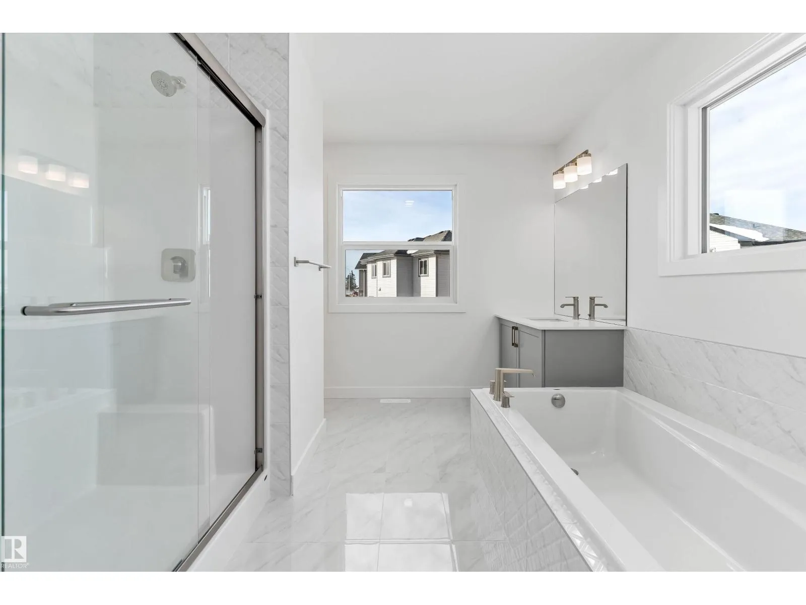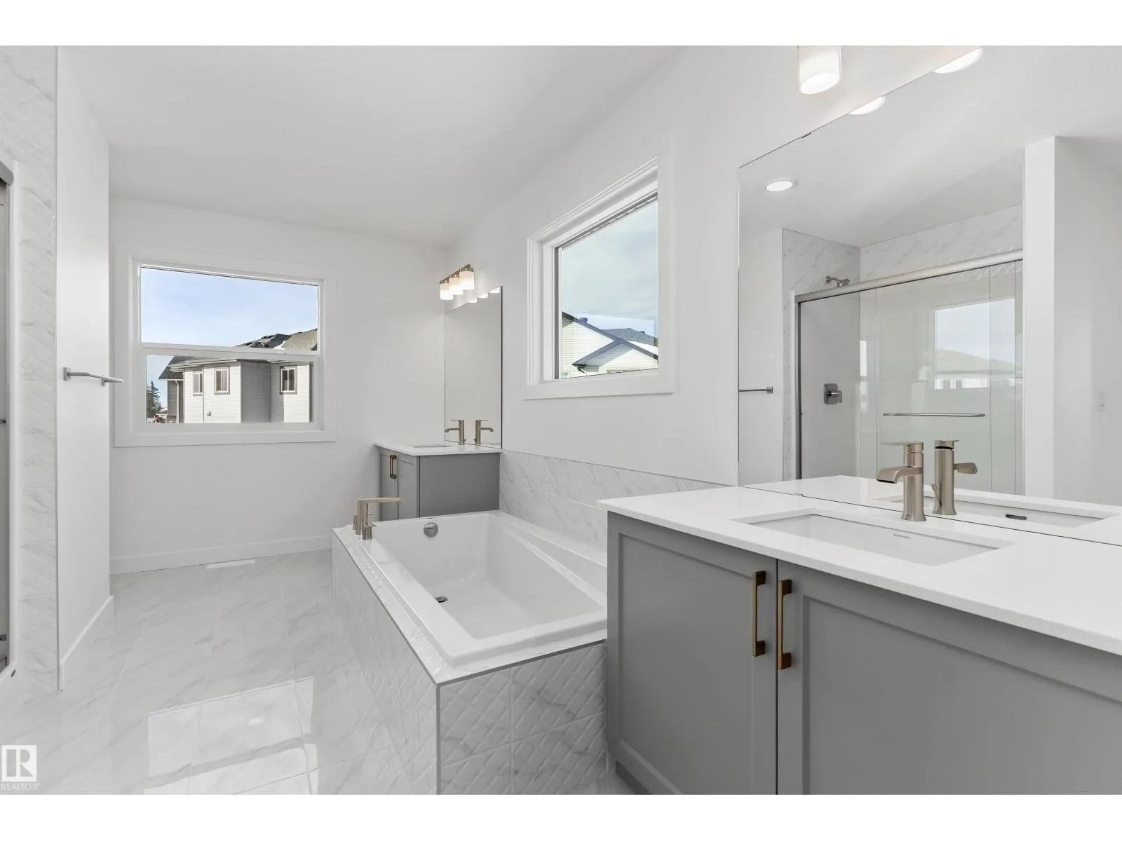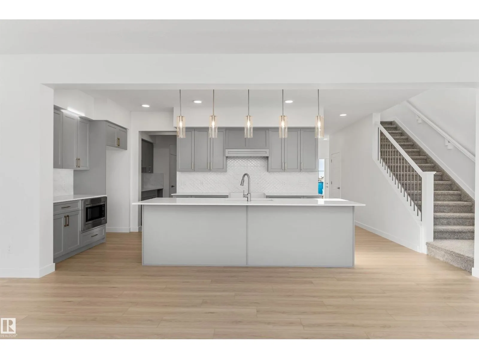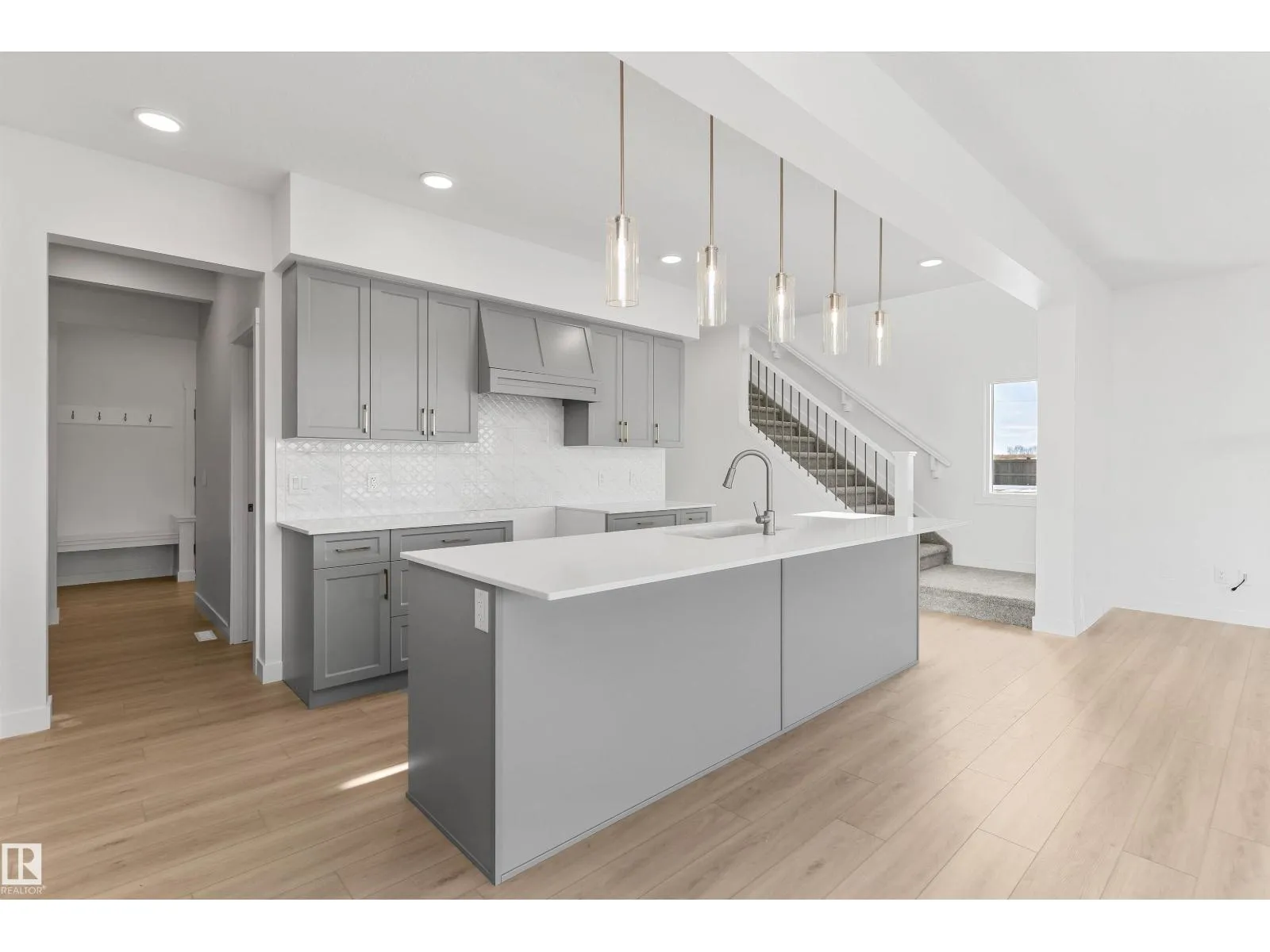 Built by Sterling Homes, the Charleston offers 2,289 sq. ft. of trendy, efficient living with 9â ceilings and Luxury Vinyl Plank flooring. The main floor is an entertainerâs dream, featuring a massive kitchen with a butlerâs pantry, bar sink, and champagne bronze accents. The open-concept living area is anchored by a custom plaster-finished fireplace with a wrap-around mantle, while large windows and sliding patio doors offer panoramic backyard views. The upper floor is designed for convenience, highlighted by a primary suite with a 5-piece fully tiled ensuite and a walk-in closet that connects directly to the laundry room. A central bonus room leads to two additional bedroomsâeach with its own walk-in closetâand a main bath with double sinks. Complete with a double attached garage, separate side entrance, and basement rough-ins, this home balances high-end custom finishes with smart, family-oriented functionality. (id:27476)