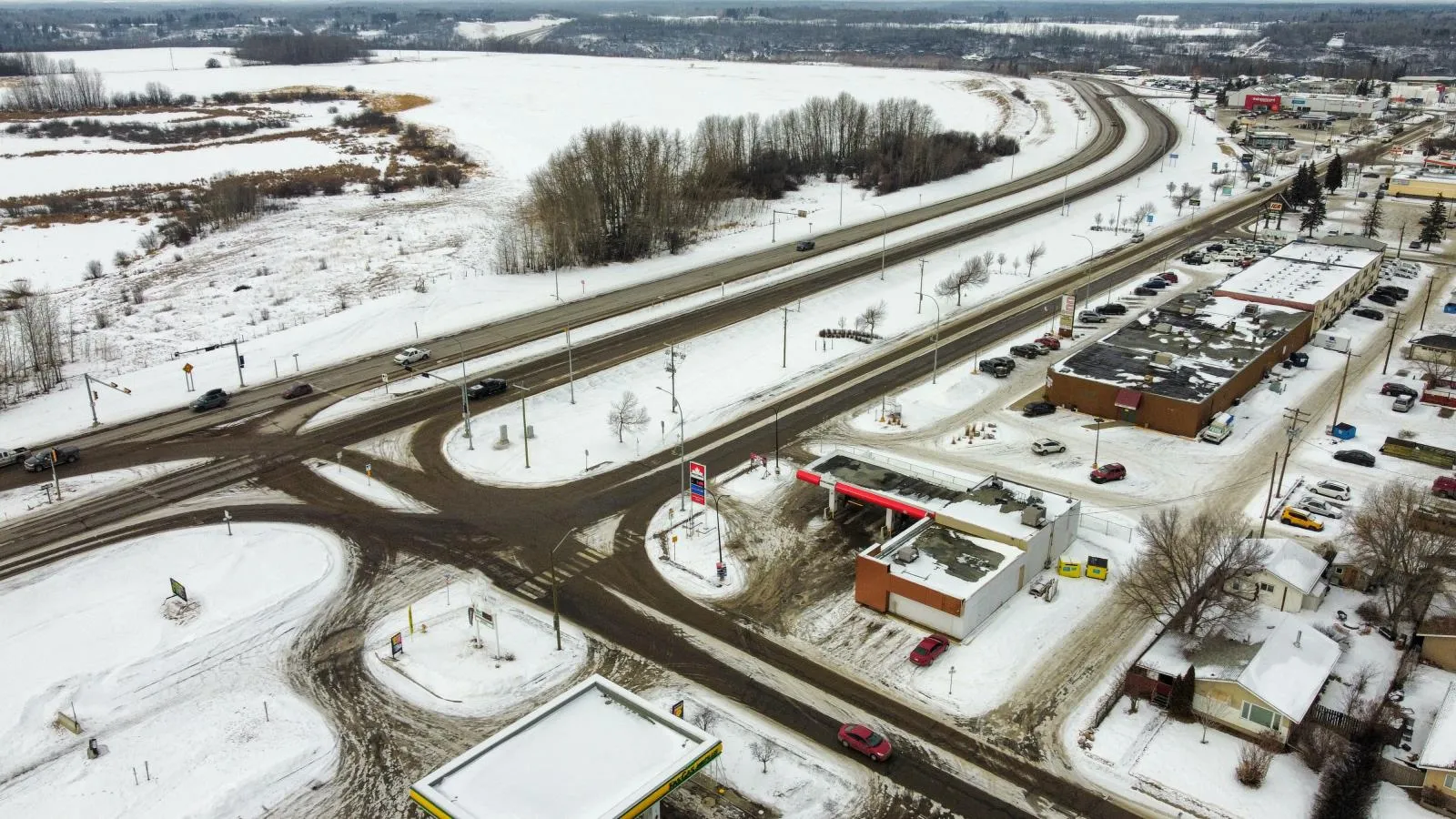 The Property consists of a 2,900 square foot convenience store with an additional 1,893 square foot fuel canopy, situated on a 0.34-acre site. Zoned C3 âCommercial Corridorâ, the Property benefits from strong visibility from Highway 60 and accessibility within Devonâs primary commercial node. Tenanted by DP Oil OP Ltd. o/a Petro-Canada, the fuel banner provides national brand recognition and consistent customer traffic. Strategically positioned along Highway 60, within Devonâs established retail corridor, the Property is surrounded by complementary commercial uses and benefits from steady local traffic and residential density in the immediate trade area. The site configuration supports efficient vehicular circulation and strong street presence, making it a key service-oriented destination within the community. (id:27476)