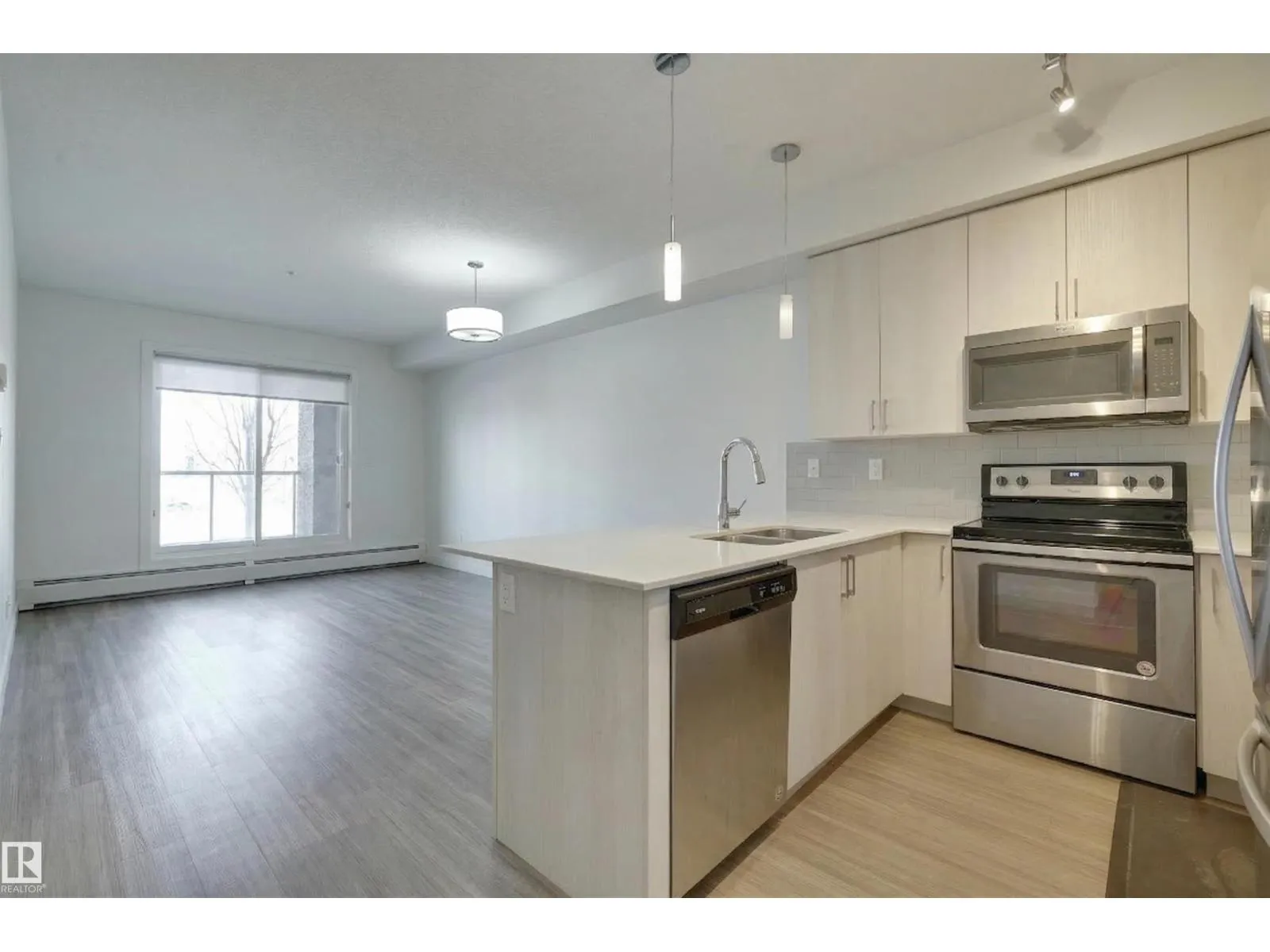 Welcome home to this 1 bedroom condo in THE RIDGE in the heart of DEVON conveniently located within walking distance to schools, parks, groceries, restaurants, outdoor pool, arena and the river valley walking/biking trails. This modern open concept floor plan offers premium finishing throughout with 9' ceilings. The kitchen has light color cabinetry with soft close, quartz countertops and stainless steel appliances. North facing deck with a gas BBQ outlet. Vinyl plank flooring throughout except for tile in the bathroom. Roughed in for A/C. Included is the fridge, glass top stove, built-in microwave, dishwasher, INSUITE WASHER AND DRYER and TITLED UNDERGROUND PARKING Unit 47 (Actual stall #15) with a storage locker. A great place to call home! (id:27476)