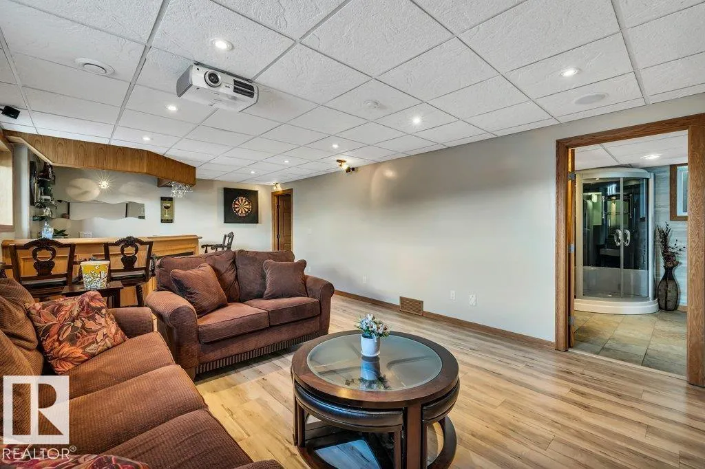 Welcome to this beautiful 1257 sq ft bi-level with an above-garage primary space! Vaulted ceilings and an open-concept design create a bright, spacious main floor. The inviting living room with fireplace flows seamlessly into the kitchen and dining area, perfect for everyday living and entertaining, with direct access to the rear deck for BBQs, soaking in the hot tub or morning coffee. A convenient laundry area is just off the garage entry. Main floor is complete with a bedroom and full 4-pce bath. Upstairs, the private primary retreat offers generous closet space and a 4-pce ensuite. The fully finished basement is light-filled and functional, featuring a rec room with wet bar, an additional bedroom, 3-pce bath w/ steam shower & heated floor as well as excellent, innovative storage. Outside, enjoy an oversized lot with RV parking and still more room for guest parking. Full access gate to workshop shed w/ power in addition to a tiered deck, gazebo, hot tub, patio âan exceptional property ready to impress. (id:27476)