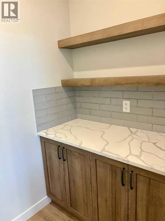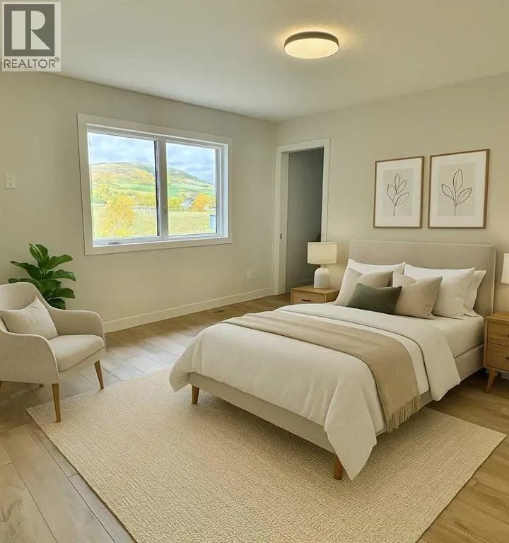 Welcome to a stunning and stylish Woodmaster Homes built bungalow on an amazing lot with a large TRIPLE attached garage and views of the foothills and trees. This well thought out plan features Luxury Vinyl Plank flooring through out, and a large kitchen with a spacious island, eating bar and pantry. You will LOVE the bright sunshine that comes through the floor to ceiling triple paned windows that look out over your private west facing backyard and a wonderful large vinyl rear deck which is complete with a gas line. This open concept floorplan has vaulted ceilings and has been designed with plenty of space for dining and entertaining. The living room is bright and inviting and includes a fireplace for ambiance and warmth. The primary bedroom is large and bright with a great walk in closet and 4 piece ensuite. A large second bedroom and a spacious laundry room complete the main floor. Downstairs you will find large bright windows and roughed in pluming for future development, there is also a separate entrance into the basement from the garage. This opens up endless opportunities for working from home or applying for a home based business. Other significant upgrades include Hardie Board Siding, an insulated and drywalled garage, and the front landscaping completed. This home will come with New Home Warranty. The builder can also finish the basement if a buyer would like so please ask about this opportunity. (id:27476)
