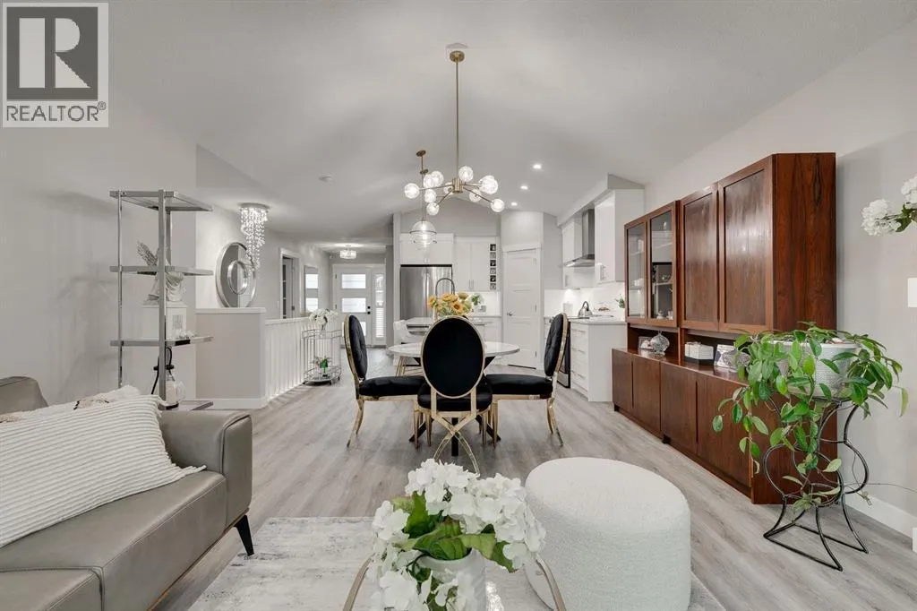 TURN-KEY LUXURY BUNGALOW | ONE-LEVEL LIVING. Welcome to this meticulously crafted 2-bed, 2-bath, move-in-ready bungalow in one of Diamond Valleyâs most sought-after communities, just 30 minutes from Calgary. Perfect for retirees, downsizers, or professionals seeking luxury, small-town charm, and convenience.Inside, enjoy vaulted ceilings, sun-filled open spaces, and durable luxury vinyl flooring throughout. The gourmet kitchen features quartz countertops, a large island, walk-in pantry, and upgraded lighting â perfect for entertaining family and friends.Relax in the living area with electric fireplace, or retreat to the primary suite with spa-inspired ensuite and full-tile walk-in shower. A second bedroom and full bathroom offer flexible space for guests or a home office.Every detail blends practicality with luxury & comfort: main-floor laundry with sink off the garage, California Closets, Hunter Douglas blinds, and a spacious covered front porch with low-maintenance composite decking and upgraded vinyl siding. Triple-pane windows enhance energy efficiency, keeping the home comfortable year-round while lowering utility costs.The extra-large garage is drywalled, insulated, and features high ceilings for larger vehicles or added storage. The unfinished basement offers large windows, roughed-in plumbing, and tucked-away mechanicals, expanding the homeâs total living space to 2,200 sq. ft.Outside, enjoy a private back deck with barbecue hookup, stroll the 7 km creekside walking trail with scenic mountain views. Close to nearby hospital, golf course, and local markets.Rarely available and move-in ready â luxury, comfort, and lifestyle await at Riverwood Estates. Book your private showing today! (id:27476)