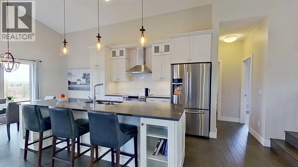 This 1,656 sq. ft., 4-bedroom, 3-bathroom home in Riverwood Estates backs onto a walking path and greenspace with forest views. Originally built as a Ryan Bros. show home, it features Hardie Board siding, hardwood flooring, 9' ceilings throughout (including the finished basement for a total of approximately 2,680 sq. ft. of finished space), and 13'6" vaulted ceilings on the main floor. Large windows provide abundant natural light. The kitchen includes a large island, quartz countertops, white subway tile backsplash, and stainless steel appliances. The living room features a modern gas fireplace. The primary bedroom includes an ensuite and walk-in closet. The finished basement offers an open layout with a wet bar, wine cooler, bedroom, and laundry room. The heated garage includes a natural gas heater, 60-amp subpanel with 220V outlets (permitted), and overhead lighting. An immaculate house in a quiet neighbourhood. (id:27476)