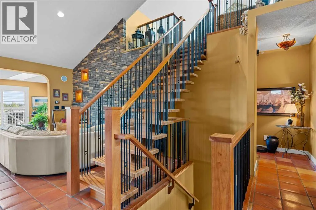 Donât miss this incredible opportunity to own this lovely, one-of-a-kind bungalow with an added cozy loft modeled after a Tuscan villa in Riverwood Estates. On the market for the very first time, this property is a true gem in the community. Boasting over 3,300 sq ft (+/-) of living space, the main floor features an open concept design with a large sunroom overlooking Gray Park, and a stunning living room and kitchen with vaulted ceilings, gas range and two (2) ovens in the gourmet kitchenâperfect for hosting dinners with your large family. Also on the main floor, youâll find a spacious primary bedroom with a beautiful 5-piece ensuite with a steam shower, complete with his and her closets and a cozy fireplace, plus a second room ideal for a nursery or home office. Upstairs offers a large loft, perfectly suited as a bonus room or extra living space, complete with ample storage for all those âonce in a whileâ items. The fully finished basement provides three additional bedrooms, a 4-piece bathroom, and a large rec room with a built-in bar and wood-burning fireplace. Throughout the home, youâll also benefit from a whole-house water softener, and state of the art water filtration system adding to the comfort and care of daily living. Outside, the property is fully landscaped with a beautiful garden and a two-tiered deck backing directly onto the pristine Gray Park Natural Area. This home is a rare find in Diamond Valleyâtruly unique in its offeringsâand must be seen in person to fully appreciate its tranquility. Book your appointment today before itâs SOLD! (id:27476)