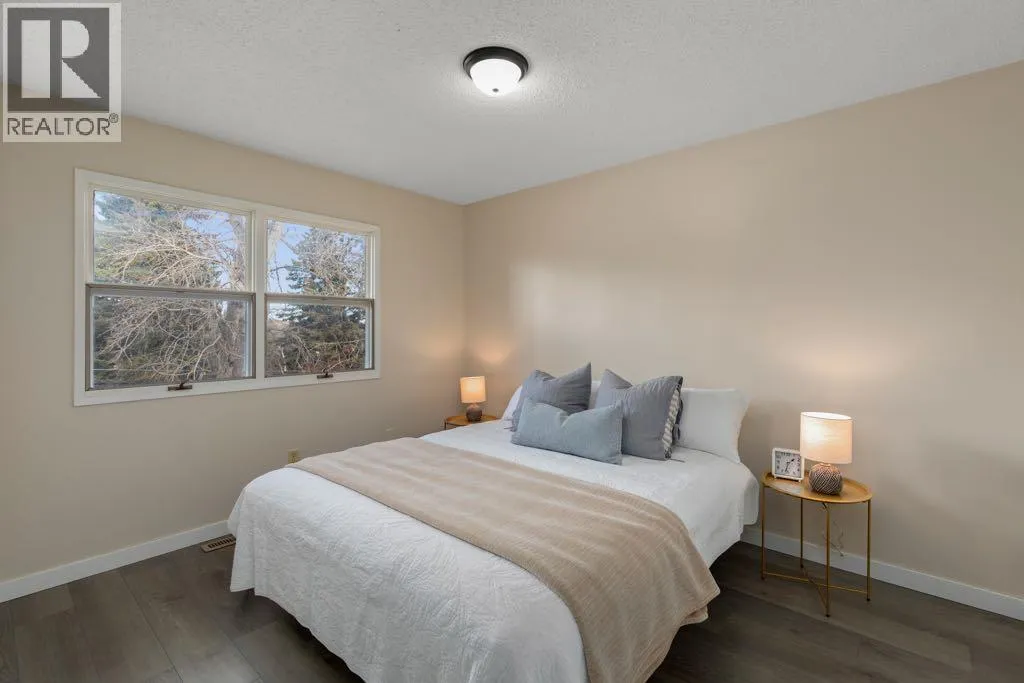** OPEN HOUSE SATURDAY NOV 15th, 1:30pm - 3:30pm**. Wowweee!Own a home that offers space to garden, stargaze, and host gatherings with ease. Soak up the sunshine on three spacious decks and prepare to fall in love with this exceptional layout.The living room is bright and airy, featuring an entire wall of windows that fill the space with natural light. The wood-burning hearth invites you to decorate the mantel, pull up a cozy chair, and settle in. The open, well-designed kitchen provides plenty of counter space and storage, complete with a built-in cabinet ready to display your treasures and cookbooks. A convenient two-piece bathroom completes the main level.Upstairs, youâll find three comfortable bedrooms and a full bathroom â ideal for a family, first-time buyers, or those looking to downsize. The fully finished basement offers flexible space for movie nights, guests, extra storage, or a home gym/workspace.Itâs rare to find a home at this price point with NO CONDO FEES OR HOA FEES. Recent updates include roof shingles (approx. 5 years ago), a new hot water tank, updated tub surround, and all-new fixtures. The home has been freshly painted in a warm, neutral palette and features new elegant, easy-care laminate flooring throughout the main and upper levels.Nestled on the edge of Turner Valley (Diamond Valley) and the doorstep of Kananaskis Country, youâre just a short drive from world-class hiking, cross-country skiing, camping, and fishing â the perfect setting to feed your soul with nature. Youâll also enjoy being within walking distance of the local library, outdoor pool, award-winning restaurants, medical clinic, and charming shops.Quiet, respectful neighbours make this location even more special. Plus, if you have a furry friend, the gated dog run is already set up and ready to go.These townhomes rarely come on the market â donât miss your chance! Contact your trusted agent to book a viewing today. (id:27476)