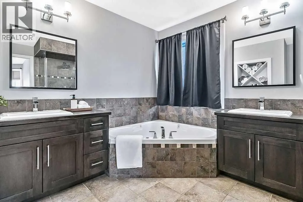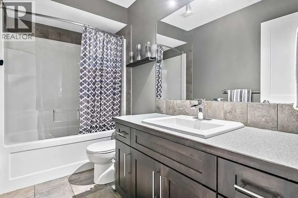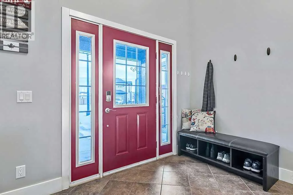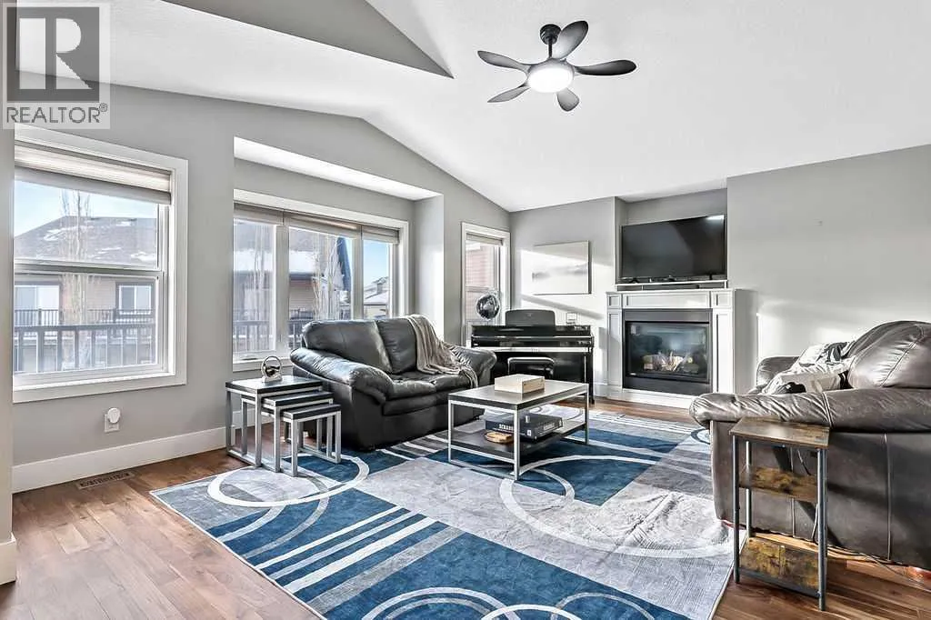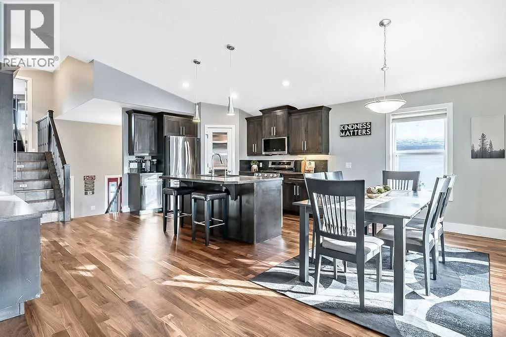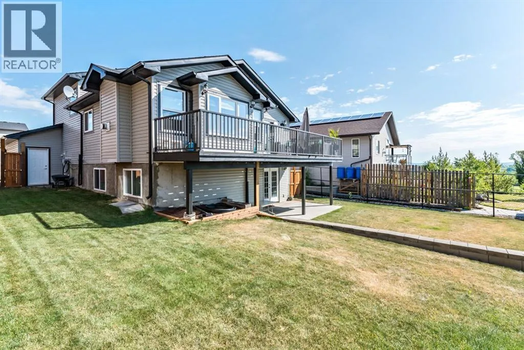 STUNNING VALLEY VIEWS! Discover the charm of this beautiful walkout 1.5-story residence nestled in a serene cul-de-sac, offering 2,420 sq ft of inviting living space that is sure to impress. This home boasts sought-after features like A/C, hot water on demand, luxurious hardwood flooring, accent lighting that enhances the staircase and a sound system wired throughout, including the back deck. Plus, it comes with an oversized, insulated garage (23' x 27') for all your storage needs along with an extra wide parking pad that can fit your RV. As you enter, you'll be greeted by a spacious tiled foyer and grand wide stairs leading down to the walkout level or up to the main floor. This main level is thoughtfully designed with an open floor plan for family interaction and easy entertaining. The lovely living room featuring a gas fireplace offers loads of sunny south facing windows and the adjacent dining room has space to host those large family dinners. A fabulous kitchen has all updated stainless steel appliances (2022) including a gas cooktop and a corner pantry. A dedicated home office station provides built in storage and workplace to keep paperwork and daily tasks neatly organized and within reach. Included on this level is 1/2 bath and a bedroom that would also make a terrific home office. Ascend to the upper level, where you'll find your own private master retreat, complete with a walk-in closet and a luxurious 5-piece ensuite. Indulge in the dual sinks, expansive tiled shower, and a deep corner soaker tub. The WALKOUT lower level is perfect for family hang out, featuring a spacious family room along with two additional bedrooms, a 4-piece bath, and a dedicated laundry room, making it a functional and cozy space. This property is equipped with roughed-in in-floor heating, offering future owners the option to add warmth underfoot for added comfort and luxury. Outside you can enjoy panoramic views from your south-facing patio on the lower level or from your upper de ck that measures and impressive 12' x 31' that stretches across the entire width of the home. A fully fenced backyard offers peace of mind for families, with room for children to play freely and a built-in dog run for four legged family members. Donât miss out on this incredible opportunity! Schedule your private tour with your favorite realtor today! (id:27476)