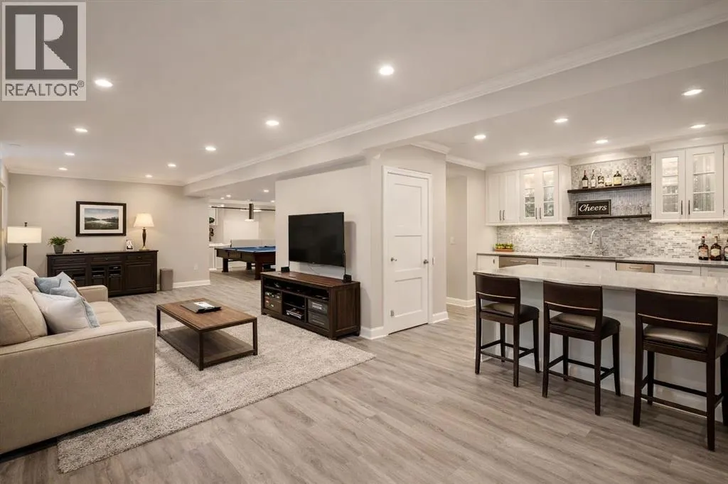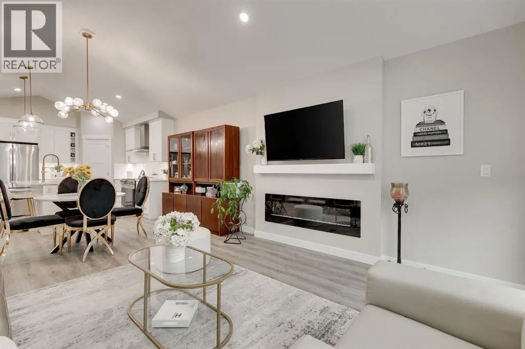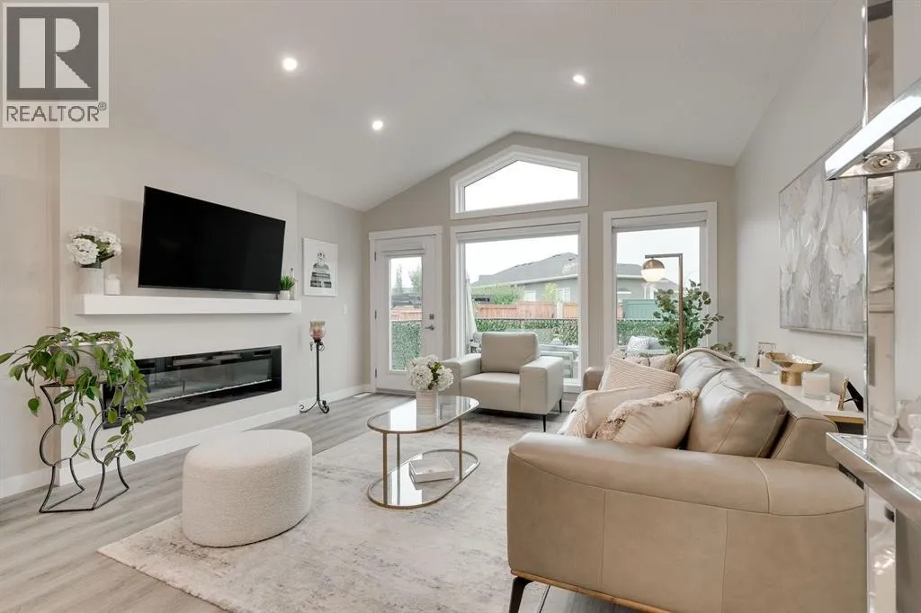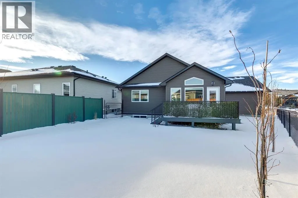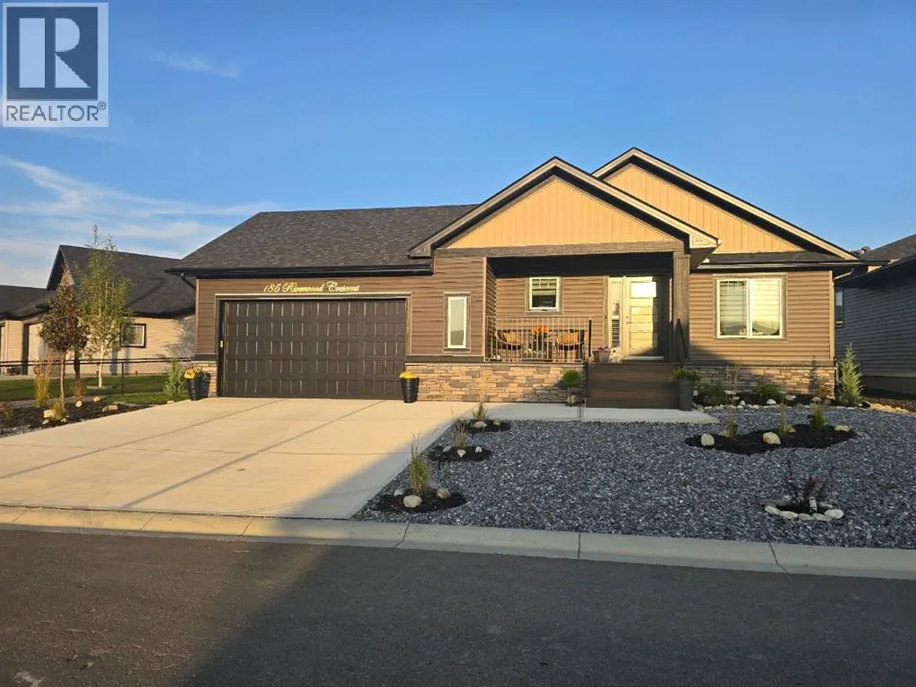 Welcome to this EXECUTIVE, CUSTOM-BUILT 2024 BUNGALOW in the highly sought-after RIVERWOOD ESTATES, offering elegant one-level living with outstanding future potentialâjust steps from scenic walking paths, the Sheep River, and a short stroll into town, all within 40 MINUTES OF CALGARY.The bright, open main floor is enhanced by VAULTED CEILINGS, expansive TRIPLE-PANE WINDOWS, and durable LUXURY VINYL PLANK FLOORING throughout. The gourmet kitchen is both stylish and functional, featuring QUARTZ COUNTERTOPS, tall cabinetry, a large pantry, stainless steel appliances, and a chef-inspired central islandâflowing seamlessly into the dining area and cozy living room with ELECTRIC FIREPLACE AND CUSTOM MANTLE.The primary suite offers a peaceful retreat with a WALK-IN CALIFORNIA CLOSET and a beautifully finished 3-PIECE ENSUITE with quartz counters and a fully tiled shower. A second spacious bedroom and a stylish 4-PIECE BATHROOM WITH SOAKER TUB provide flexibility for guests or a home office.The UNFINISHED BASEMENT presents exceptional opportunity, with large windows and existing rough-in plumbingâallowing for the addition of UP TO TWO MORE BEDROOMS AND A FULL BATHROOM, expanding the home to approximately 2,200 SQ. FT. OF TOTAL LIVING SPACE.Enjoy outdoor living with a LARGE REAR DECK and a welcoming WEST-FACING COMPOSITE FRONT PORCH, perfect for morning coffee or evening relaxation. The DOUBLE ATTACHED GARAGE is fully insulated, finished, and features impressive 13â CEILINGS, connecting to a practical MUDROOM/LAUNDRY AREA WITH BUILT-INS AND SINK.Thoughtfully designed with LOW-MAINTENANCE LANDSCAPING and located close to the hospital, golf course, and all town amenities, this move-in-ready bungalow offers COMFORT, QUALITY, AND FLEXIBILITYâideal for today and smartly designed for the future. (id:27476)