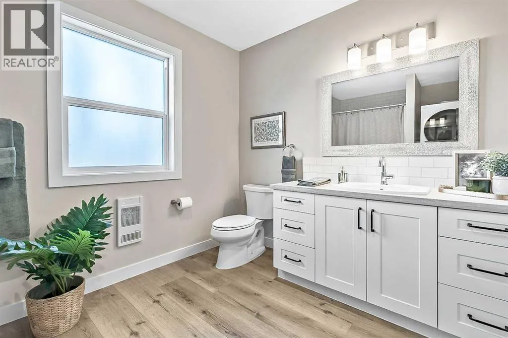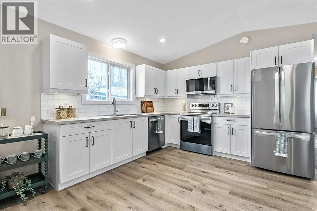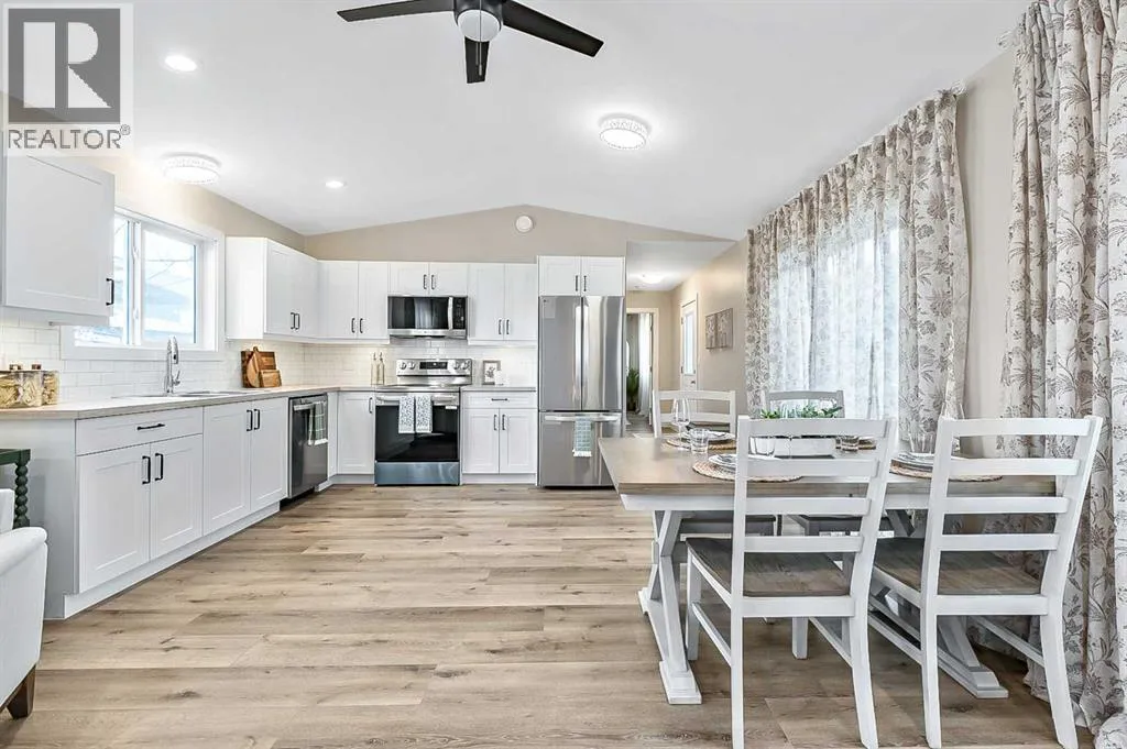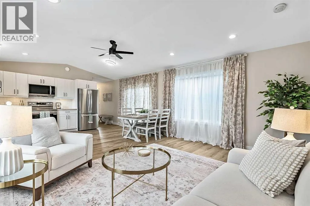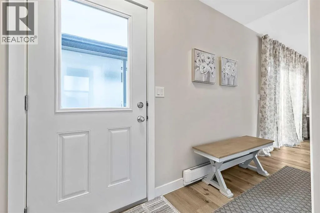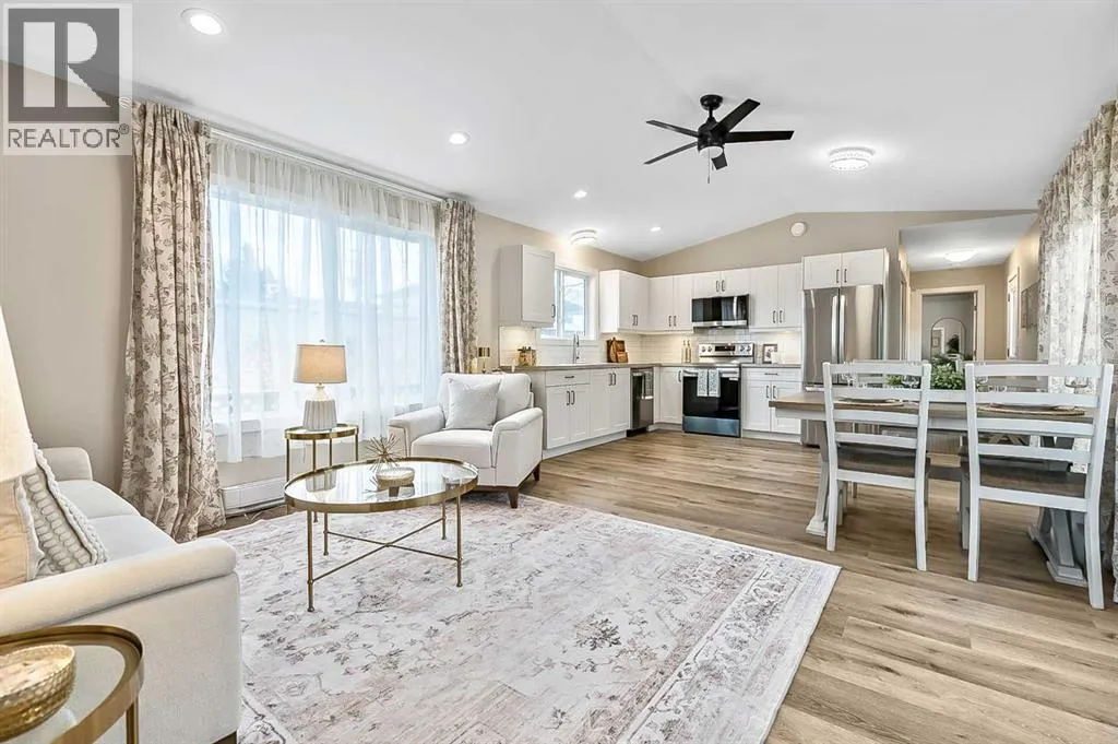 Hereâs a great opportunity to own a new affordable 2 bedroom home located on the Black Diamond side of Diamond Valley, within walking distance to most amenities. This manufactured home sits on its own small lot so there are no monthly pad feeâs. This home is 960 sq ft with room for parking for 2 vehicles at the rear of the home. The home sits on a screw pile foundation, with plywood sheeting underneath. High quality construction with All Weather Windows, 2x6 construction, extremely well insulated with R-40, 25 year asphalt shingles on roof, upgraded Cal XL wood composite siding, upgraded luxury vinyl plank flooring, air exchange system, all drywall inside with smooth ceilings, composite decking with a cedar pergola. The home is bright and welcoming with neutral colors through out. The main living area is a vaulted open floor plan. The bedrooms are located at either end of the home. Stacking laundry is located in the large 4 pc bathroom. This home comes with a 10 year home warranty. This lovely home is ready to move into and a quick possession is available! (id:27476)