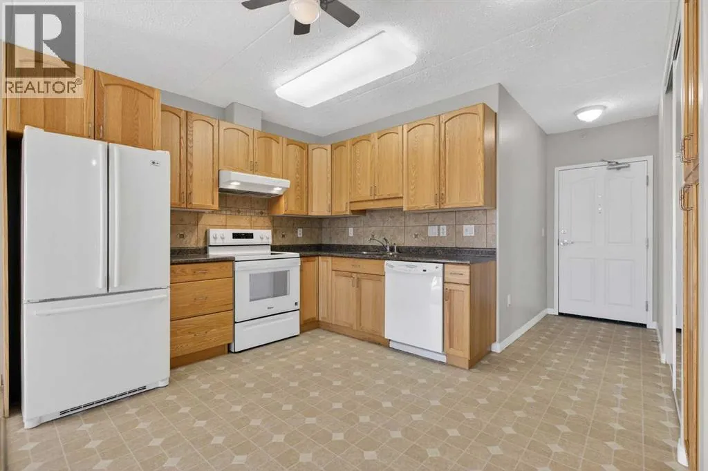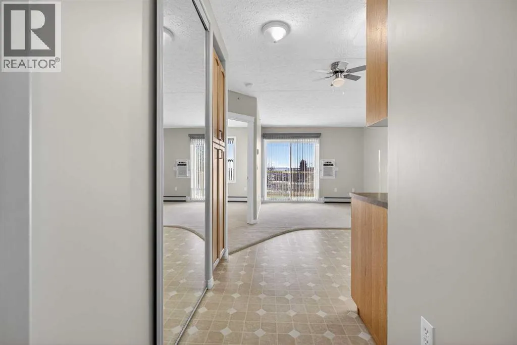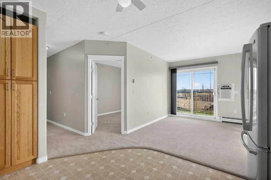 Welcome to peaceful adult living with breathtaking country and mountain views! This well-maintained 55+ community offers the perfect blend of quiet serenity and convenient access to the city.This bright and inviting 2-bedroom, 1.5-bath condo features a functional layout designed for comfortable everyday living. The spacious primary bedroom includes a 2-piece ensuite, a large closet, and was freshly painted last year, giving the space a clean and updated feel. A second bedroom offers flexibility for guests, hobbies, or a home office.The kitchen is thoughtfully laid out with a built-in pantry, plenty of storage, and a cozy dining area, while in-suite laundry adds everyday convenience.Enjoy the charm of a friendly, well-cared-for building with excellent amenities including a workout area, and a common room that can be reserved for private gatherings and events. This is a wonderful opportunity to enjoy a low-maintenance lifestyle in a community that truly feels like home.If youâre looking for comfort, convenience, and a welcoming community with a serene country feel, this is the one. (id:27476)