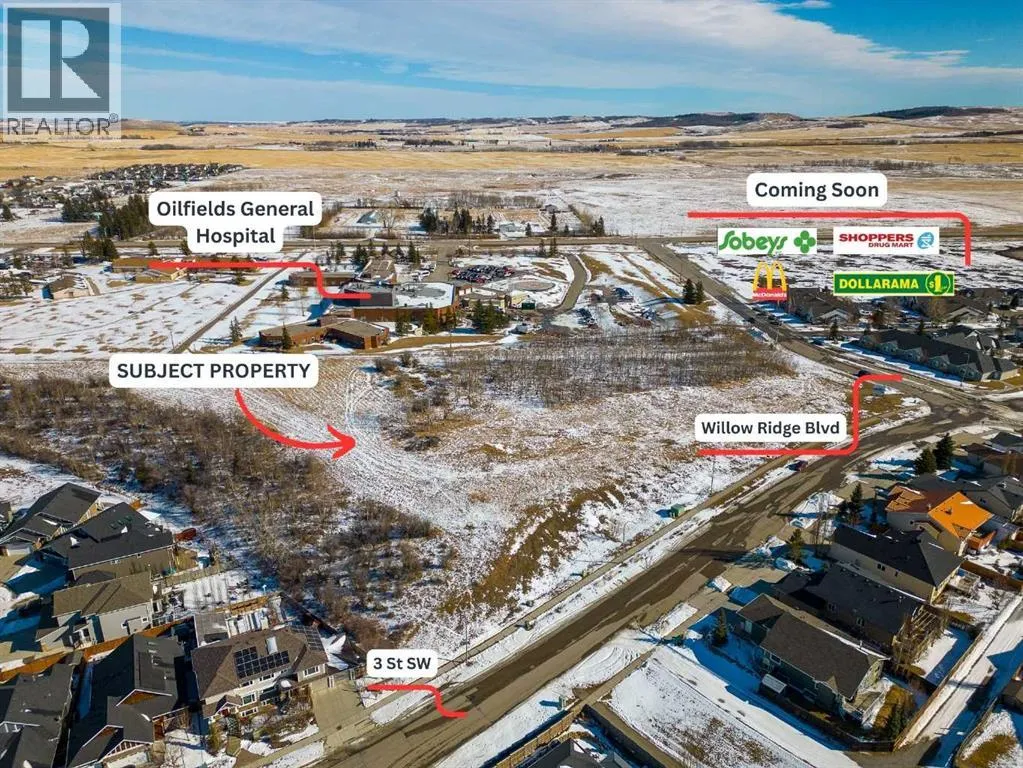 This massive 4.11-acre parcel represents the premier multi-family or single-family villa subdivision opportunity in Diamond Valley. Directly backing onto Oilfields General Hospital, the site is perfectly positioned for senior living, high-density inventory, or premium villa lots in a community with critical need for diverse housing options. The location offers rare small-town charm and urban-style walkability, steps from Diamond Valley Marketplace and major anchors like Sobeys, Shoppers Drug Mart, Dollarama, and McDonaldâs.R4 zoning provides the highest residential density in the municipality, allowing large-scale apartments, stacked townhouses, or subdivision into single-family villa lots. This isnât just land; itâs a blank canvas with a clear path to profitability. The siteâs size allows efficient, phase-based constructionâor phased subdivisionâwhile unrivaled proximity to healthcare and the primary commercial corridor ensures long-term demand. Future residents will benefit from breathtaking western mountain views and a connected lifestyle within a vibrant arts scene. Seize this strategic advantage to create a landmark development in Diamond Valley's heart. (id:27476)