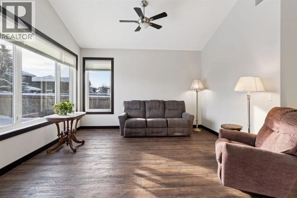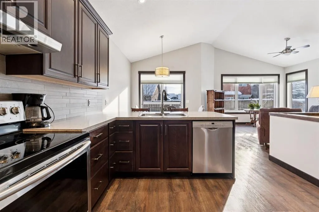 This is the one you have been waiting for! The bungalow that fits your lifestyle, but still has style! When you first walk in you will be taken aback by the soaring vaulted ceilings, Luxury Vinyl Plank flooring throughout, and fresh professional paint done March 2026. Moving to a bungalow shouldnât have to mean down sizing. This place offers 1288 SF of tasteful finishings all on one level. With 2 Bedrooms and 2 bathrooms as well as a reading room, thereâs plenty of space. The full size kitchen offers beautiful European Beech wood cabinets and a walk in pantry. Pull up a stool at the counter height breakfast bar and sip your coffee/wine while the cook is at play! The open concept kitchen, dining, and living room allows for plenty of room for family gatherings, whether its the weekly Sunday dinner or a full on Thanksgiving get together. Why choose Riverwood? Just stand on the sidewalk for 10 minutes and the abundance of friendly neighbours stopping to chat to see how youâre doing will be enough to convince you that this is a connected neighbourhood. It's like CHEERS where everybody knows your name! Besides the wonderful neighbours, Riverwood Way offers direct access to walking paths and green space, as well as a childrenâs park at the end of the street. This is Diamond Valleyâs sought after Riverwood community. Enjoy a peaceful, walkable neighbourhood with parks, nature trails, golf, breweries, restaurants, and schools all nearby, plus quick access to Kananaskis, 15 minutes to Okotoks, and 25 minutes to Calgary. The Hospital is easily accessible, as well as the new shopping complex soon to be built (Sobeyâs, Dollarama, Shoppers Drug Mart, McDonalds). Donât wait, letâs get you into your next chapter now! (id:27476)