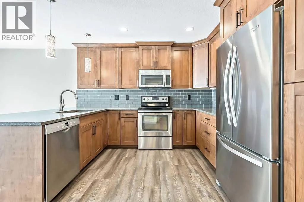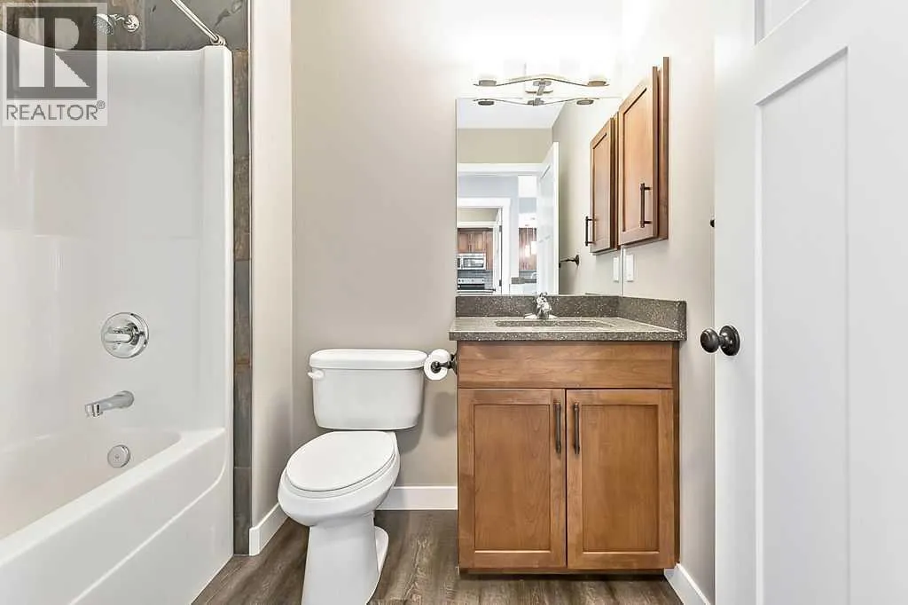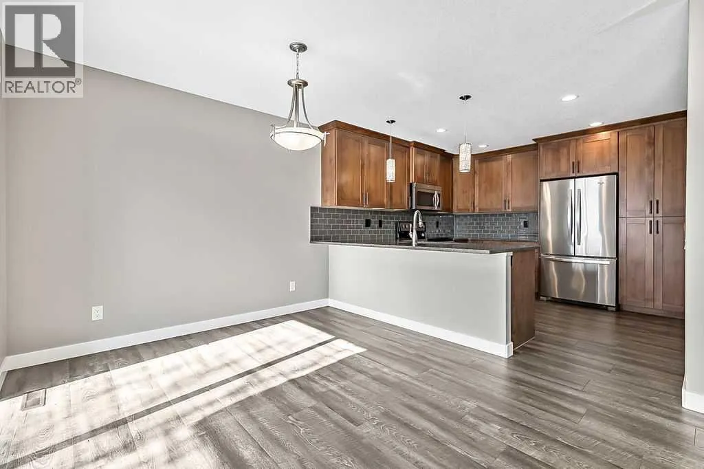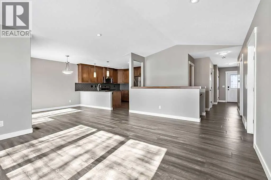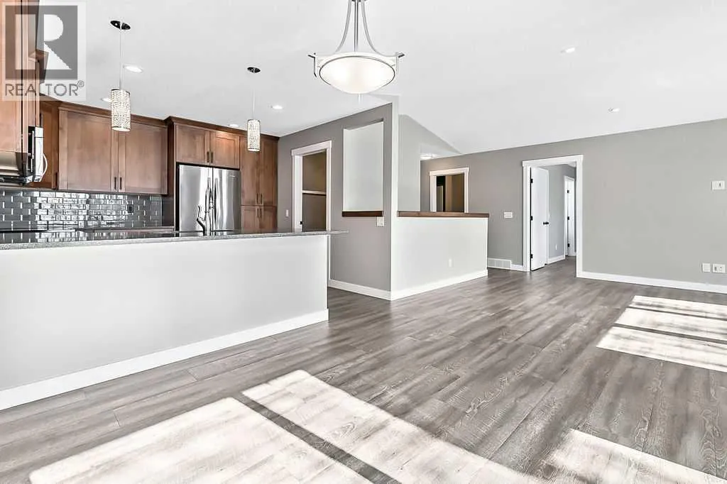 Discover easy, maintenance-free living in this beautifully kept villa in an adult 45+ communityâperfectly positioned for foothills views with no neighbours behind. Vaulted ceilings, luxury vinyl plank flooring and custom blinds are some of the features in this thoughtfully designed home. Spacious and sunlit, the living room features large south-facing windows that create a warm, inviting space for relaxing or entertaining. The kitchen is both stylish and practical, featuring granite countertops, soft close cabinetry and an adjacent dining area. A generous primary bedroom takes in beautiful natural views and includes a walk-in closet plus a three-piece ensuite. Also on the main floor, a versatile home office can easily serve as a second bedroom, while convenient main-floor laundry simplifies daily routines. Both main-floor bathrooms are upgraded with in-floor heating for added comfort year round. Downstairs, the basement is largely finished and ready to enjoy, with one bedroom left unfinishedâan easy opportunity to add value or keep as excellent storage space. A cozy family room is perfect for relaxing and watching TV, while an additional bedroom and full bathroom provide comfortable space for you or guests. Outside you'll appreciate the large deck across the back of the home where you can enjoy sunny days soaking in the peaceful setting with an abundance of mature trees behind you to provide wonderful privacy. The front yard irrigation system helps keep your curb appeal looking its best. An insulated, double attached garage provides room for vehicles plus tools, bikes, and weekend projects. Condo fees make life simple with landscaping and snow removal included, so you can lock-and-leave with confidence. Tucked away on a quiet street near the golf course and close to local shopping, this standout property offers everything youâve been looking for! (id:27476)
