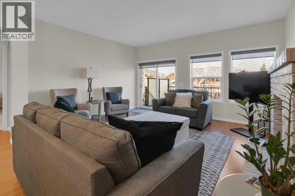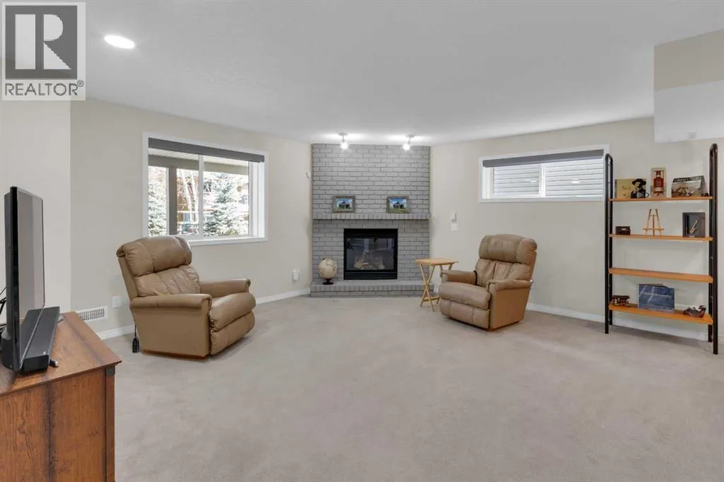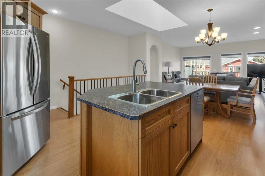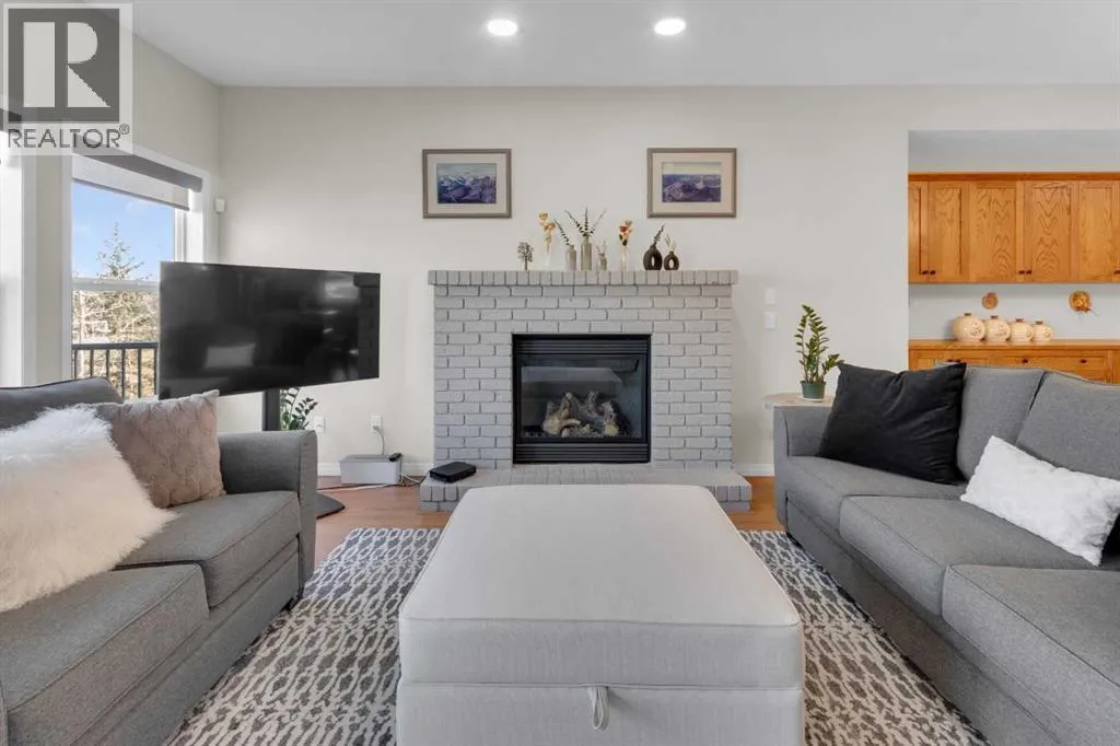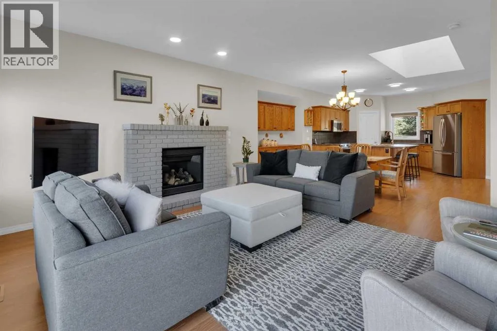 Open House Sunday April 19, 2-4 p.m. - Impressive, fresh, open, and bright! This immaculate updated villa sits in a quiet cul de sac backing onto a treed green belt with access to natural areas and Turner Valley Golf Club. Surprisingly private and peaceful, listen to birdsong and watch the deer stroll by your private deck and living areas. This turnkey, easy care home has extensive updates that make it truly move in ready. A partial list of updates (5 years); painted top to bottom - ceilings, doors and trim. New AC, all new appliances, all new window coverings, all new light fixtures (LED), all faucets, HWT, sump pump, vinyl floors, new landscaping incl. 5 big Colorado Blue Spruce at back fence, sprinklers, and more! Large functional indoor & outdoor living areas on the 1217 sq.ft. main with a sunny skylight spilling natural light all day. Roomy, country style kitchen with generous counter/storage space. Airy, open, connected, dining and living areas that open onto the 17â x 10â deck. Spacious 15â x 15â primary bedroom, main level laundry/mud room and a discreetly located powder room. Enjoy 1140 sq.ft. of thoughtful lower-level development with big bright walkout size windows, large family room with cozy fireplace, bedroom, full bath, flex room/bedroom (new egress window) and ample storage. A great home for when friends/family visit - 3 bedrooms, 2.5 baths, 2 gas fireplaces, 2 living areas â yet not too big when relaxing on your own. Refreshed 25â x 19â2â garage with epoxy painted floor, new heater & opener. Recently serviced Lennox furnace and Kinetico filtration water softener. Lots of nearby natural walking trails, off leash areas and a paved walking/bike path into town. A short bike ride or drive for all your favourite shops, restaurants, groceries, pubs and full-service hospital. NOTE: Low condo fees of $273 include exterior maintenance, (incl. roof, windows and doors!) lawn service & snow removal. Telus Fibre Optics Internet available. A great opportunity, al l the hard work is done. Just move in, relax and enjoy your elegant easy-care country home! Click 3D for interactive floorplan. (id:27476)