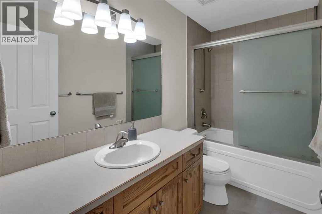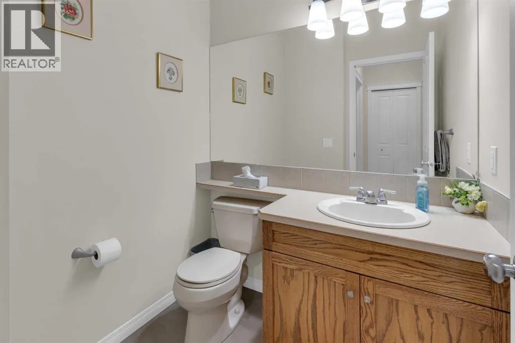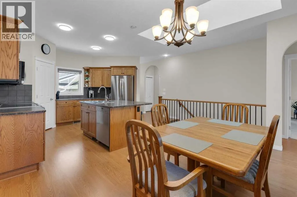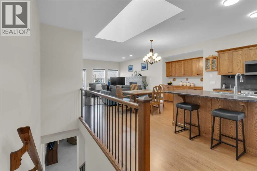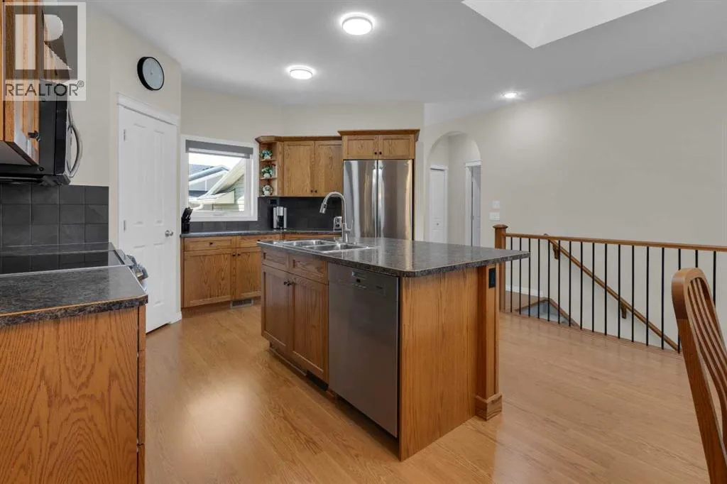 Open House Sunday April 19, 2-4 p.m. - Impressive, fresh, open, and bright! This immaculate updated villa sits in a quiet cul de sac backing onto a treed green belt with access to natural areas and Turner Valley Golf Club. Surprisingly private and peaceful, listen to birdsong and watch the deer stroll by your private deck and living areas. This turnkey, easy care home has extensive updates that make it truly move in ready. A partial list of updates (5 years); painted top to bottom - ceilings, doors and trim. New AC, all new appliances, all new window coverings, all new light fixtures (LED), all faucets, HWT, sump pump, vinyl floors, new landscaping incl. 5 big Colorado Blue Spruce at back fence, sprinklers, and more! Large functional indoor & outdoor living areas on the 1217 sq.ft. main with a sunny skylight spilling natural light all day. Roomy, country style kitchen with generous counter/storage space. Airy, open, connected, dining and living areas that open onto the 17â x 10â deck. Spacious 15â x 15â primary bedroom, main level laundry/mud room and a discreetly located powder room. Enjoy 1140 sq.ft. of thoughtful lower-level development with big bright walkout size windows, large family room with cozy fireplace, bedroom, full bath, flex room/bedroom (new egress window) and ample storage. A great home for when friends/family visit - 3 bedrooms, 2.5 baths, 2 gas fireplaces, 2 living areas â yet not too big when relaxing on your own. Refreshed 25â x 19â2â garage with epoxy painted floor, new heater & opener. Recently serviced Lennox furnace and Kinetico filtration water softener. Lots of nearby natural walking trails, off leash areas and a paved walking/bike path into town. A short bike ride or drive for all your favourite shops, restaurants, groceries, pubs and full-service hospital. NOTE: Low condo fees of $273 include exterior maintenance, (incl. roof, windows and doors!) lawn service & snow removal. Telus Fibre Optics Internet available. A great opportunity, al l the hard work is done. Just move in, relax and enjoy your elegant easy-care country home! Click 3D for interactive floorplan. (id:27476)
