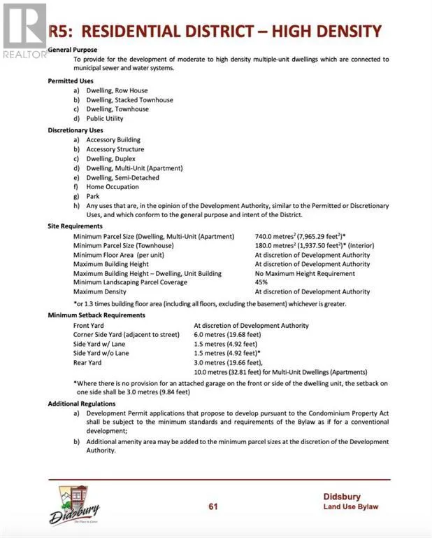 Three commercial lots for sale in Shantz Village Phase 2 totalling 5.98 Acres. Asking price is $299,000 per Acre. Lot 4 (400 Shantz Village 2024 tax: $8,340.00 | Size: 3.010 AC | LINC: 0035569277). Lot 5 (500 Shantz Village 2024 tax: $4,239.44 | Size: 1.530 AC | LINC: 0035569285) Lot 6 (600 Shantz Village 2024 tax: $3,990.09 | Size: 1.440 AC | LINC: 0035569293). Land Use: C-1 General Commercial. Anchored By Buy-Low Foods, Dollarama & Pet Valu. Retail stores, walking paths, mixed use commercial. Proposed LIquor store and Cannabis outlet. Didsbury is located just off of QEII Highway, approx 70 km from the Calgary International Airport, or 47 minutes drive. There is a 9-hole golf course, aquatic centre, two ice rinks, softball/baseball diamonds, parks and playgrounds. There is also a hospital, an RCMP detachment as well as the Olds-Didsbury Airport, primarily for small aircraft, general aviation, and a helipad for STARS air ambulance to land. (id:27476)