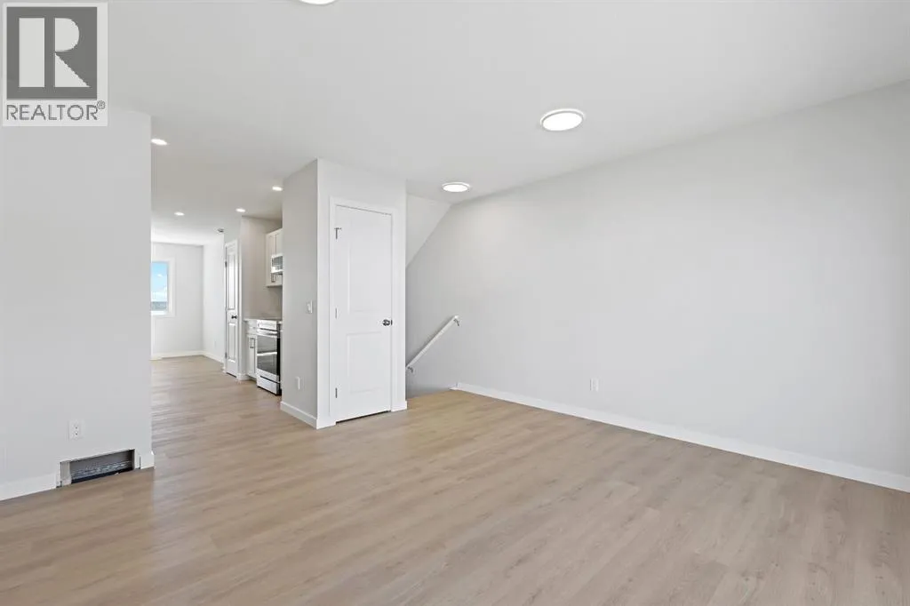 Welcome to this stylish and affordable freehold townhouse with no condo fees, built by Jonboyz Construction, a reputable local builder in Didsbury. Located in the desirable community of Valarosa, this home offers nearly 1,300 sq ft of functional living space with thoughtful design and family-friendly features.The main level includes an attached garage, utility room, and direct access to the backyard — offering both practicality and convenience. Upstairs, the bright and spacious main floor boasts an open dining area, cozy living room, and a modern kitchen complete with white soft-close cabinets, white quartz countertops, a pantry, and vinyl plank flooring in a warm, neutral tone. This level also includes a 2-piece bathroom and access to your private rear deck — ideal for relaxing or entertaining.On the third floor, you’ll find two generously sized bedrooms, a 4-piece bathroom, and a convenient upstairs laundry room. The primary bedroom features dual closets, providing excellent storage space. Carpet flooring adds warmth and comfort to the bedrooms and hallway.This townhouse offers a spacious backyard, and front yard — a rare find. The builder will also be including a fully fenced backyard, providing privacy, security, and a safe space for children or pets. Located just steps from a scenic protected forest area with walking paths and local wildlife, and close to a playground and baseball diamond, this home is perfect for families looking for space and community.Don’t miss your chance to own this well-crafted home in a peaceful, family-oriented neighborhood. (id:27476)
