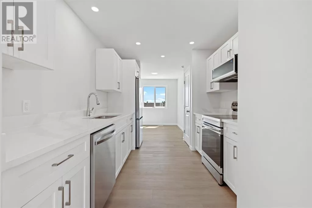 Welcome to this stylish and affordable freehold townhouse with no condo fees, built by Jonboyz Construction, a reputable local builder in Didsbury. Located in the desirable community of Valarosa, this home offers nearly 1,300 sq ft of functional living space with thoughtful design and family-friendly features.The main level includes an attached garage, utility room, and direct access to the backyard — offering both practicality and convenience. Upstairs, the bright and spacious main floor boasts an open dining area, cozy living room, and a modern kitchen complete with white soft-close cabinets, white quartz countertops, a pantry, and vinyl plank flooring in a warm, neutral tone. This level also includes a 2-piece bathroom and access to your private rear deck — ideal for relaxing or entertaining.On the third floor, you’ll find two generously sized bedrooms, a 4-piece bathroom, and a convenient upstairs laundry room. The primary bedroom features dual closets, providing excellent storage space. Carpet flooring adds warmth and comfort to the bedrooms and hallway.This townhouse offers a spacious backyard, and front yard — a rare find. The builder will also be including a fully fenced backyard, providing privacy, security, and a safe space for children or pets. Located just steps from a scenic protected forest area with walking paths and local wildlife, and close to a playground and baseball diamond, this home is perfect for families looking for space and community.Don’t miss your chance to own this well-crafted home in a peaceful, family-oriented neighborhood. (id:27476)