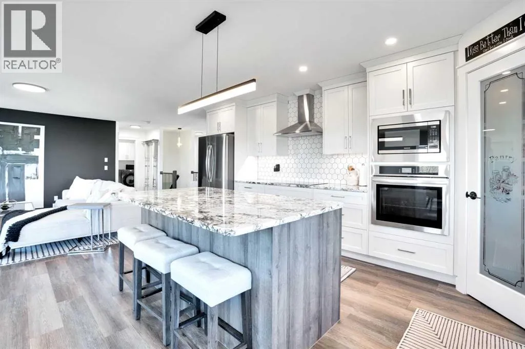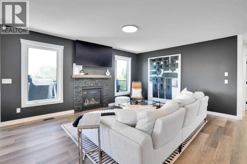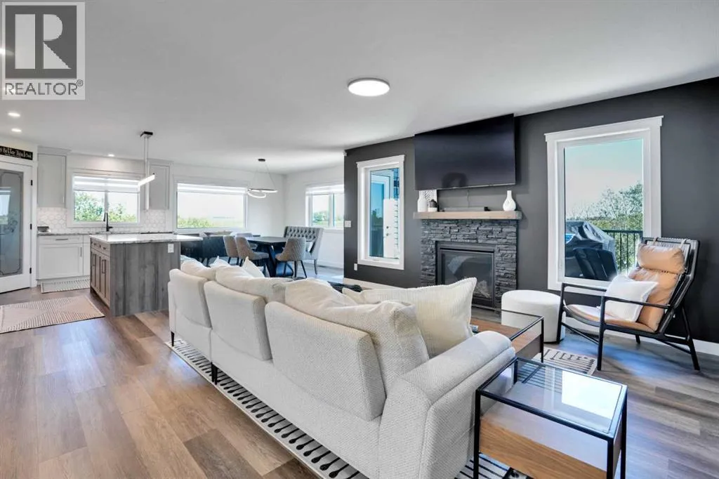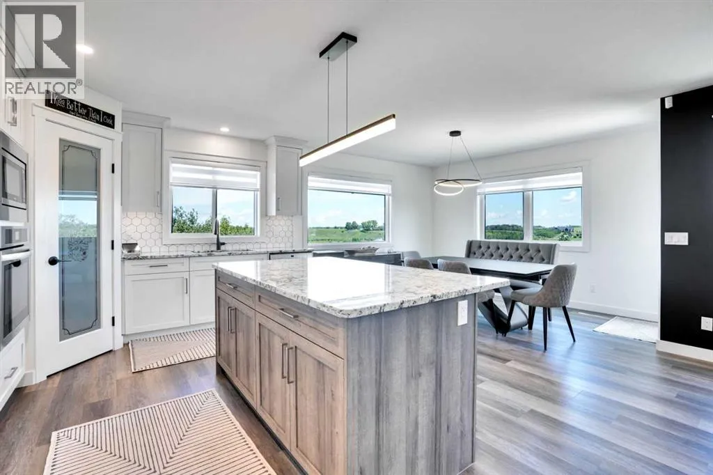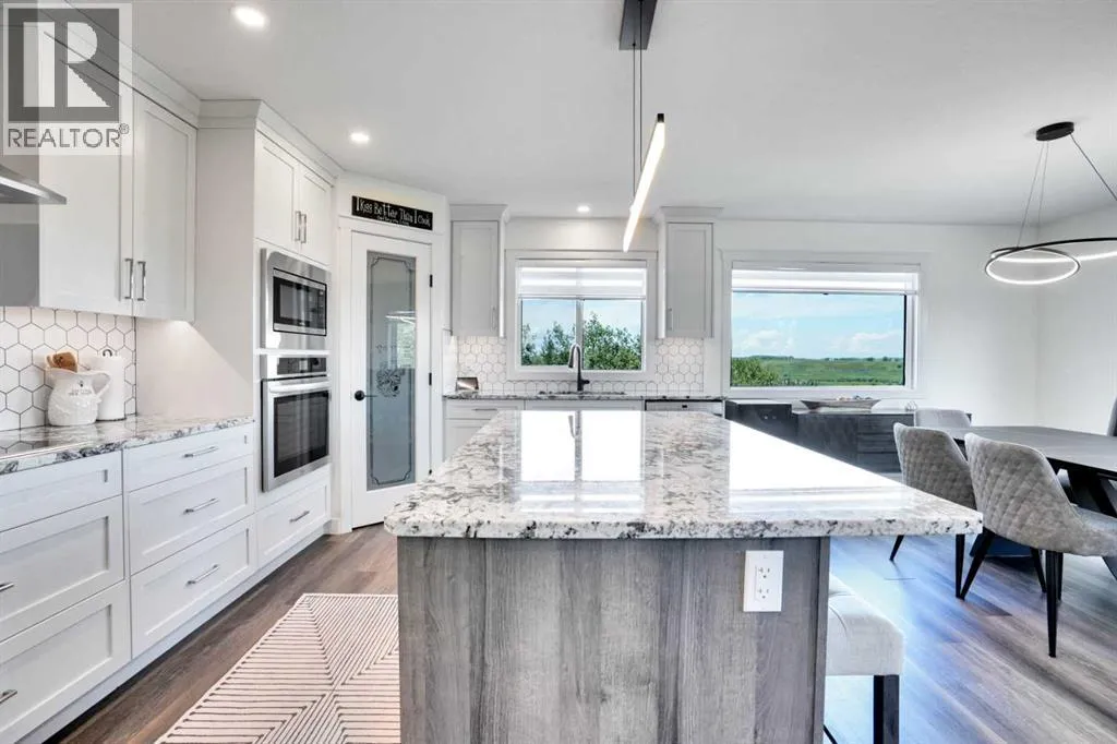 Welcome to a stunning, modern bungalow with over 2600 square feet of finished living space that feels like a peaceful retreat, backing onto a serene nature reserve. This three-year-old gem, nestled in a beautifully landscaped setting, offers the perfect blend of luxury, comfort, and low-maintenance livingâideal for retirees or growing families. Step inside to find a bright, open-concept main floor with luxury vinyl plank flooring, sleek granite countertops, and a crisp white kitchen with a corner pantry. The spacious primary suite is a true haven, boasting a generous walk-in closet and a 5-piece ensuite. A second large bedroom and additional bathroom complete the main level, perfect for guests or family. The fully finished walk-out basement is designed for relaxation and entertaining, featuring a family room with a wet bar (complete with dishwasher), massive bedrooms with ample closet space, and a 5-piece bathroom. Large windows flood the space with natural light, showcasing breathtaking views of the valley. Outside, the expansive backyard is a private oasis, framed by NEW fencing and a state-of-the-art SMART irrigation system for effortless upkeep. Enjoy morning tea on the Duradeck balcony with a gas line for your BBQ, and a NEW composite deck below, roughed in for a Hot Tub. The unobstructed views of the nature reserve make every moment feel like a getaway. Additional upgrades elevate this home to the next level: energy-efficient in-floor basement heating (which practically eliminate your heating bills come winter), central air conditioning for those hot summers, a central vacuum system, upgraded appliances, all NEW lighting fixtures, a 75-gallon hot water tank, and a brilliantly designed plumbing manifold. The triple garage offers ample space for vehicles and storage, while recently cleaned furnace and ducts ensure year-round comfort. This is more than a homeâitâs a lifestyle. Thought that was enough? Home is located two blocks away from the Didsbury Hospital as well as close proximity to truly great schools and other local amenities. Experience the tranquility and luxury for yourself. Schedule your private tour today! (id:27476)