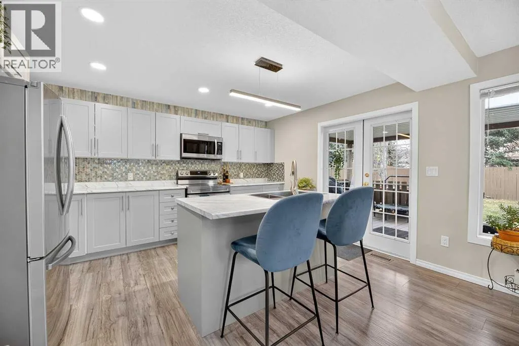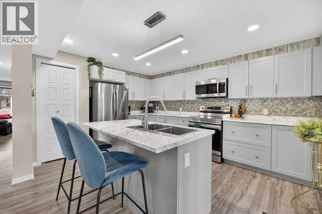THIS COULD BE YOUR NEXT HOME!! And it is in one of the best locations in Didsbury! This 2 story home was recently STRIPPED DOWN TO THE STUDS AND TOTALLY REBUILT; it has been extensively renovated and has a very functional, unique floorplan. The main level has a spacious kitchen with lots of cabinetry, island with eating bar and a nicely tiled backsplash. There is an adjacent dining room that leads out to a VERY PRIVATE COVERED VERANDA which is like another living space outdoors. On the main there is also a large living room, bathroom, laundry and utility closet. Head upstairs and you will find a large primary bedroom with a HUGE walk in closet, two secondary bedrooms and a full bath. Although there is not a full basement in this home you will find that it really is not needed and is actually a nice feature because it means less 'stuff' to deal with. There is also a newer rubber roof, furnace and hot water tank so all of the big ticket items are done. Head outside and you will appreciate that this home is on a large 65X110 lot and has a private, fenced yard with that covered veranda-this is a peaceful, serene spot to enjoy the day. There is a double garage insulated with electric heat, a shed and a large concrete parking pad so lots of space for all the toys here. Close to the golf course and playground, this home is located on one of the quietest streets in town. This home is immaculately clean and superbly updated/maintained. It is move in ready and waiting for it's next family to appreciate all this home has to offer! Call today to book your viewing! (id:27476)