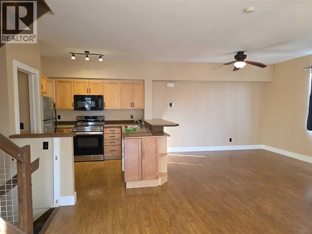 Step into a bright, beautifully designed home that blends comfort(A/C), style, and effortless living. Offering three spacious bedroomsâeach with its own walk-in closetâtwo private balconies, and a thoughtful open-concept layout, this property delivers both function and charm. The main floor welcomes you with a modern kitchen featuring an eating bar and sleek stainless steel appliances. Just off the kitchen sits a generous dining area perfect for gatherings, a convenient 2-piece bath, and a warm, inviting living room complete with a cozy nook and access to your first balcony. Upstairs, youâll find two oversized bedrooms, each boasting walk-in closets. The primary bedroom includes a charming nook and its own balconyâan ideal spot for morning coffee. A well positioned laundry room with cabinetry and folding counter adds everyday convenience, along with a 4-piece bathroom. The fully finished basement is bright and surprisingly spacious, offering a welcoming family area filled with natural light. A large third bedroom with a walk-in closet and its own 4-piece ensuite creates a perfect private retreat for guests or older family members. Outside, enjoy a cute, fenced yardâideal for plants, or simply relaxing outdoors. Dedicated parking adds to the ease of living. Located just steps from Main Street shopping and close to all local schools, this home sits in a prime, walkable neighborhood. With low-maintenance living and exceptionally affordable condo fees, itâs an excellent choice for first-time buyers, downsizers, or investors looking for a smart, stress-free property. (id:27476)