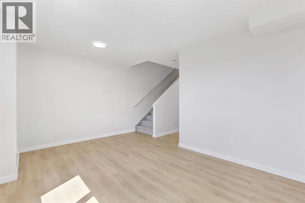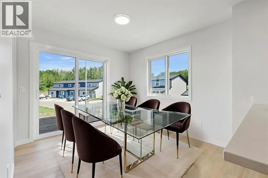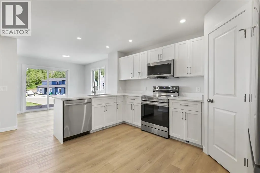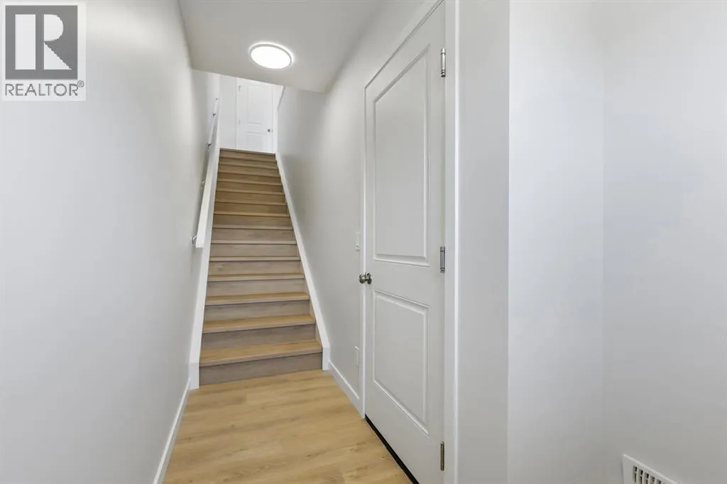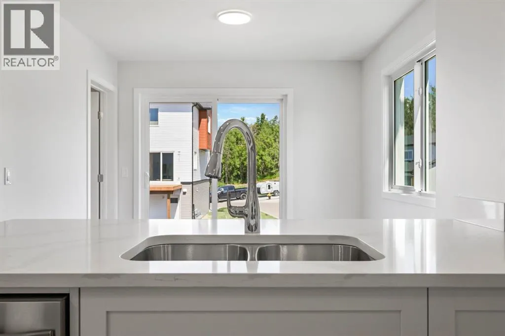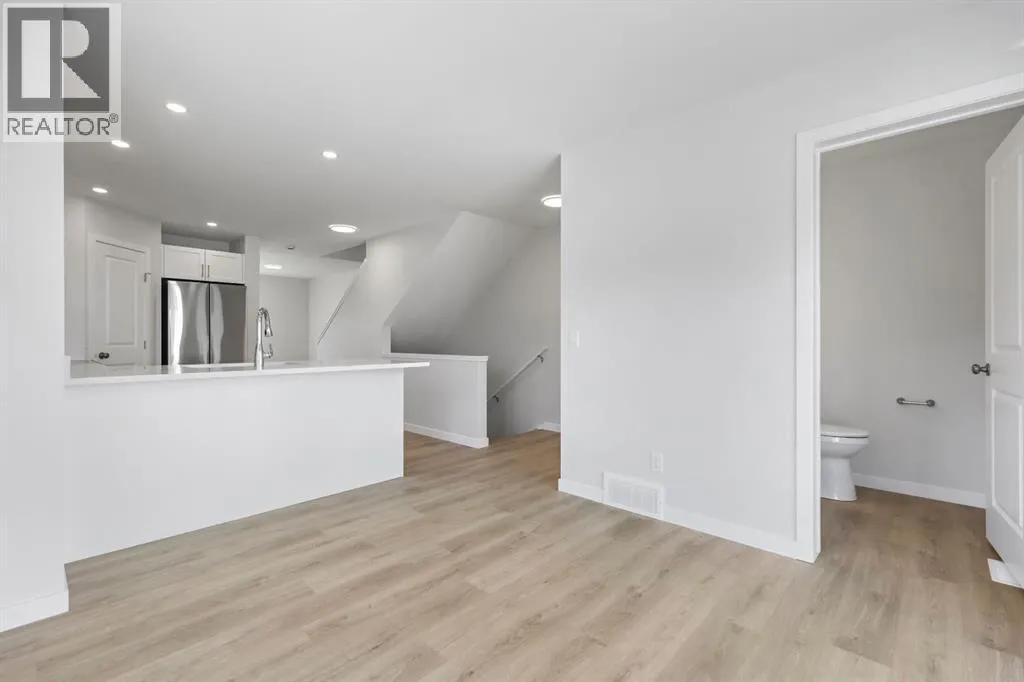 Welcome to this stylish and affordable freehold townhouse with no condo fees. Located on a corner lot in the desirable community of Valarosa, this home offers nearly 1,500 sq ft of functional living space with thoughtful design and family-friendly features. The main level includes an attached garage big enough for a truck , spacious utility/storage room, and direct access to the backyard â offering both practicality and convenience. Upstairs, the bright and spacious main floor boasts an open dining area, cozy living room, and a modern kitchen complete with white soft-close cabinets, white quartz countertops, a pantry, and vinyl plank flooring in a warm, neutral tone. This level also includes a 2-piece bathroom and access to your private rear deck â ideal for relaxing or entertaining. On the third floor, youâll find three generously sized bedrooms, a 4-piece bathroom, and a convenient upstairs laundry room. The primary bedroom features dual closets, providing excellent storage space. Carpet flooring adds warmth and comfort to the bedrooms and hallway. Set on a corner lot, this townhouse offers a spacious fully fenced and landscaped backyard, a side yard, and a front yard â a rare find. Located just steps from a scenic protected forest area with walking paths and local wildlife, and close to a playground and baseball diamond, this home is perfect for families looking for space and community. Donât miss your chance to own this well-crafted home in a peaceful, family-oriented neighbourhood. (id:27476)
