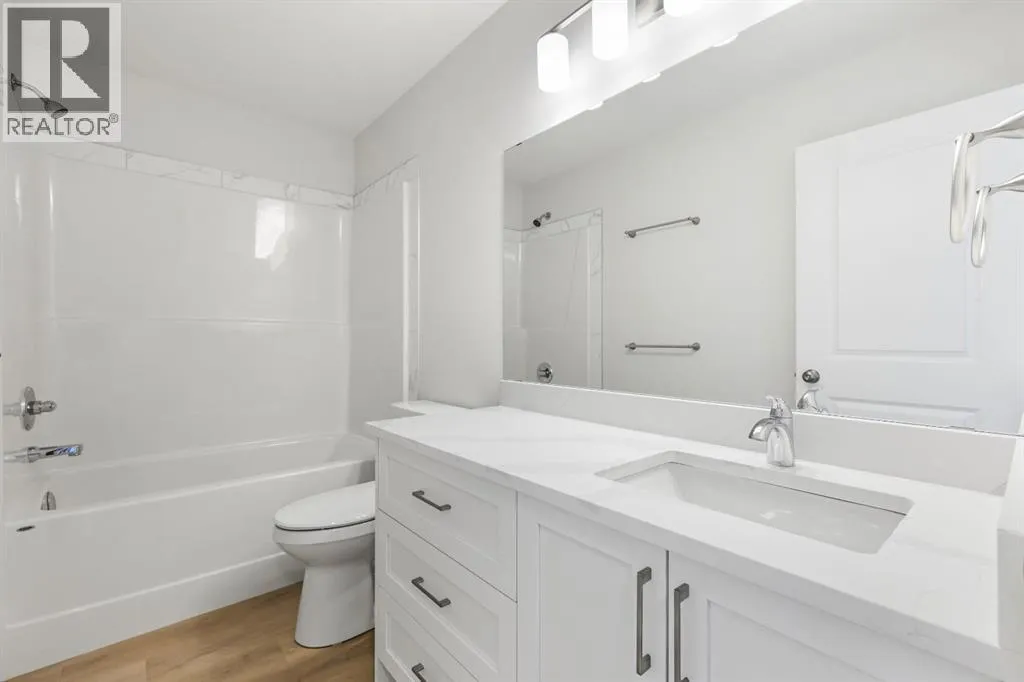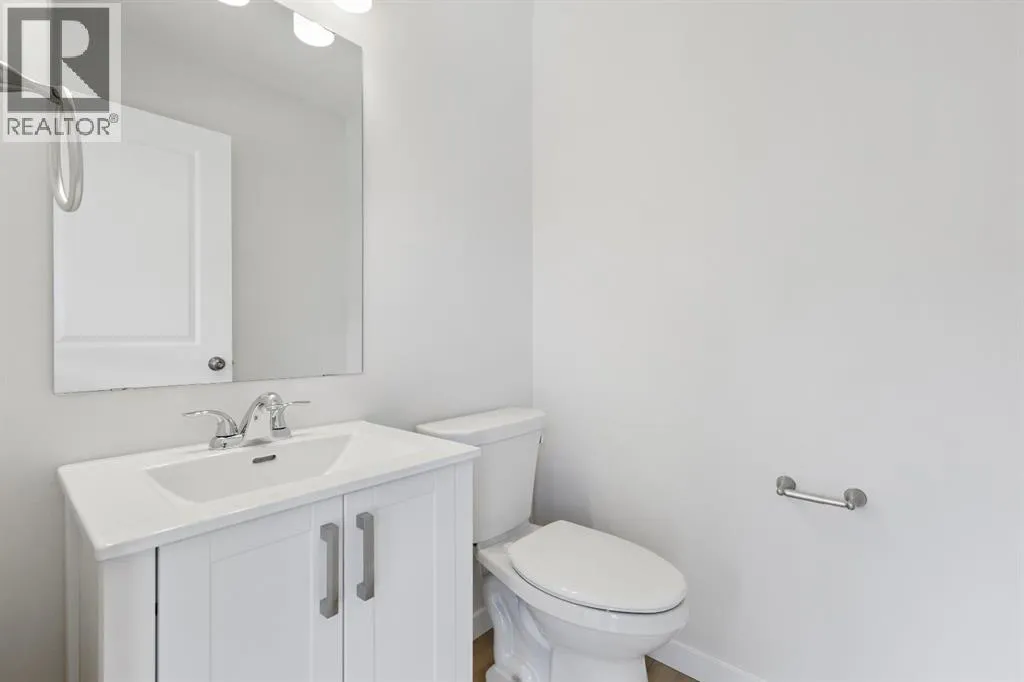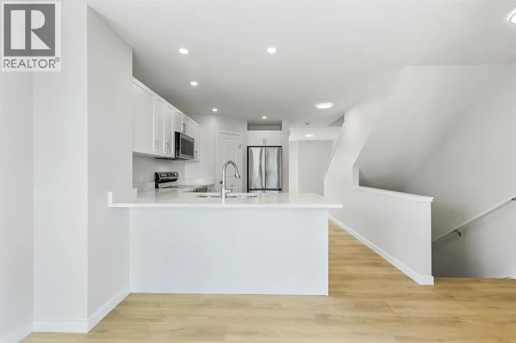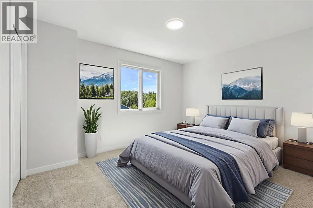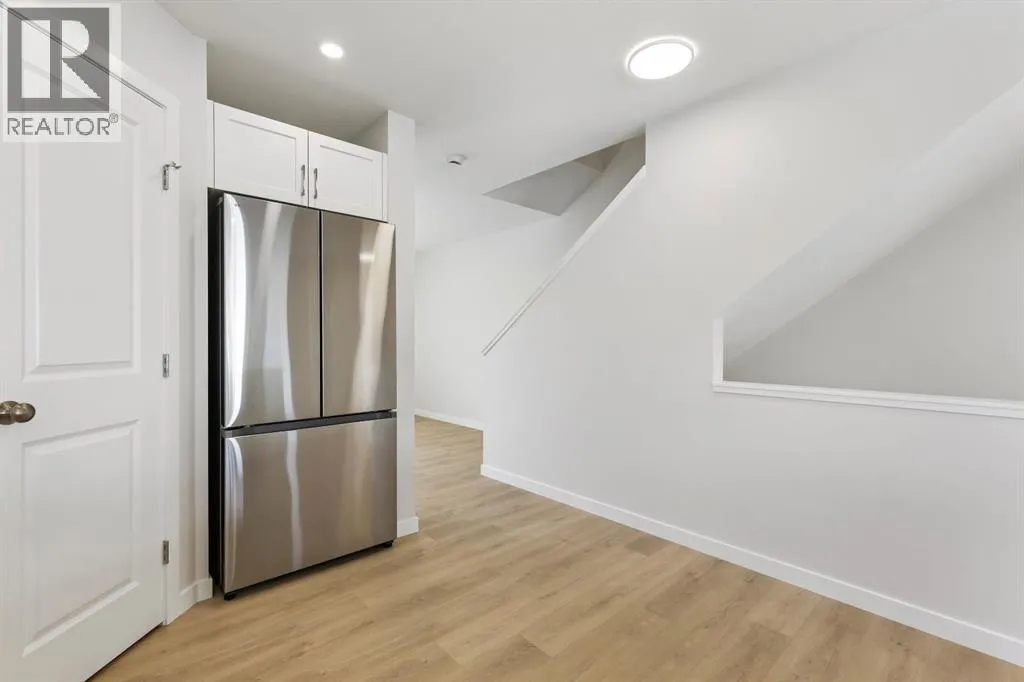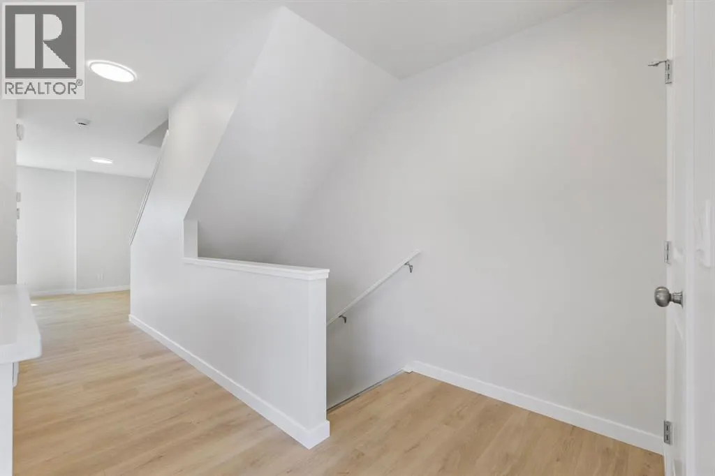 Welcome to this stylish and affordable freehold townhouse with no condo fees. Located on a corner lot in the desirable community of Valarosa, this home offers nearly 1,500 sq ft of functional living space with thoughtful design and family-friendly features. The main level includes an attached garage big enough for a truck , spacious utility/storage room, and direct access to the backyard â offering both practicality and convenience. Upstairs, the bright and spacious main floor boasts an open dining area, cozy living room, and a modern kitchen complete with white soft-close cabinets, white quartz countertops, a pantry, and vinyl plank flooring in a warm, neutral tone. This level also includes a 2-piece bathroom and access to your private rear deck â ideal for relaxing or entertaining. On the third floor, youâll find three generously sized bedrooms, a 4-piece bathroom, and a convenient upstairs laundry room. The primary bedroom features dual closets, providing excellent storage space. Carpet flooring adds warmth and comfort to the bedrooms and hallway. Set on a corner lot, this townhouse offers a spacious fully fenced and landscaped backyard, a side yard, and a front yard â a rare find. Located just steps from a scenic protected forest area with walking paths and local wildlife, and close to a playground and baseball diamond, this home is perfect for families looking for space and community. Donât miss your chance to own this well-crafted home in a peaceful, family-oriented neighbourhood. (id:27476)