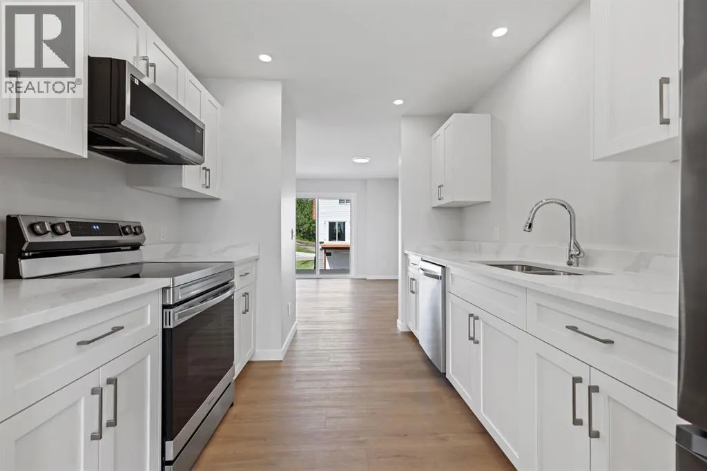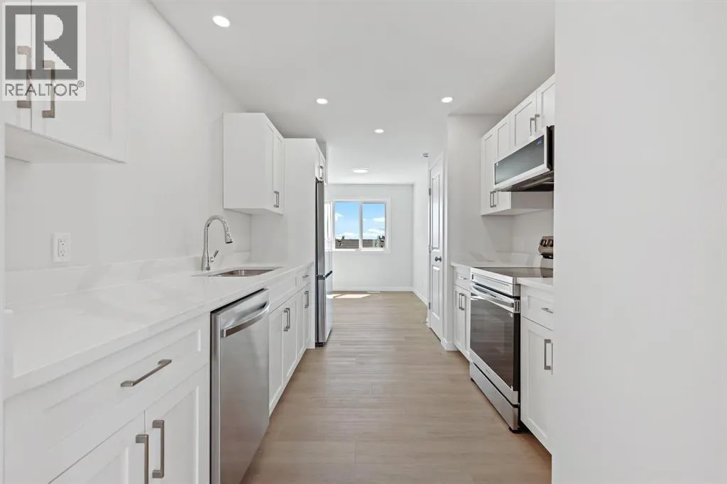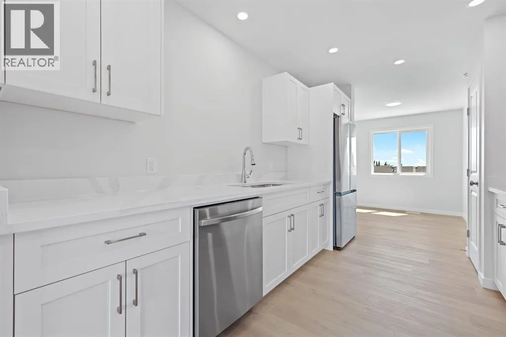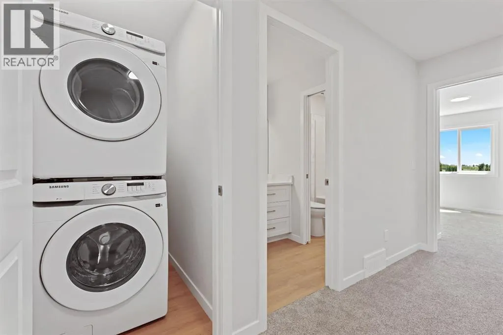 Welcome to this stylish and affordable freehold townhouse with no condo fees, built by Jonboyz Construction, a reputable localbuilder in Didsbury. Located in the desirable community of Valarosa, this soon to be completed home offers nearly 1,300 sq ft of functional living space with thoughtful design and family-friendly features. The main level includes an attached garage, utility room, and direct access to the backyard â offering both practicality and convenience. Upstairs, the bright and spacious main floor boasts an open dining area, cozy living room, and a modern kitchen complete with white soft-close cabinets, white quartz countertops, a pantry, and vinyl plank flooring in a warm, neutral tone. This level also includes a 2-piece bathroom and access to your private rear deck â ideal for relaxing or entertaining. On the third floor, youâll find two generously sized bedrooms, a 4-piece bathroom, and a convenient upstairs laundry room. The primary bedroom features dual closets, providing excellent storage space. Carpet flooring adds warmth and comfort to the bedrooms and hallway. This townhouse offers a spacious backyard, and front yard â a rare find. The builder will also be including a fully fenced backyard, providing privacy, security, and a safe space for children or pets. Located just steps from a scenic protected forest area with walking paths and local wildlife, and close to a playground and baseball diamond, this home is perfect for families looking for space and community. Donât miss your chance to own this well-crafted home in a peaceful, family-oriented neighborhood. (id:27476)