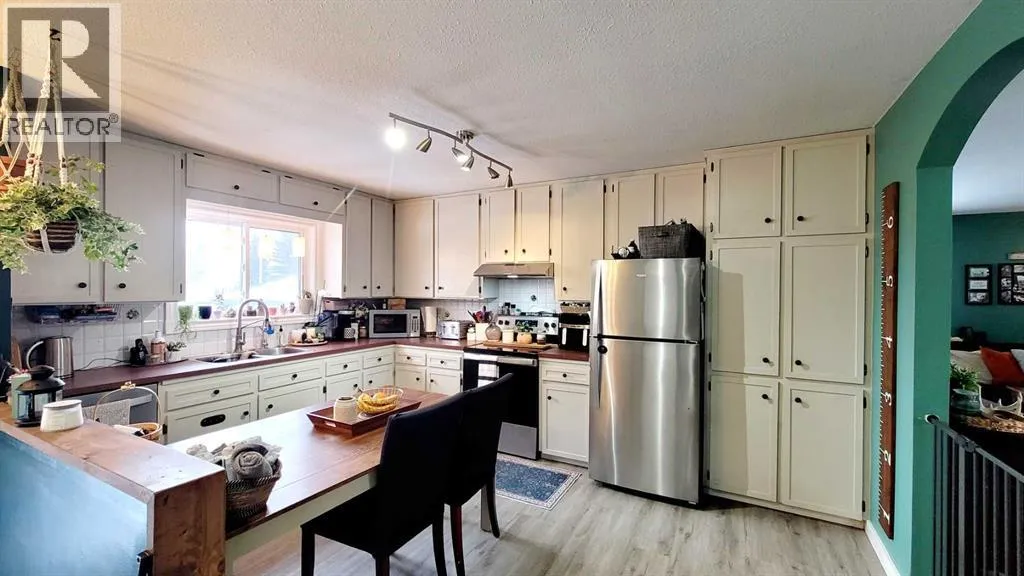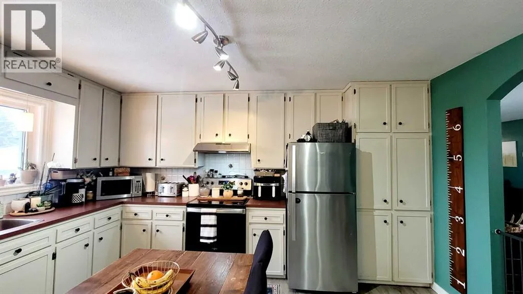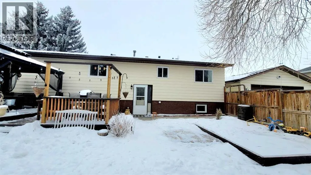 Perfect for a growing family, this well-maintained home sits on a large corner lot in the desirable West Heights neighborhood of Didsbury. Featuring a 22' x 28' oversized detached garage and potential for five bedrooms, it offers plenty of space for everyone to live, work, and play. The fully fenced and beautifully landscaped yard includes mature trees, garden planter boxes, and a spacious patio/deck area, ideal for children to play and for outdoor entertaining. Step inside to a large welcoming entryway that leads into the bright and spacious living and dining room combination, creating an inviting space for gatherings and everyday living. The kitchen offers ample cabinetry and workspace, making it both practical and functional. Down the hall you will find three bedrooms and a 4-piece bathroom, providing a comfortable layout for family living. The fully developed basement expands the living space with a large family room, an oversized primary bedroom, a 4-piece bathroom, and a spacious laundry room with plenty of storage. The exercise room could easily be converted into a fifth bedroom by simply adding a closet, offering flexibility for families needing extra space. Just off the laundry room, a fun built-in kidsâ hideaway with a small TV area creates a unique space younger family members will love. Outside, enjoy the expansive yard with mature trees, garden boxes, and patio/deck space, along with the oversized detached garage that provides excellent room for vehicles, storage, or a workshop. For golf enthusiasts, a golf course is conveniently close by, perfect for those who enjoy a round of golf. Located near parks, playgrounds, and schools, this home offers a wonderful balance of space, updates, and family-friendly living. Recent updates include: new hot water tank (2022); new shingles on the house (2023); garage insulated with OSB walls and ceiling (2023); expanded yard with garden boxes (2024); new flooring and trim on the main floor (2024); new basement windows (2024); refinished kitchen cupboards (2020); new kitchen appliances â fridge, stove, dishwasher & hood fan (2025); new triple-pane kitchen window (2025); new upstairs toilet (2025); patio/deck improvements (2019 / 2025); remaining basement flooring materials included in the sale. With its spacious layout, numerous updates, and fantastic yard, this is a wonderful opportunity to own a move-in ready home in a family-friendly neighborhood â donât miss your chance to view it. (id:27476)