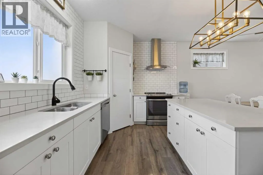 THIS COULD BE YOUR NEXT HOME!!! If you are looking for an almost new home that is so spic n span and ready to move into AND you would like to make Didsbury your next soft place to fall you will want to check this out!! This bungalow is located close to the coulee and it is probably one of the quietest areas of town. As soon as you step through the front door you will immediately notice the bright, open floor plan and how clean and well thought out this home is! The kitchen has lovely quartz countertops, beautiful tiled backsplash, corner pantry, island and stainless appliances. You can either look out the window and see the walking paths and open fields or you can go out through the garden door and sit on the deck to appreciate the quiet yard. There is an eating/dining area and living room-this main level area is great for entertaining since it is so open and welcoming. Head down the hall and you will find 2 secondary bedrooms, main 4pc bathroom and the primary bedroom with 3 pc ensuite and large walk in closet. Head downstairs and you will really appreciate how much space for the whole family you will have here. There is a large family/rec room (playhouse can be included), bedroom (daybed can also stay), 4 pc bathroom with laundry, utility room and large storage area. Outside you will not have to worry about parking since there is a double garage and concrete driveway. The yard is also immaculate and when you are sipping your coffee while sitting on that deck you will appreciate the privacy and tranquility here-there are also inground sprinklers! There is access to the yard from the deck and there is a concrete pad for a future hot tub or entertaining. There truly is nothing to do here but move right in so you will want to view this lovely home very soon!! (id:27476)