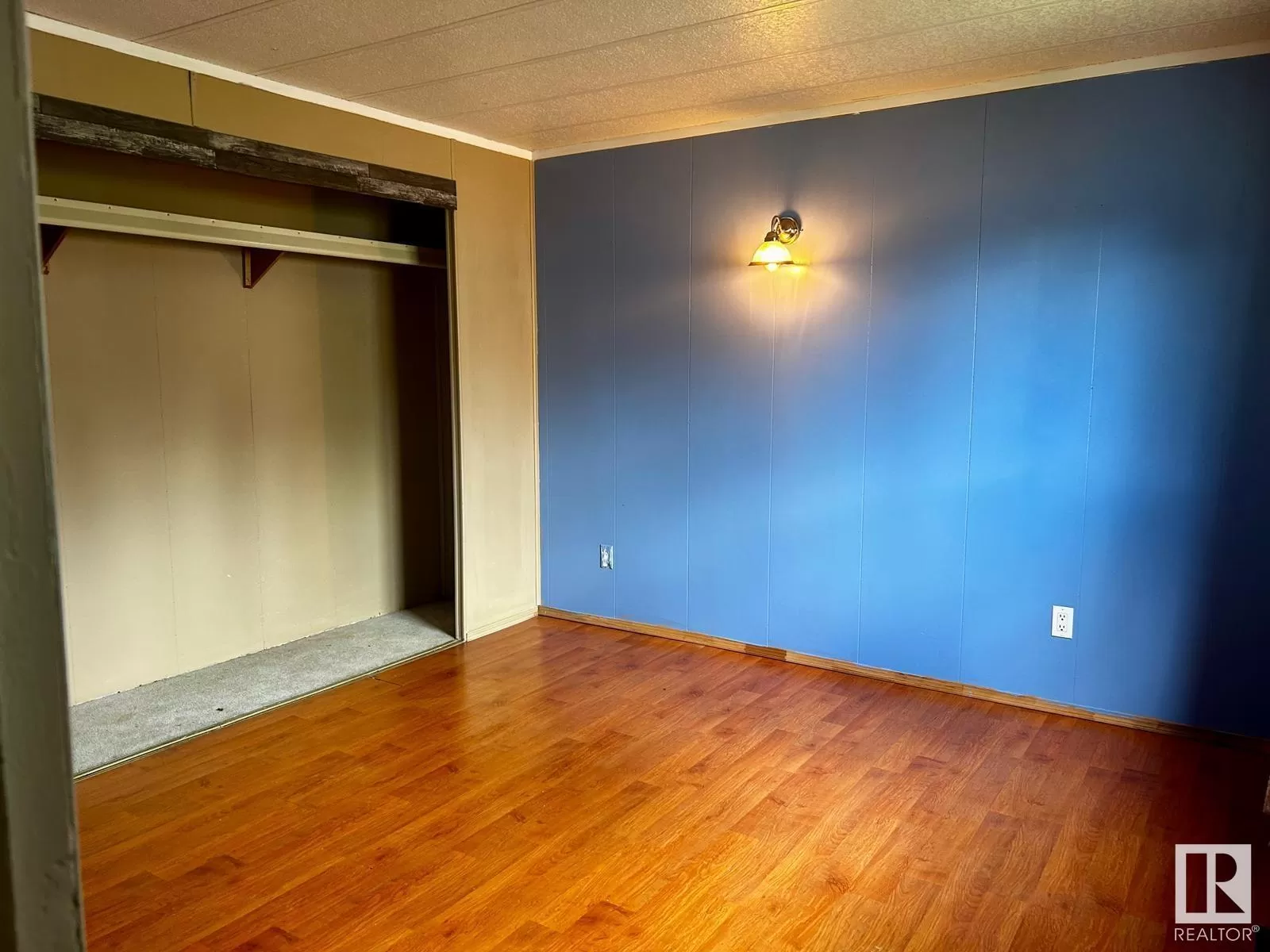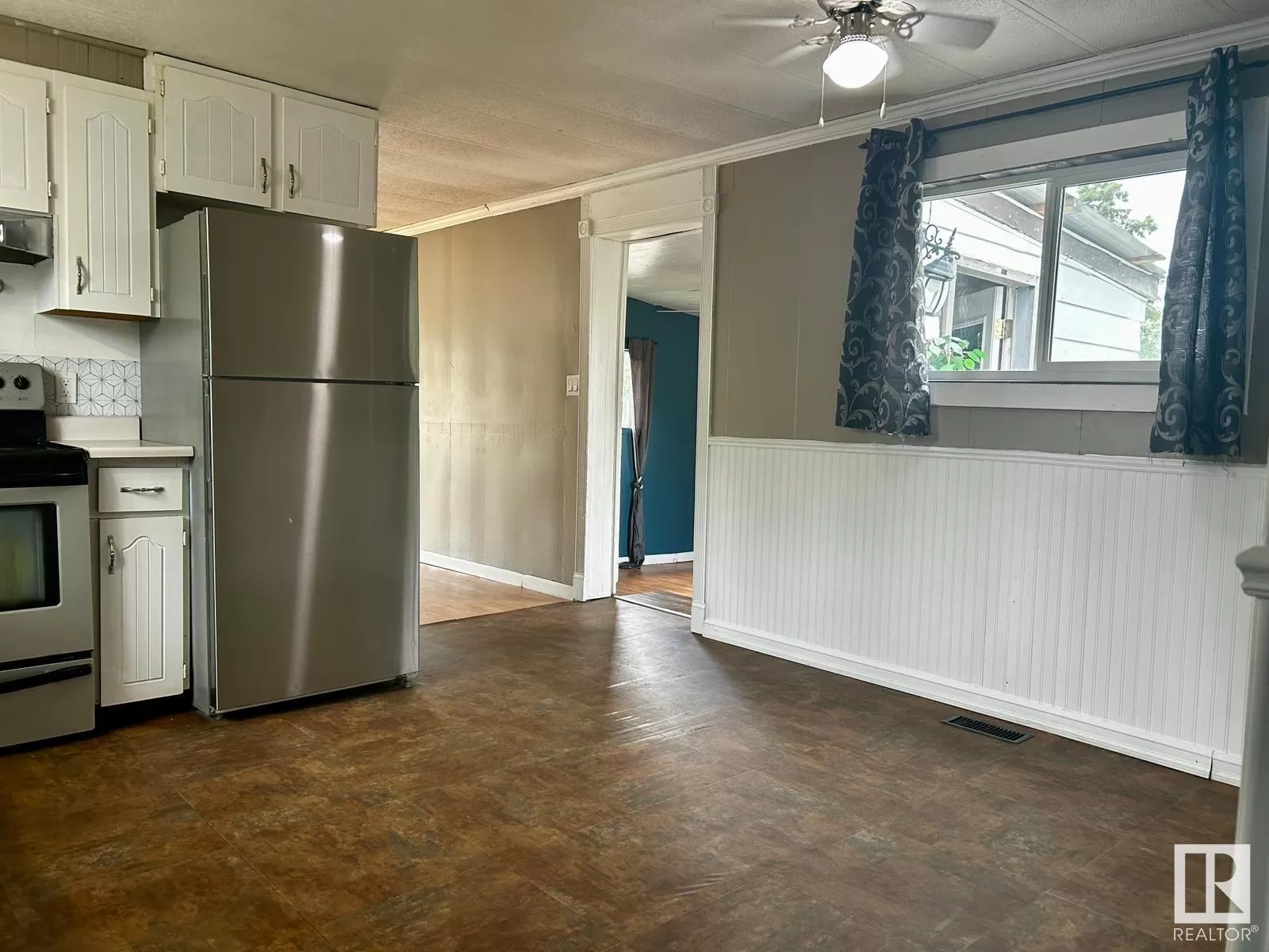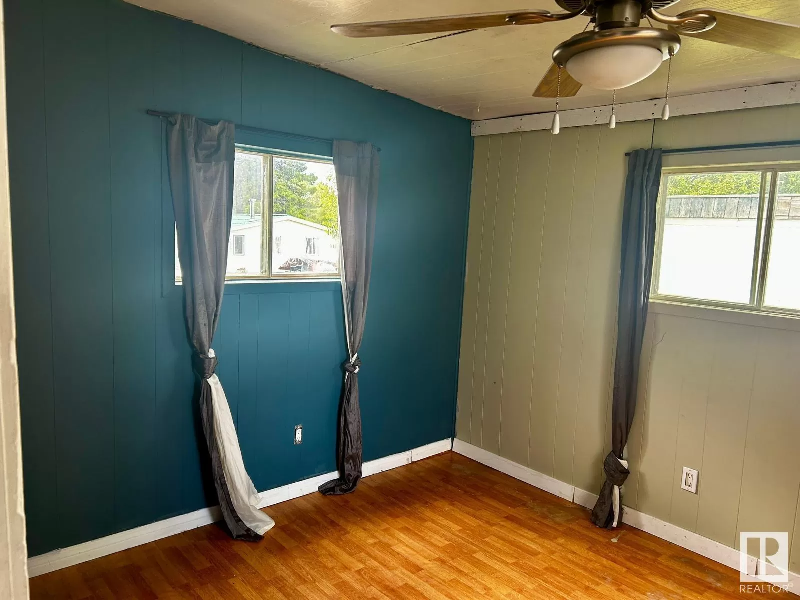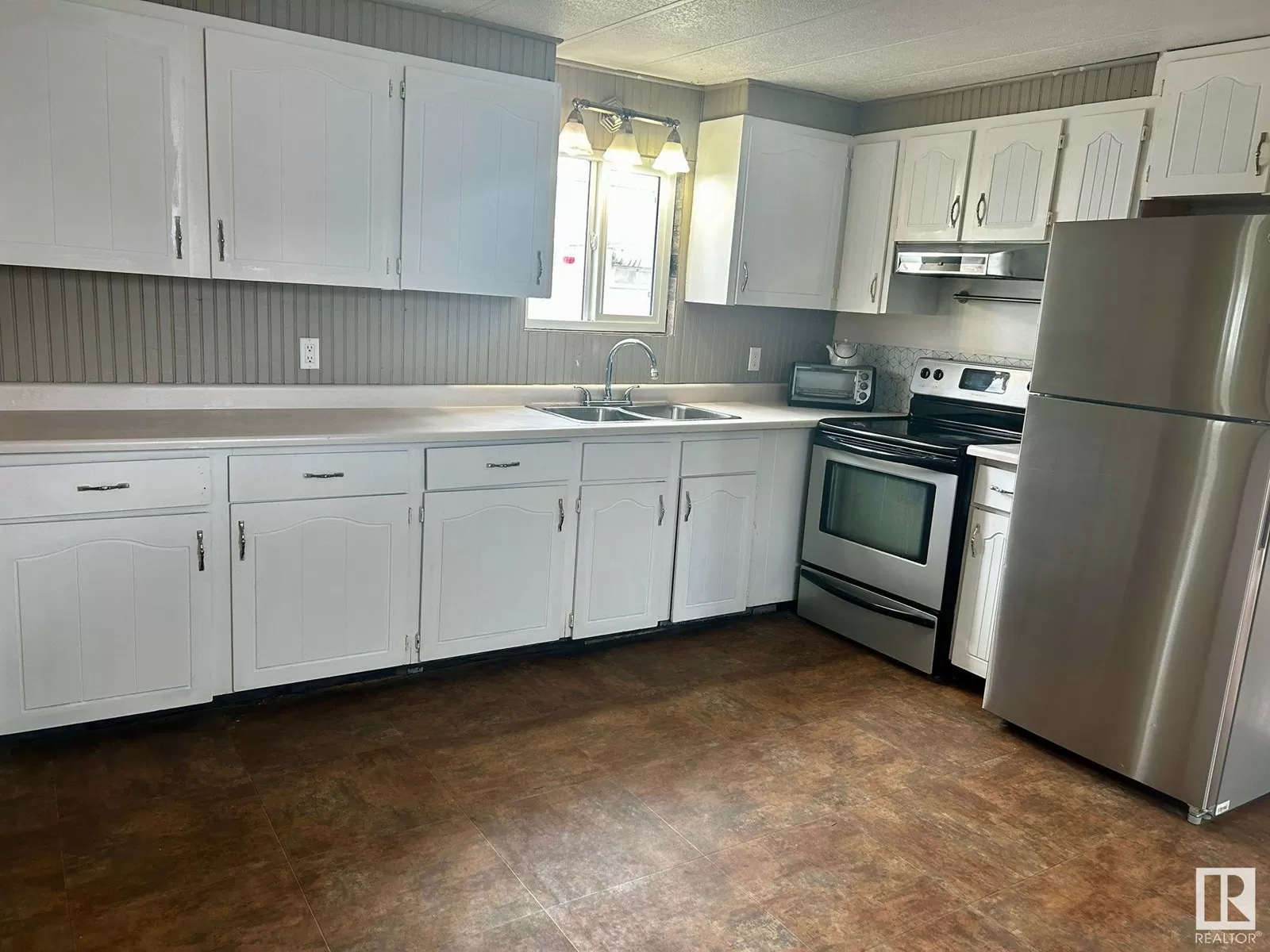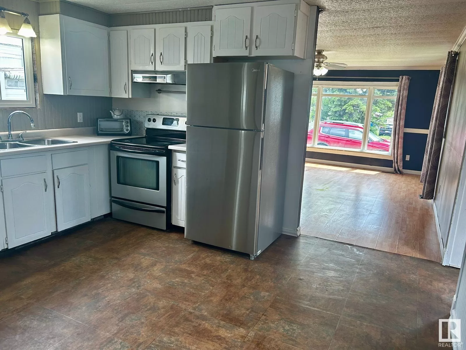Move in and make it your own! This affordable 3 bedroom 1 bathroom mobile is located on a leased lot so close to walking trails to the Omniplex, pool, and newer playground! All while still situated close to all other amenities. There have been many upgrades such as windows, hwt, furnace, toilet, peaked tin roof and some new flooring. The South facing living room window lets in loads of light and the eat in kitchen is bright, welcoming and boasts newer appliances. The bathroom/laundry room has a high window allowing nice natural light in. The primary bedroom closet takes up an entire wall, excellent storage! Two more bedrooms finish everything off. A large mud room addition adds plentiful space and has power as well! Outside you have off street parking, a storage shed and a large deck next to two beautiful apple trees! Lot is also for sale separately see: E4447420 (id:27476)
